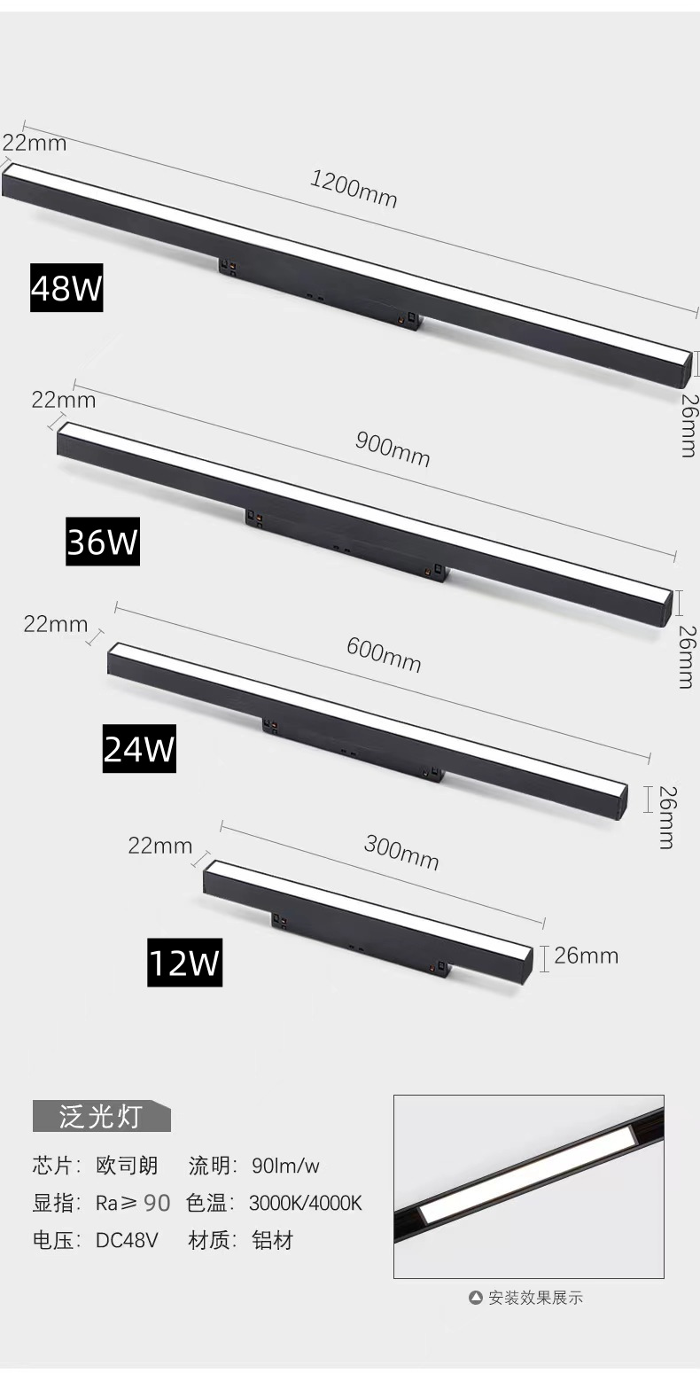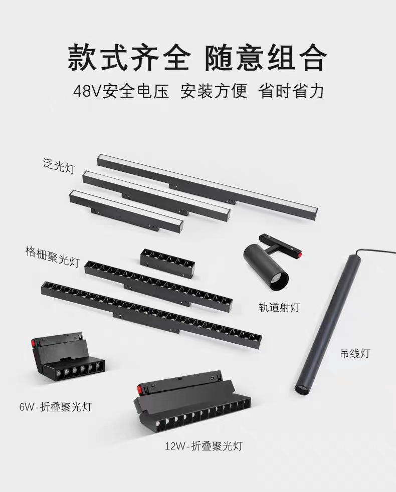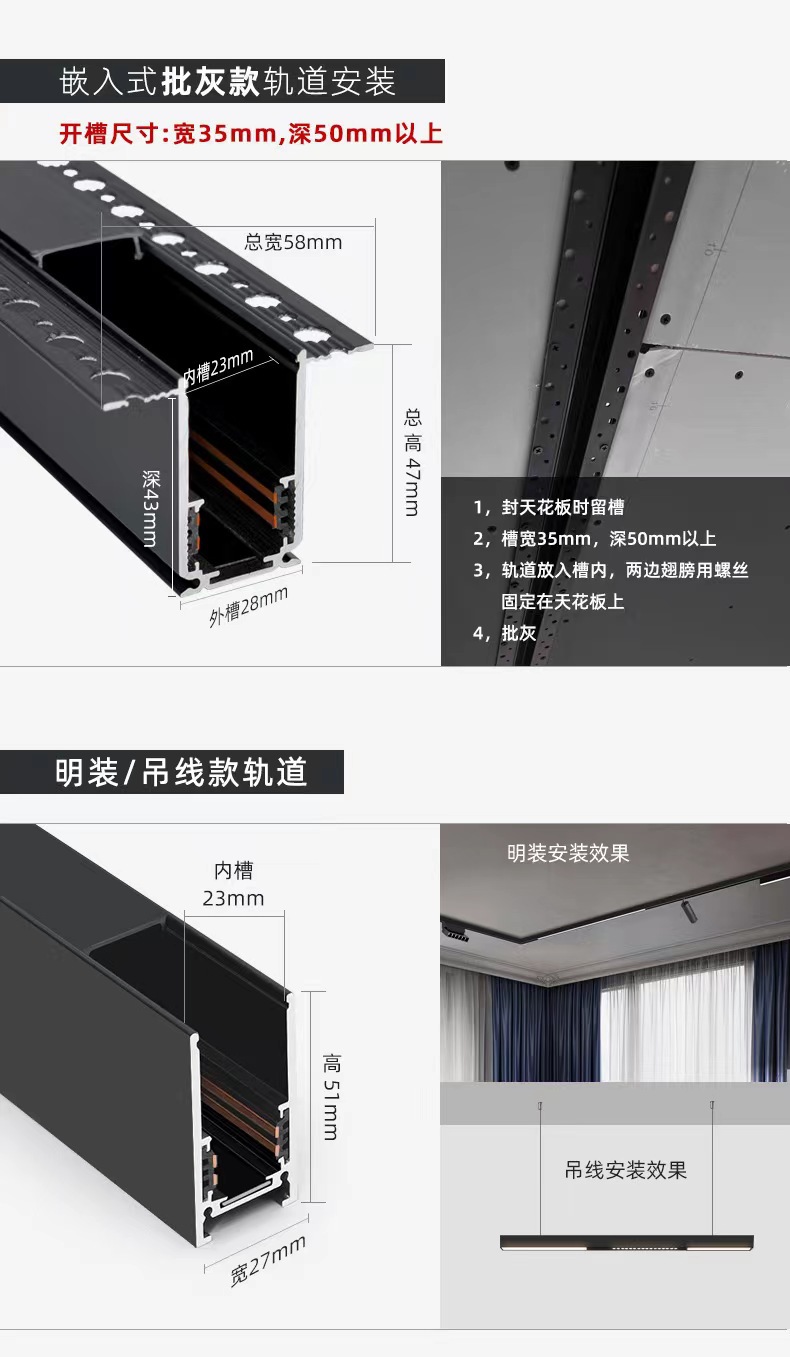 磁吸灯轨道条批发家用客厅明装暗装无主灯泛光灯嵌入式磁吸轨道灯