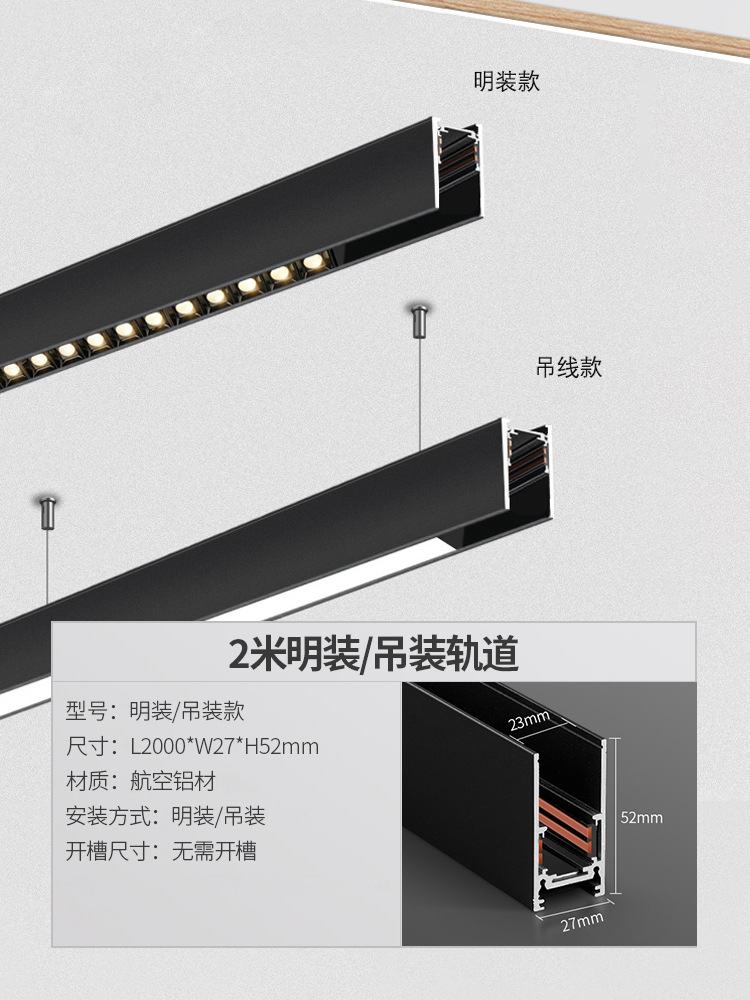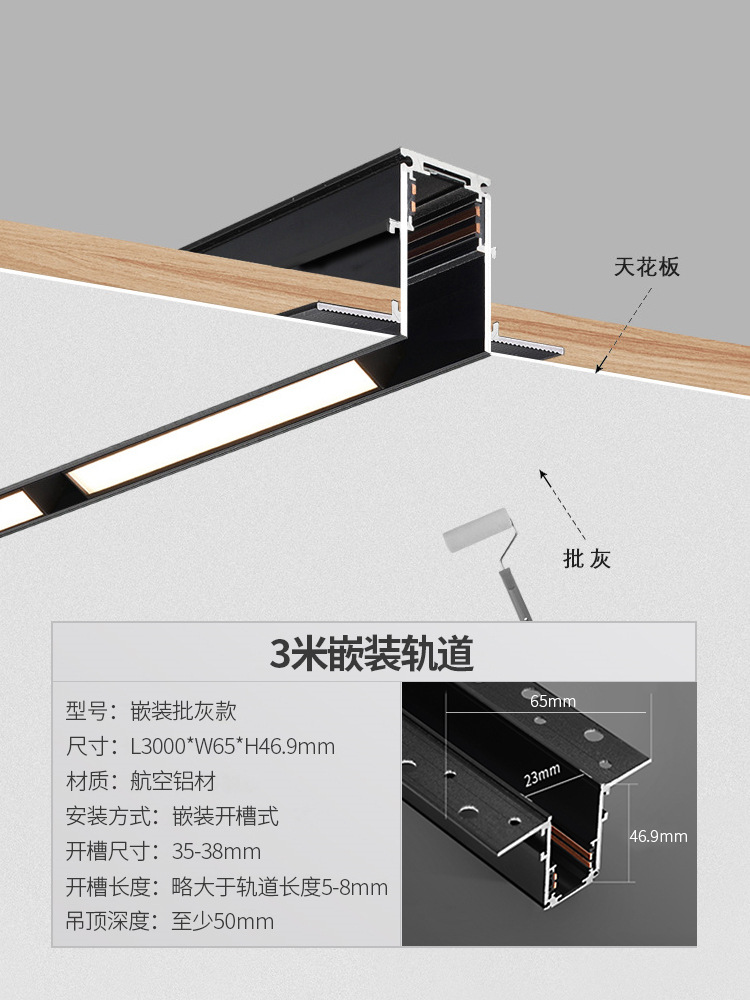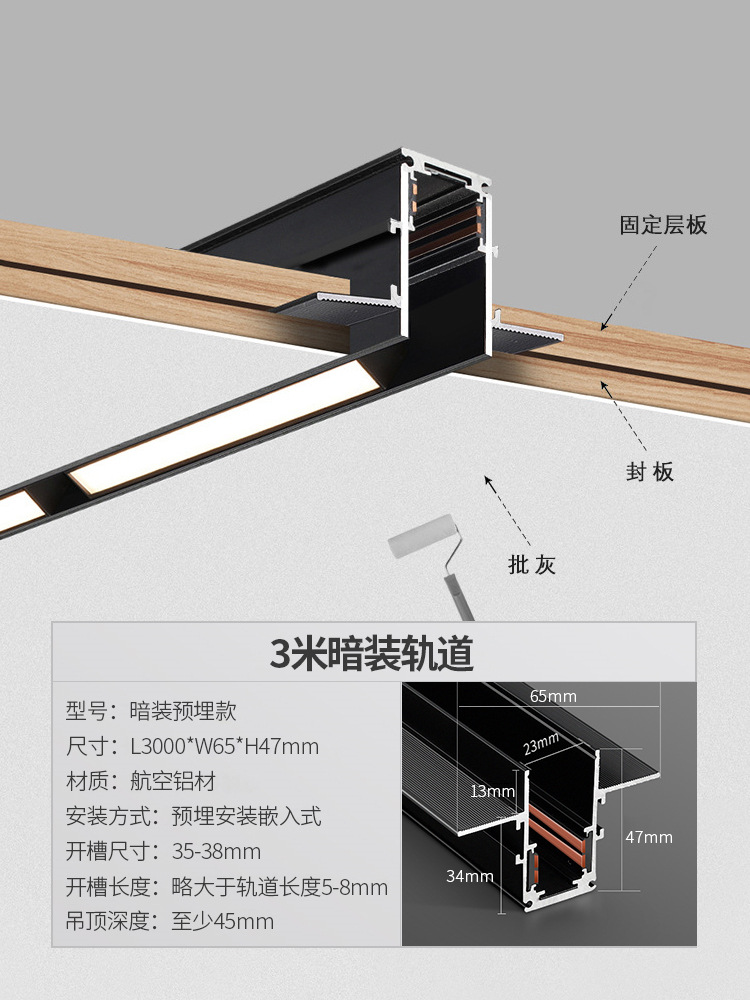 磁吸轨道灯嵌入式无主灯客厅照明餐厅暗装预埋磁吸灯明装轨道灯