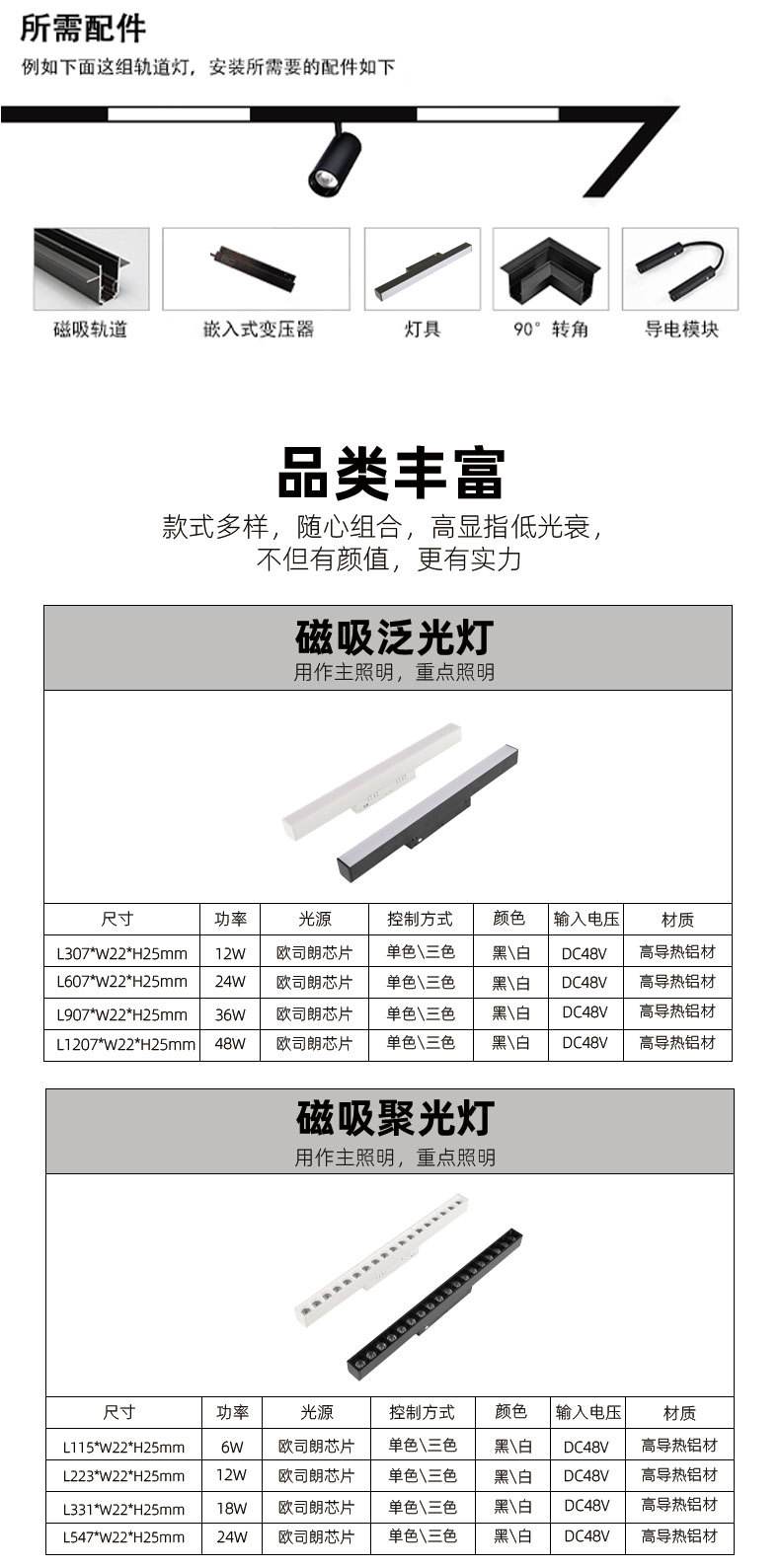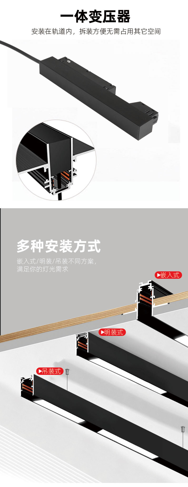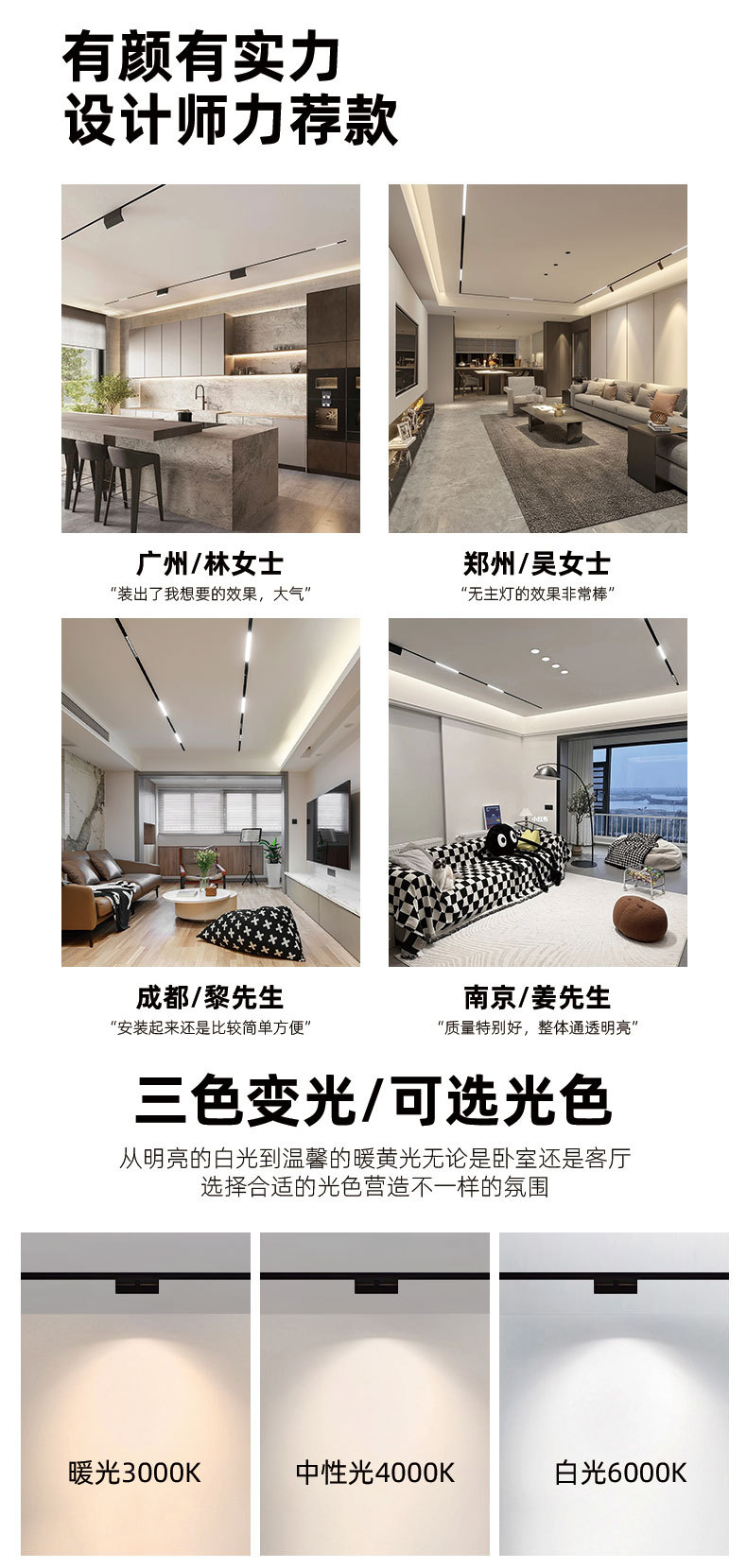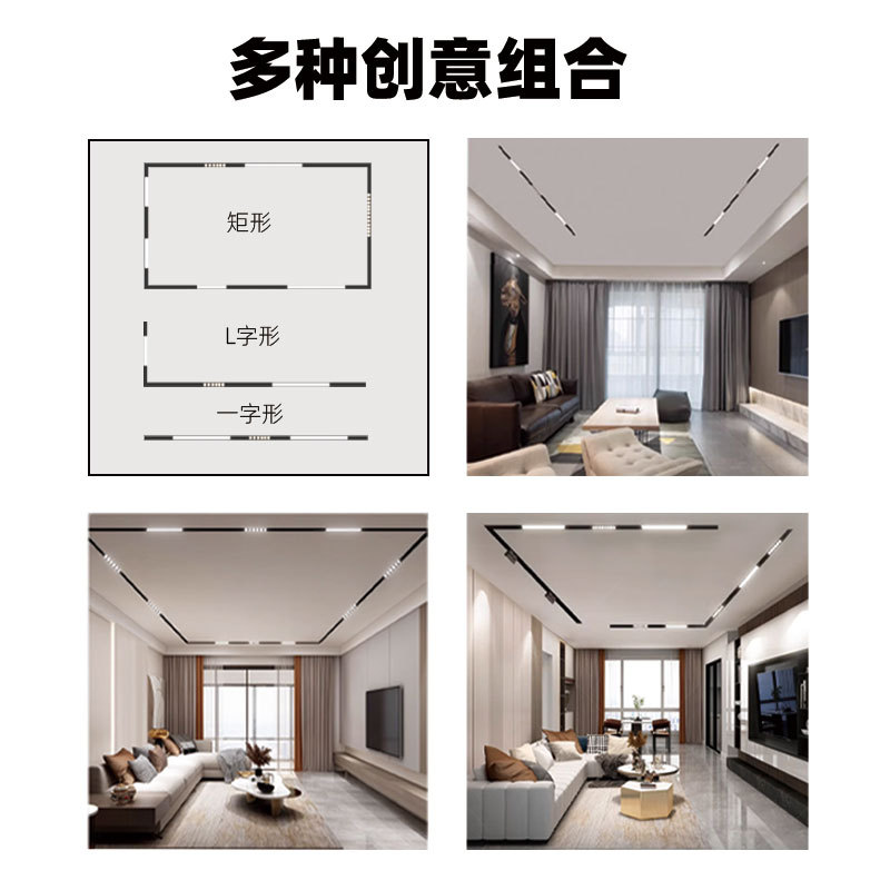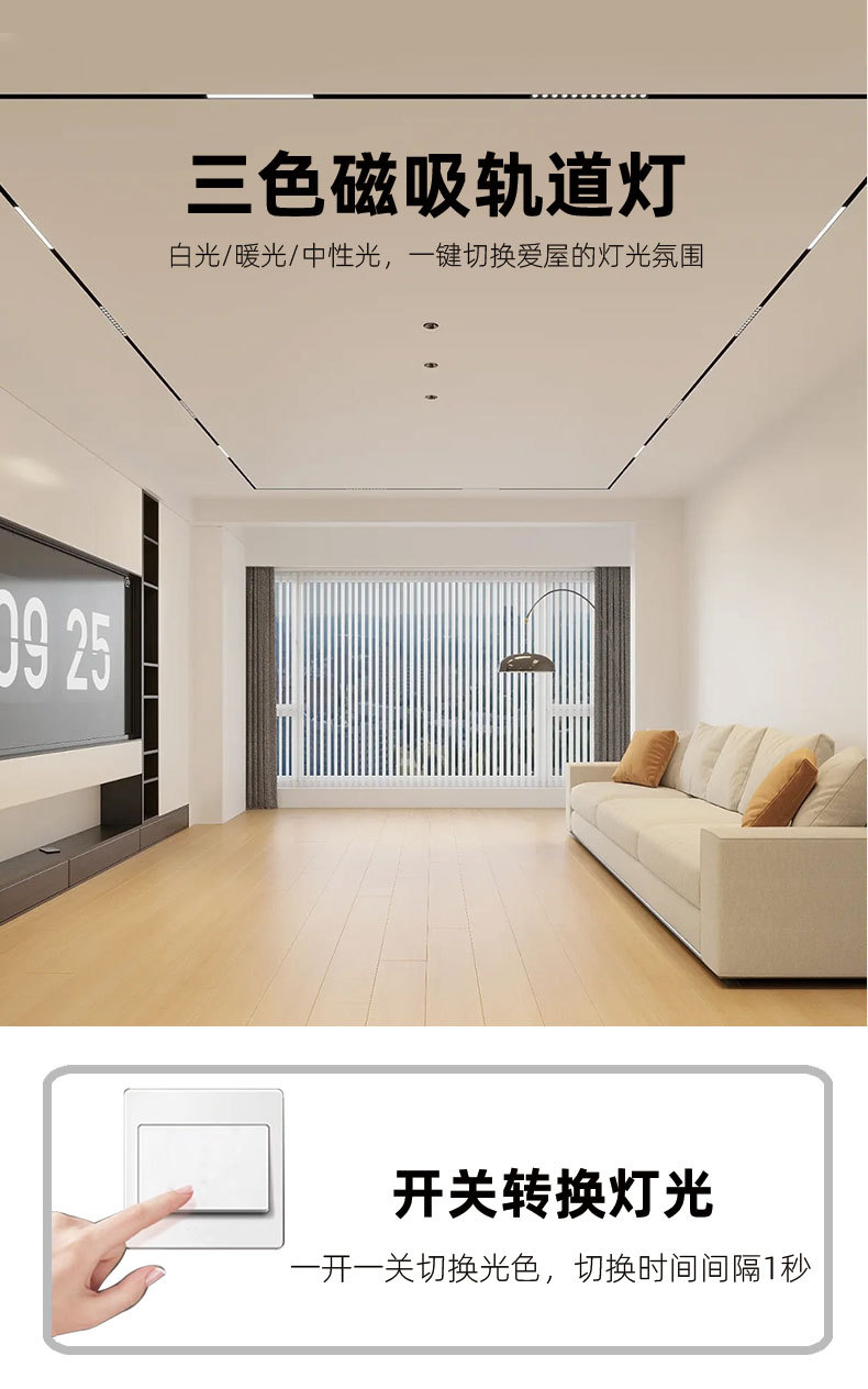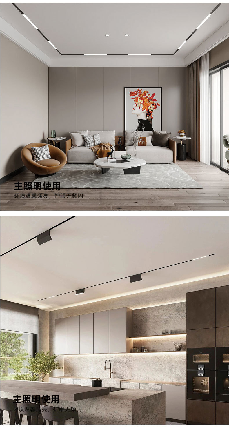 三色磁吸轨道灯嵌入式全光谱中山无主灯批发客厅LED导轨泛光灯