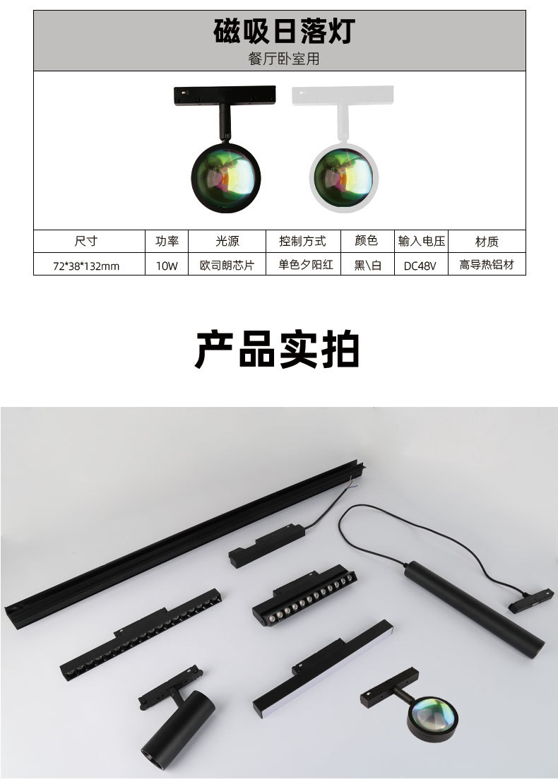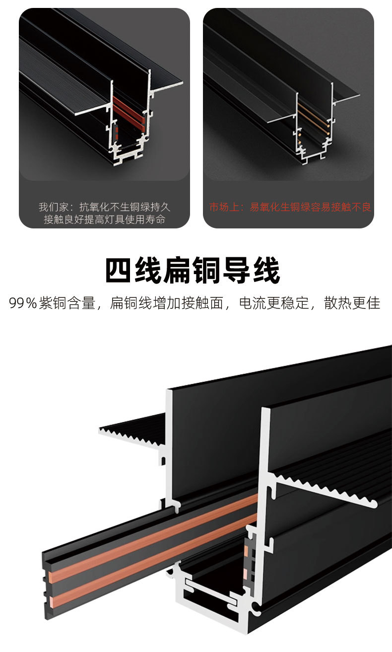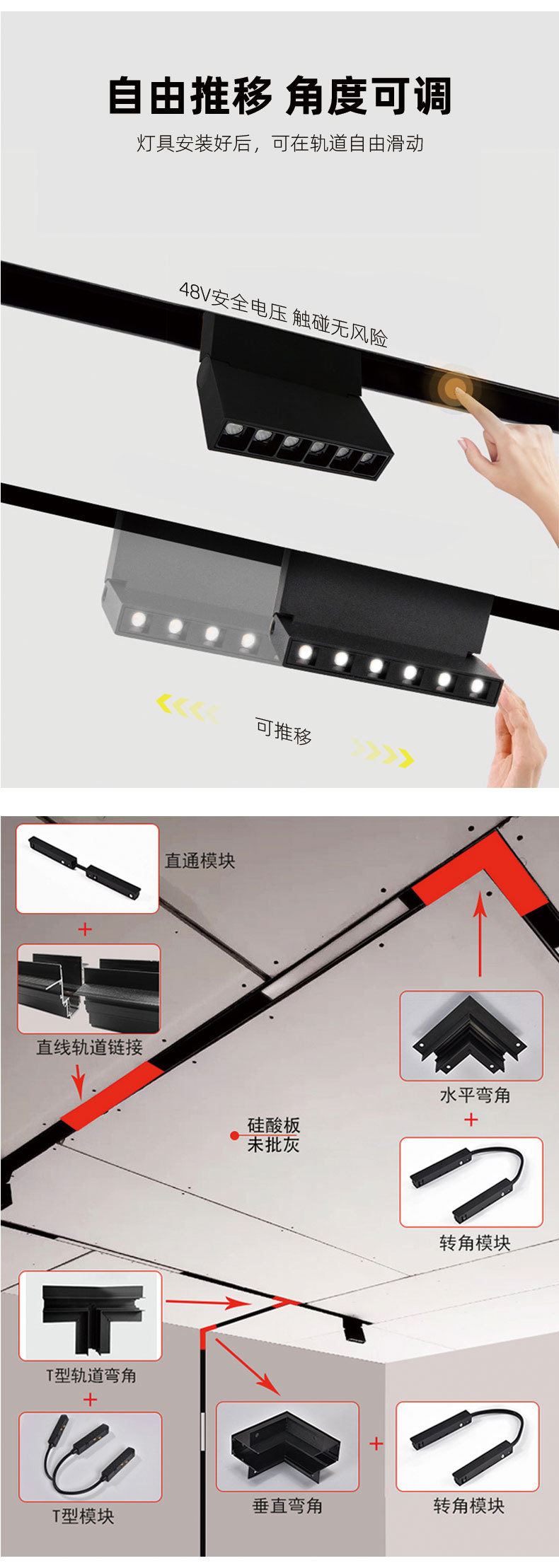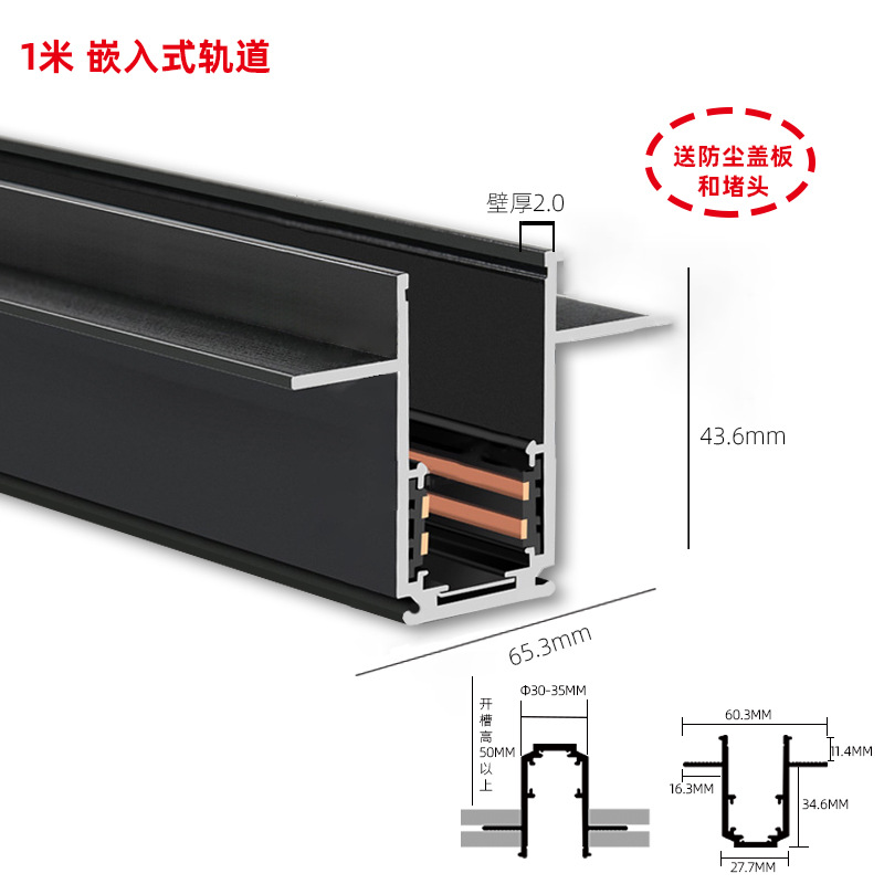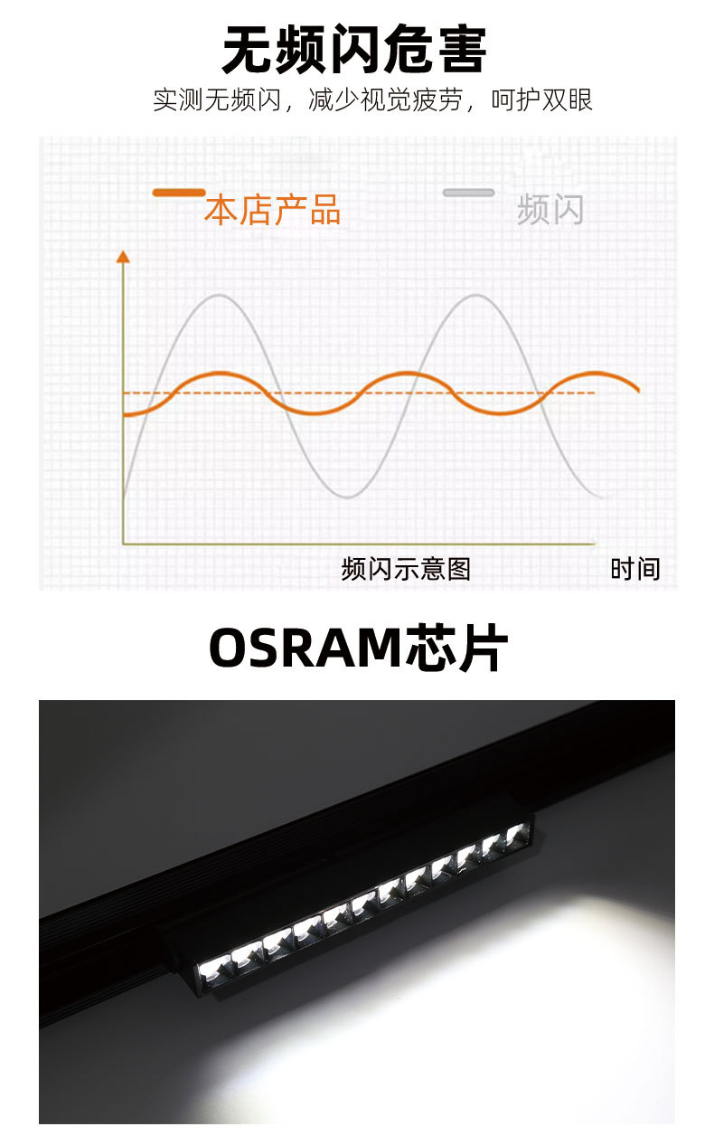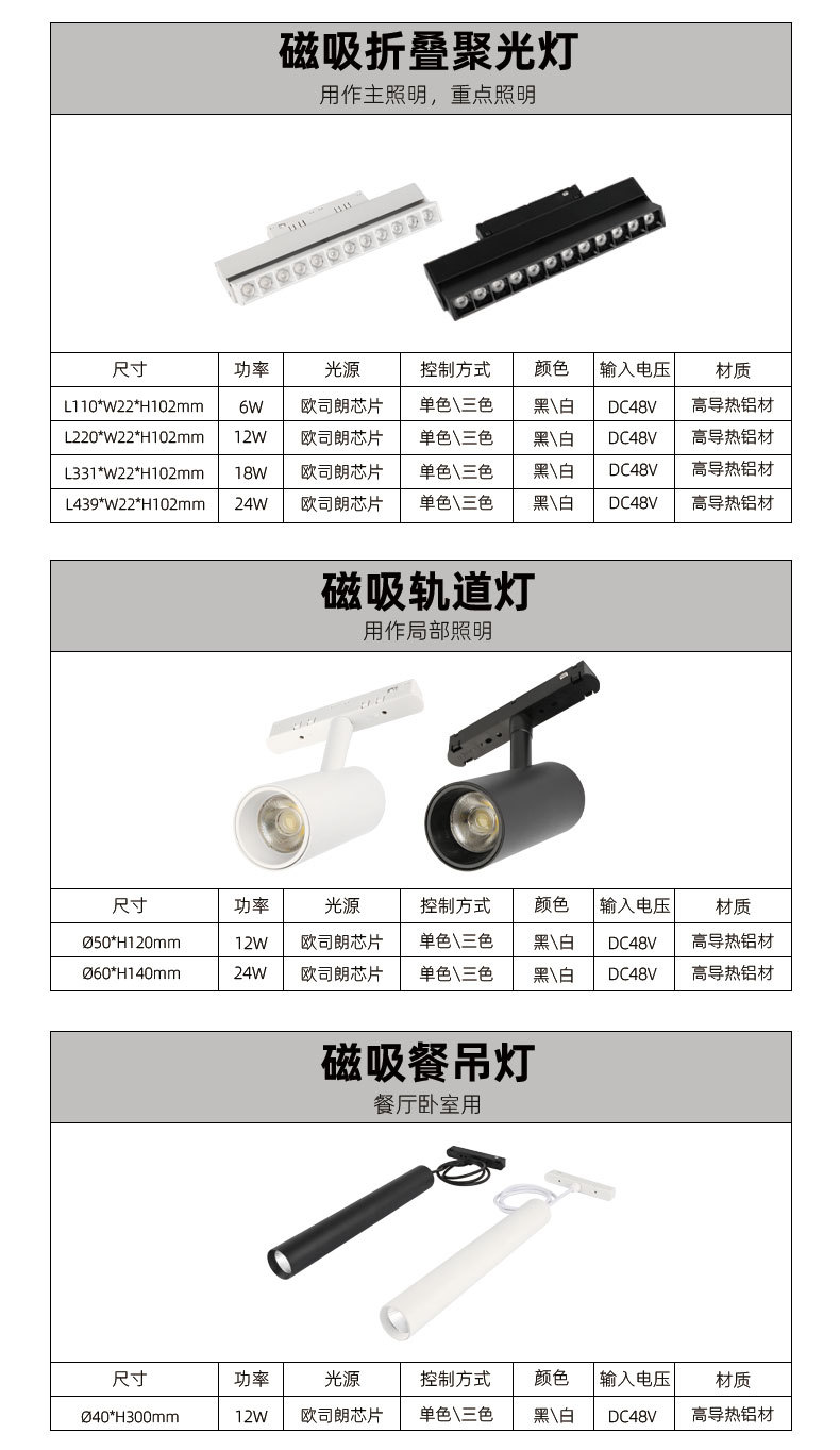 三色磁吸轨道灯嵌入式全光谱中山无主灯批发客厅LED导轨泛光灯