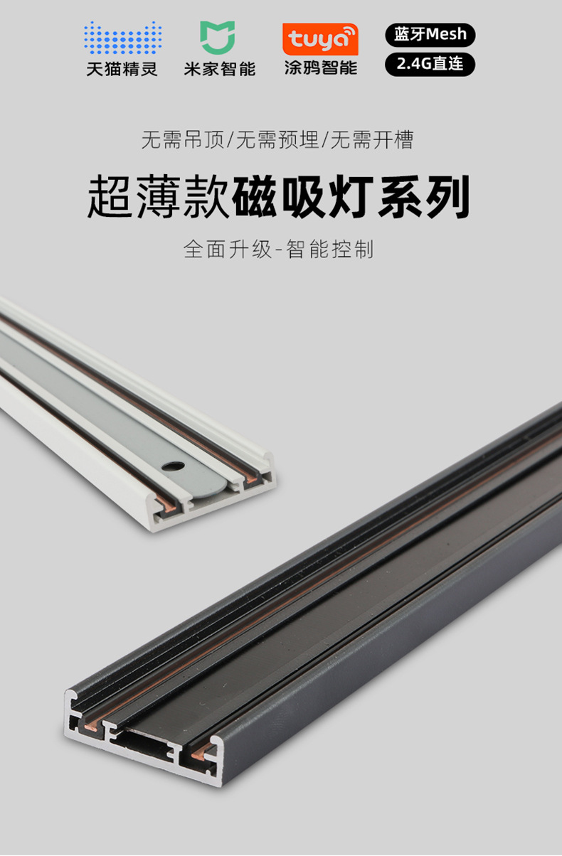 全光谱智能明装超薄磁吸轨道灯客厅家用免吊顶白色磁吸导轨灯批发
