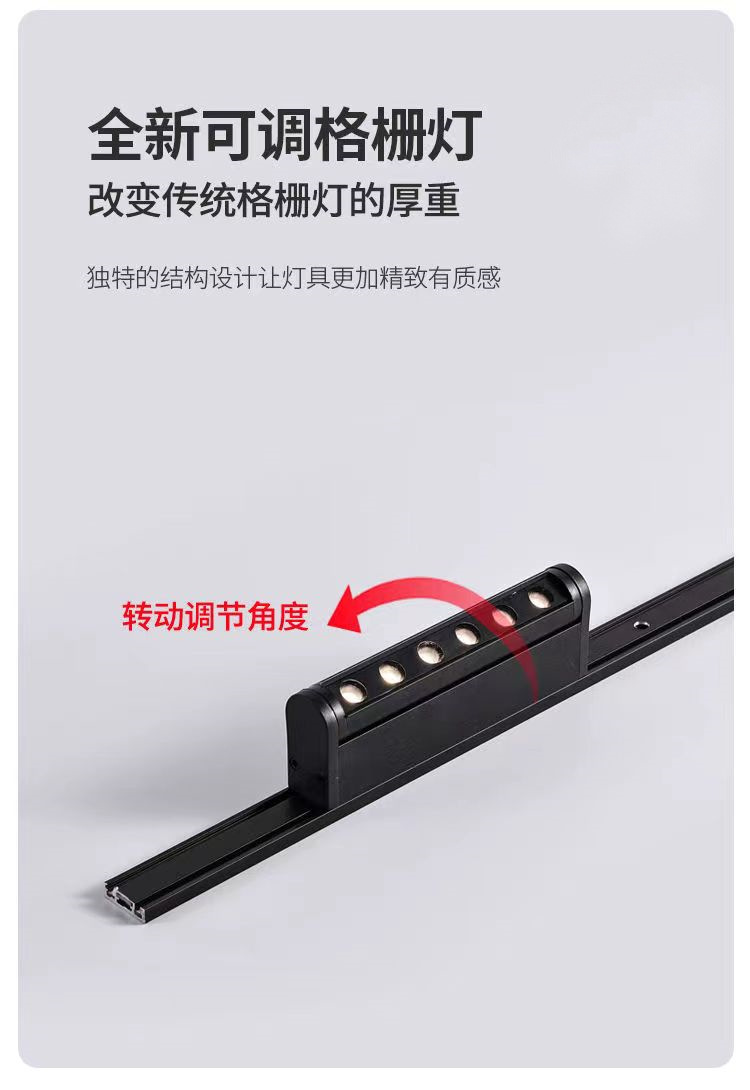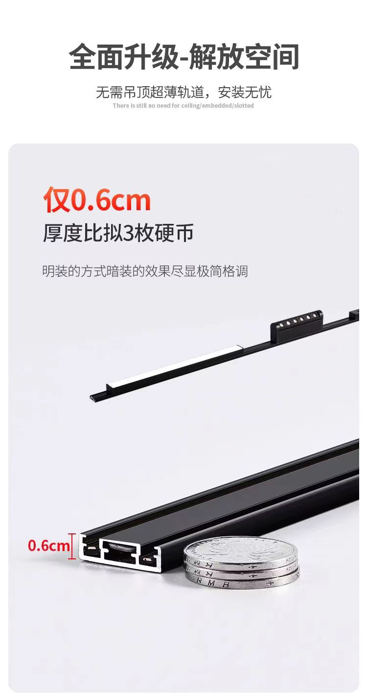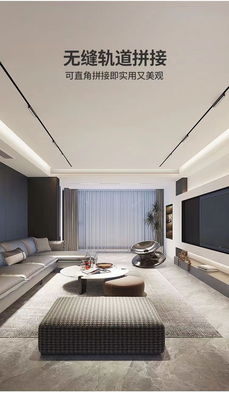 超薄明装磁吸轨道灯无主灯家居照明长条泛光灯格栅射灯免开槽
