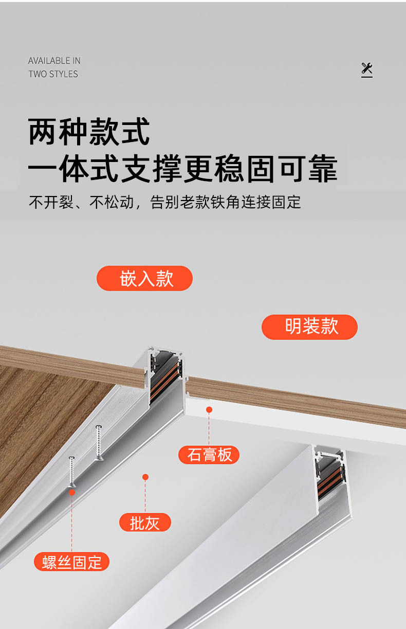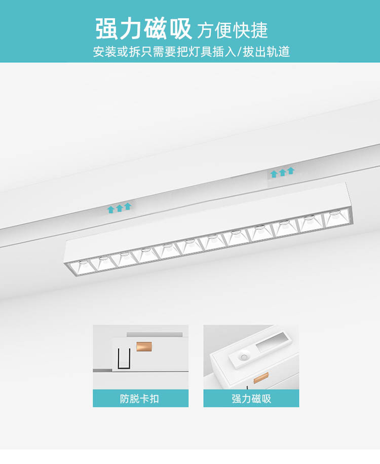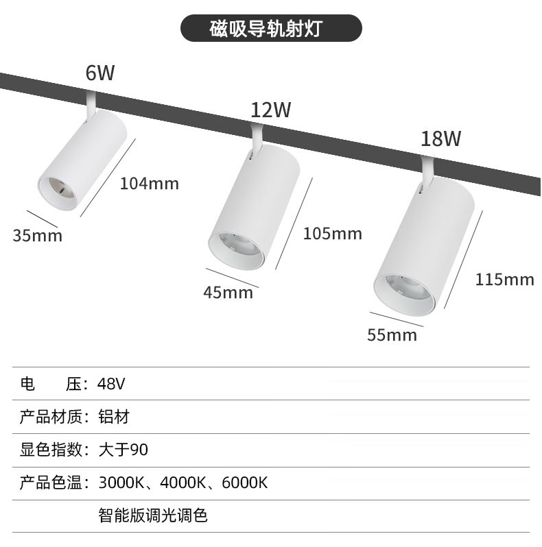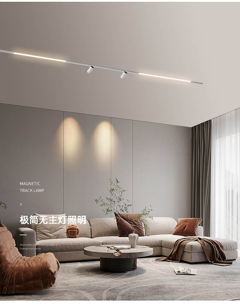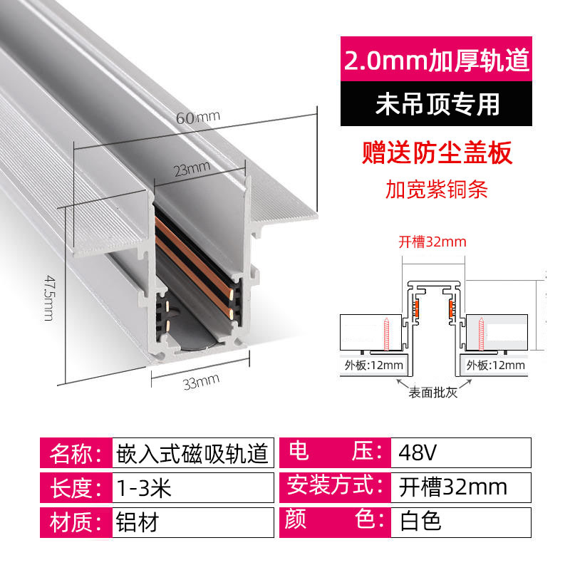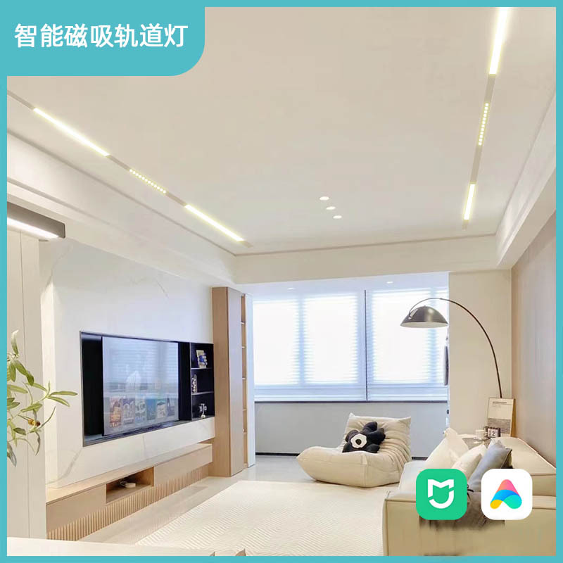 白色无主灯磁吸轨道灯嵌入式暗装预埋明装小米家智能三色变光4米