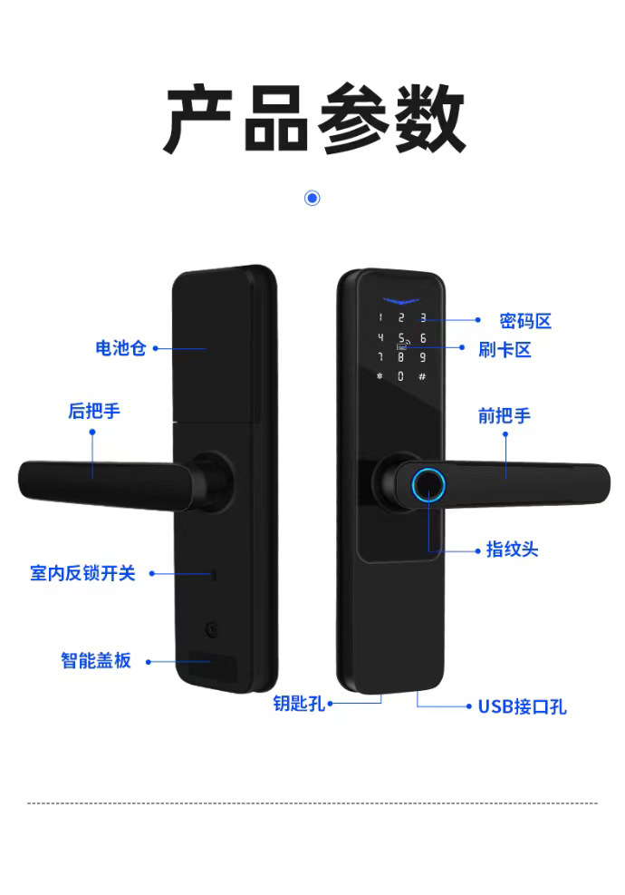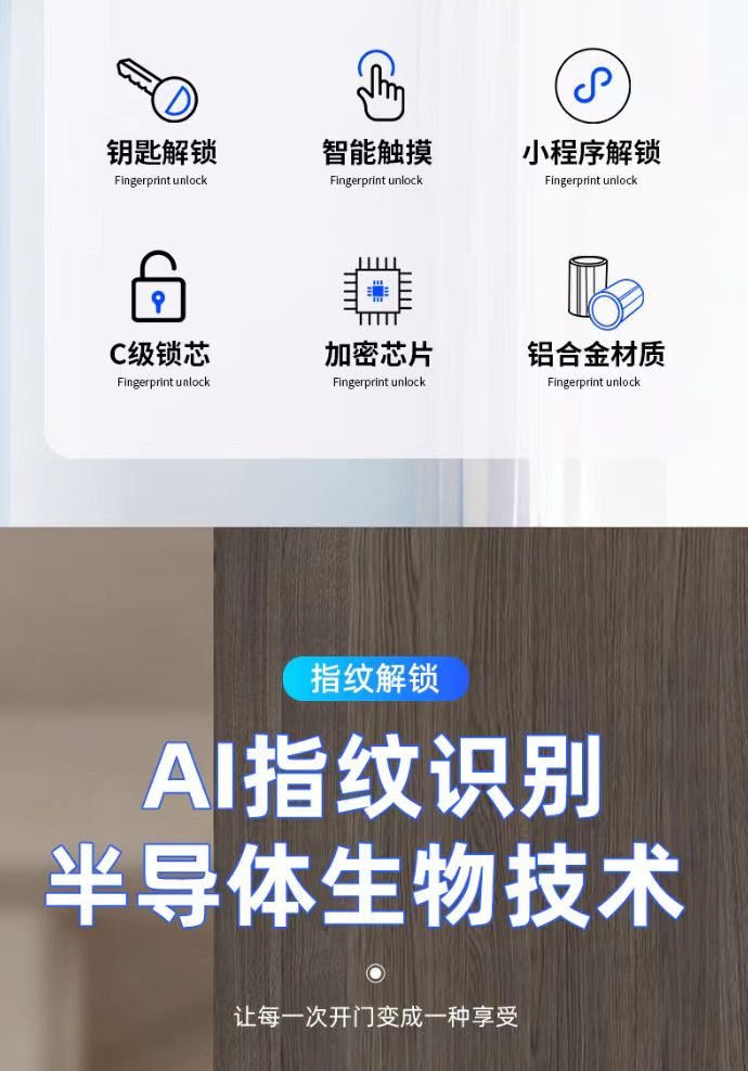 室内指纹锁家用卧室木门密码锁房间门免打孔智能锁刷卡远程电子锁