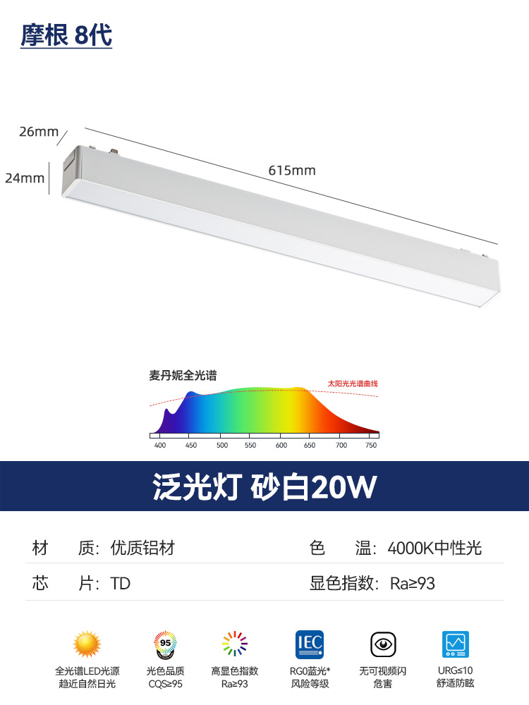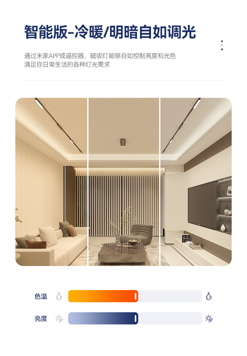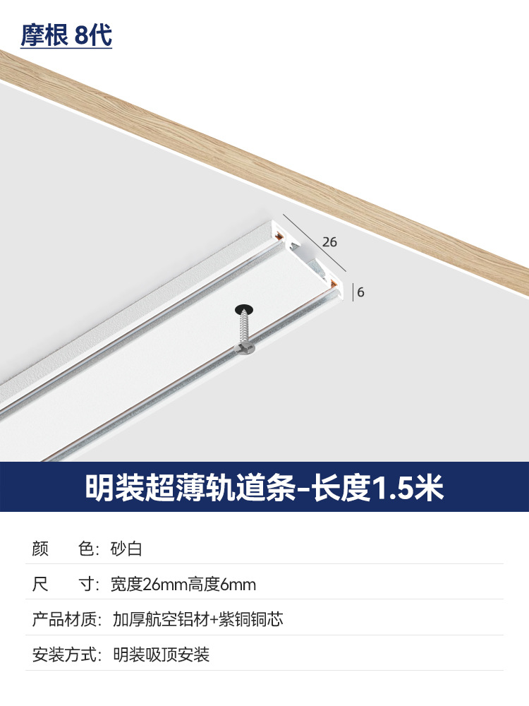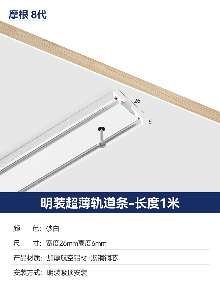 超薄磁吸轨道灯全光谱明装米家智能6mm铝材免吊顶白色极窄无主灯