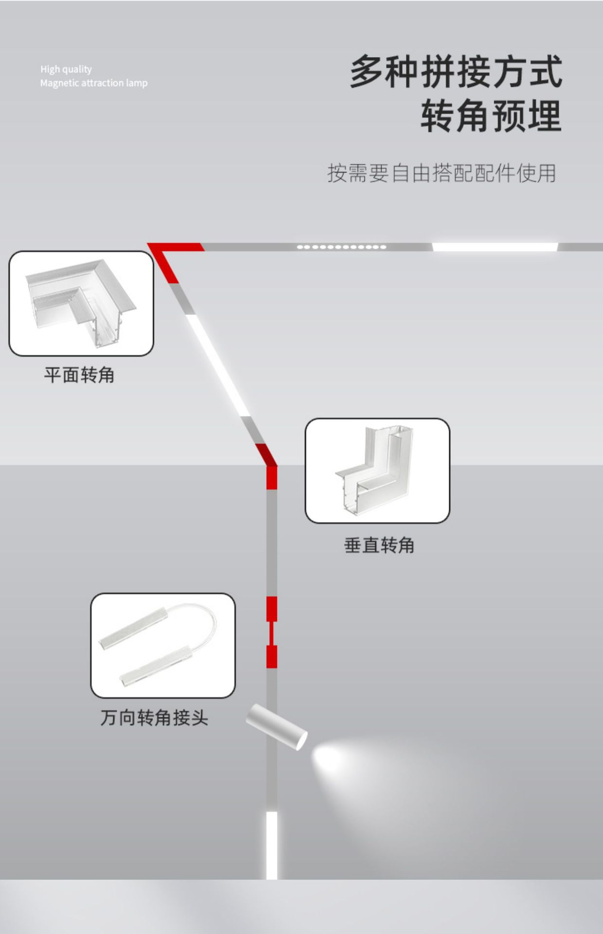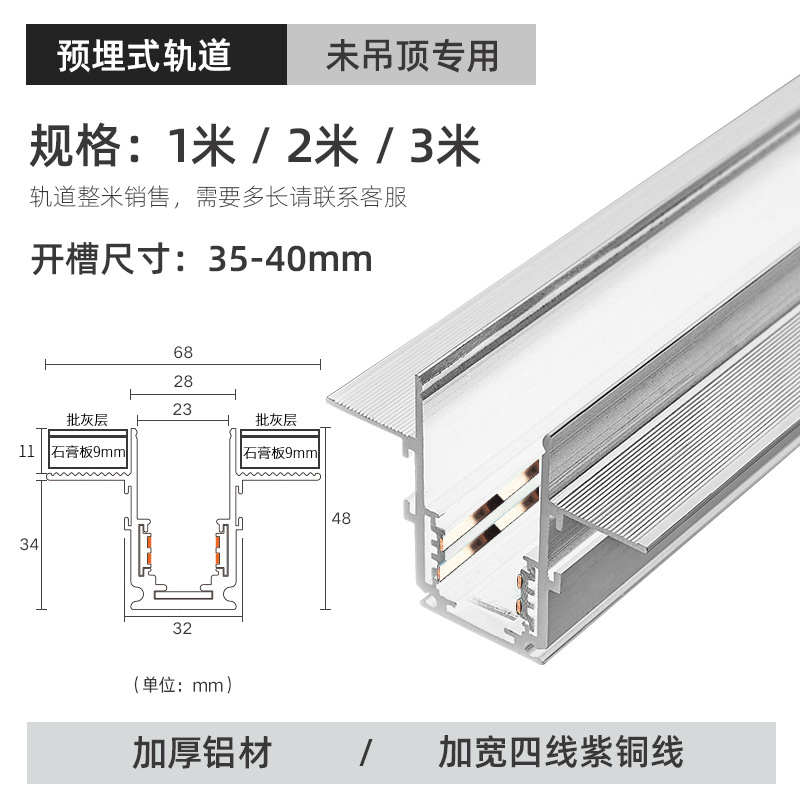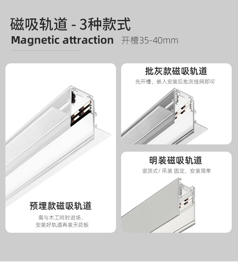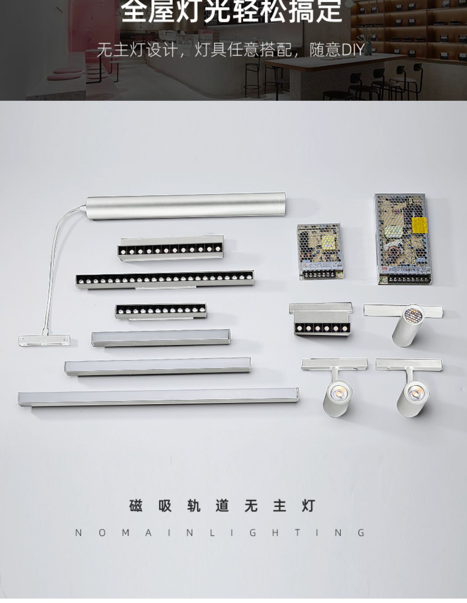 智能米家白色明装嵌入式磁吸超薄轨道灯无主灯客厅照明预埋磁吸灯