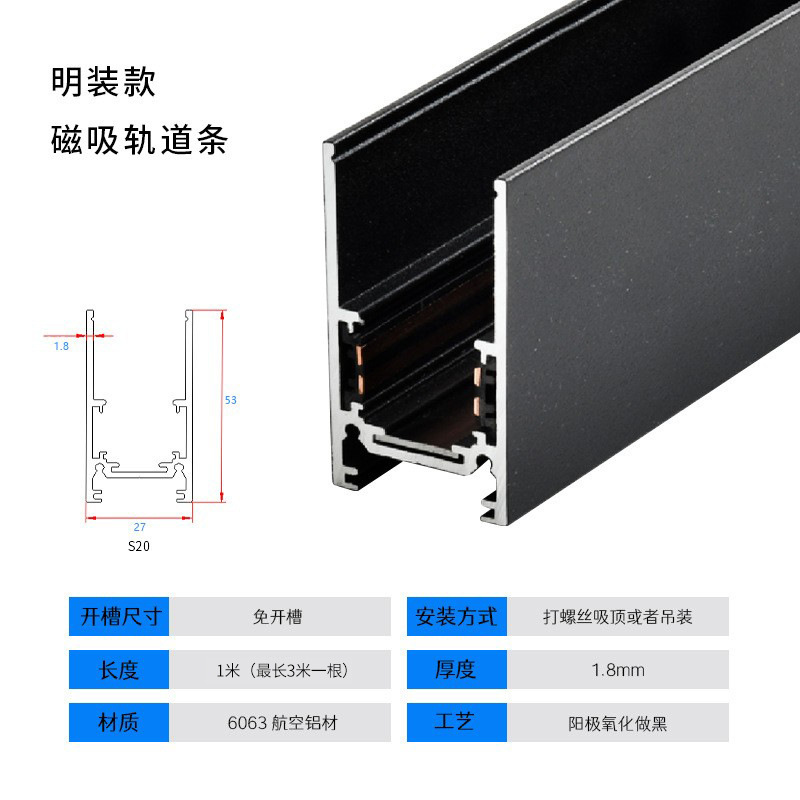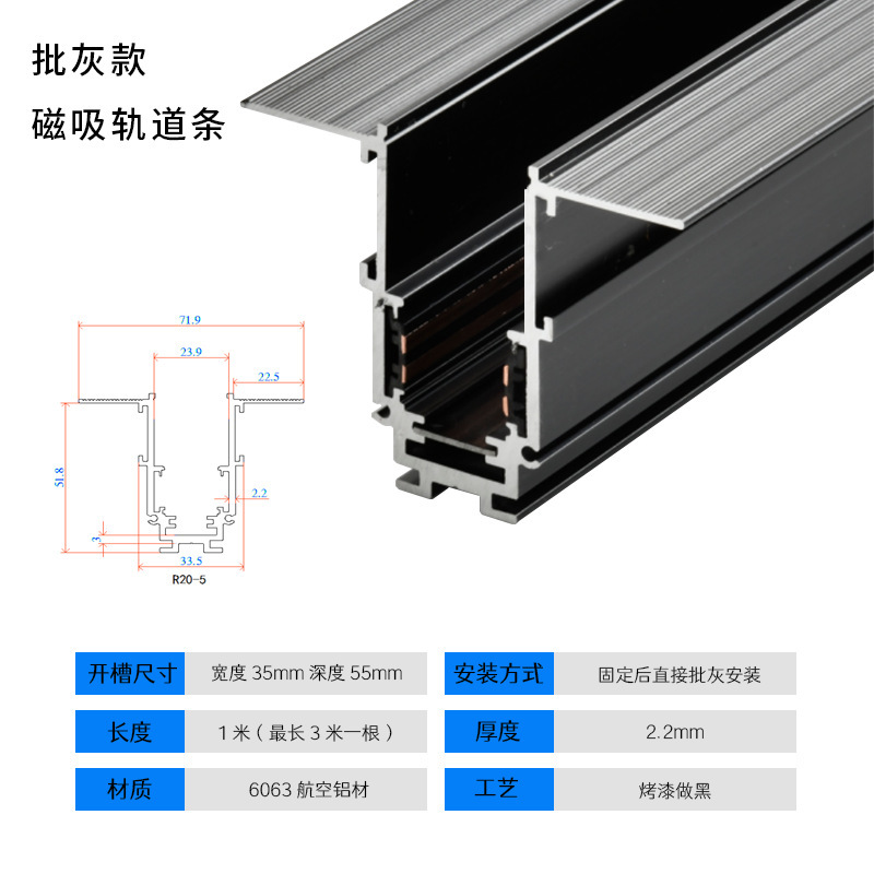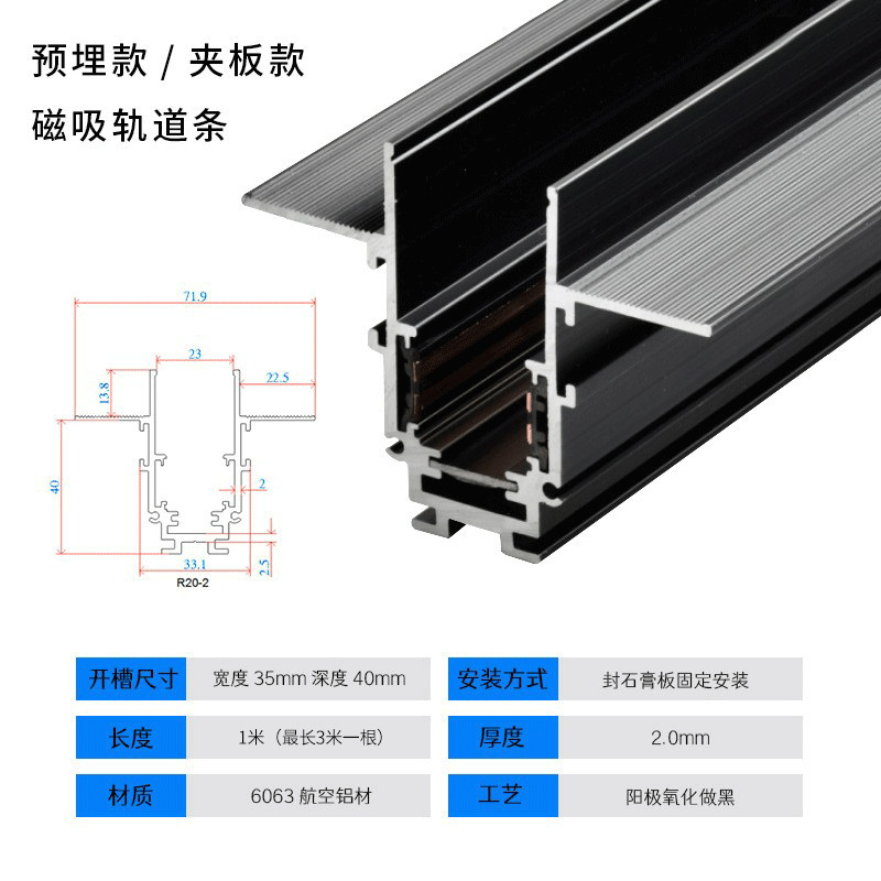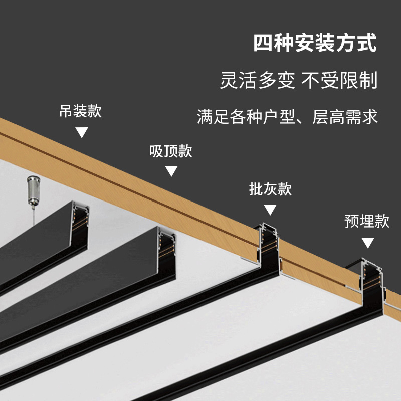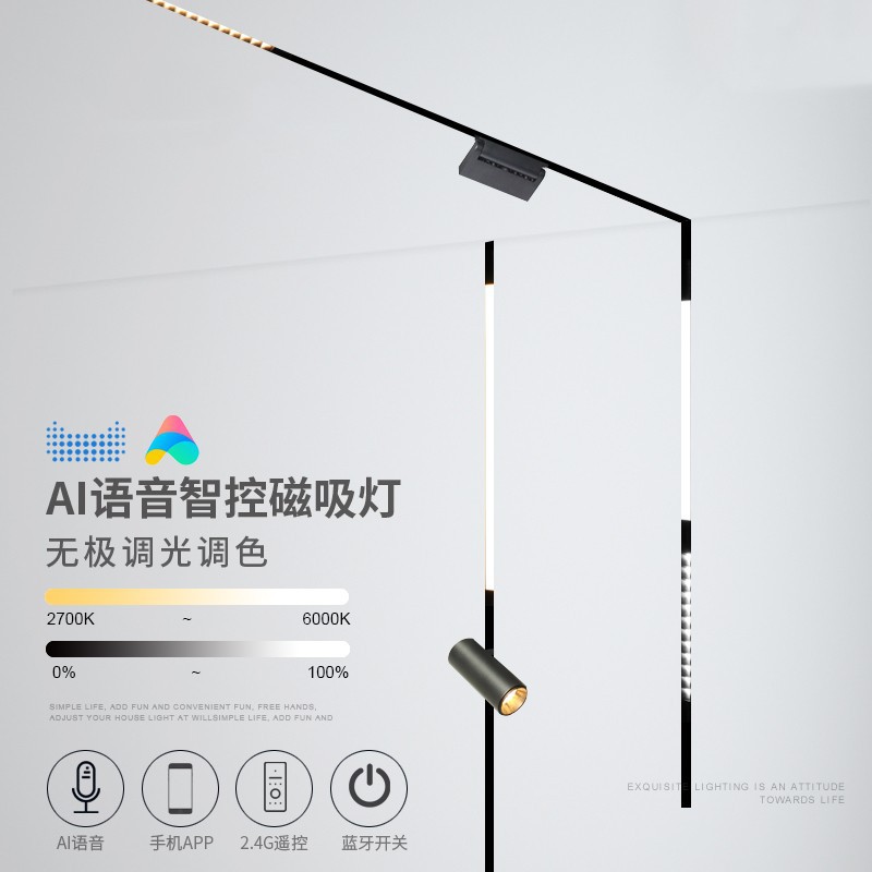 led磁吸轨道灯智能无极调光嵌入式暗装明装无主灯家装照明线条灯