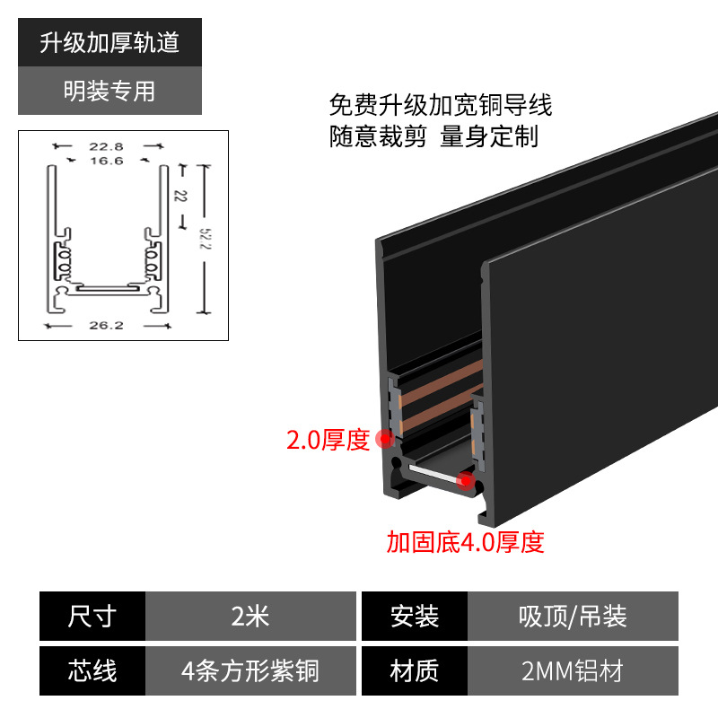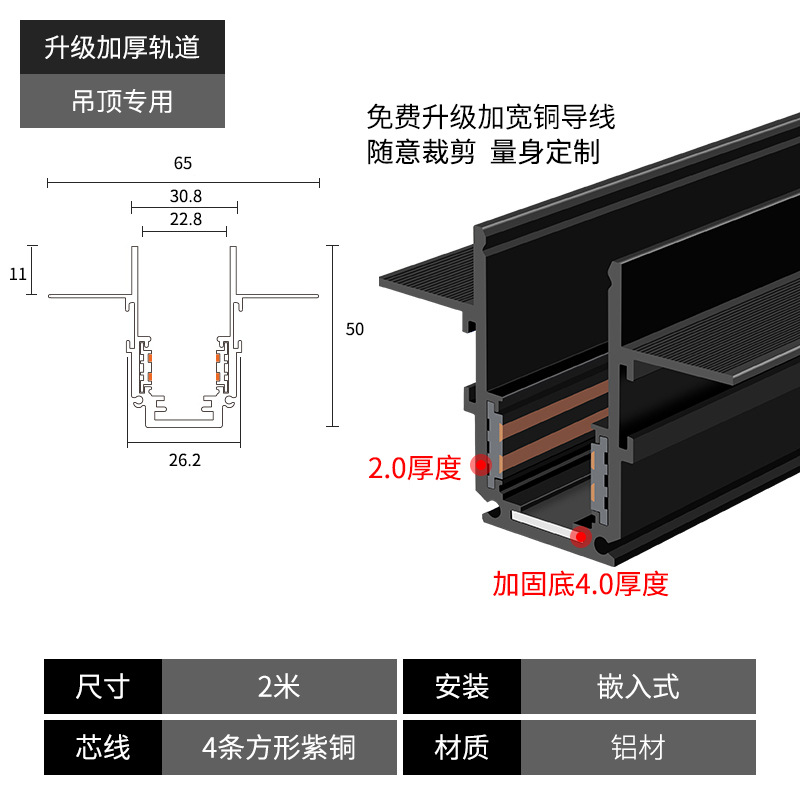 磁吸轨道灯 家用射灯磁吸灯包邮嵌入式暗装明装无主灯轨道条智能