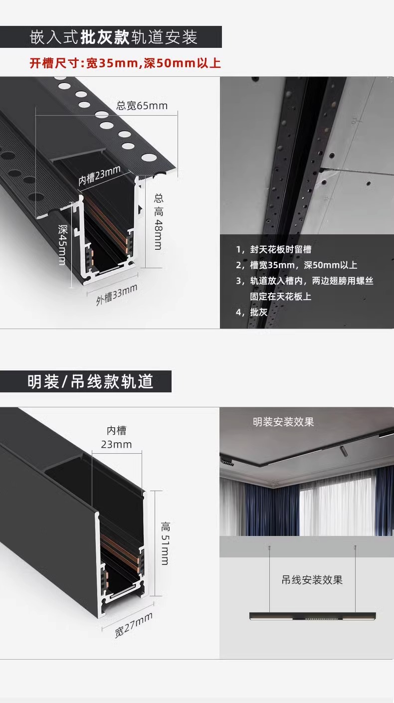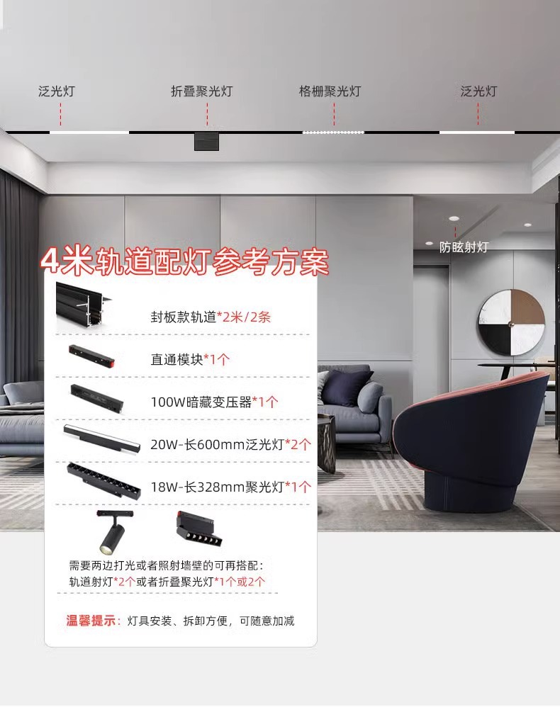 磁吸轨道灯嵌入式米家智能无主灯套餐客厅餐厅照明暗藏灯具预埋槽