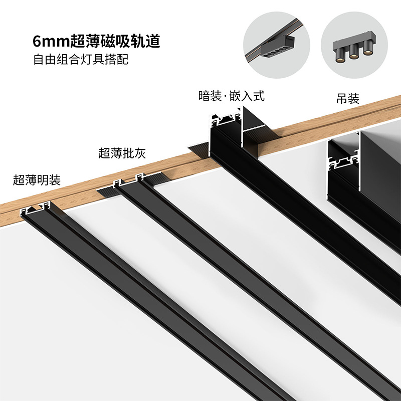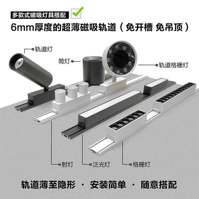 超薄明装磁吸轨道灯免吊顶led导轨射灯家用改造6mm无主灯照明客厅