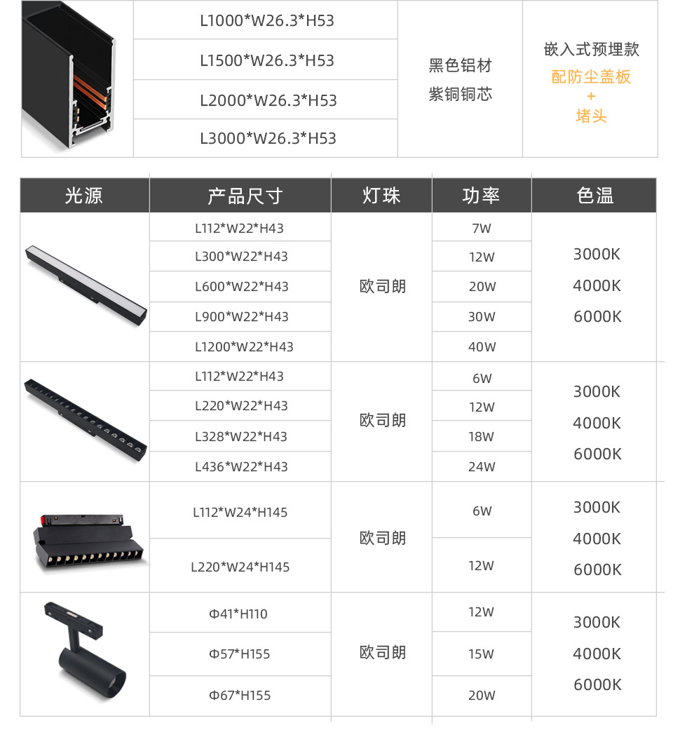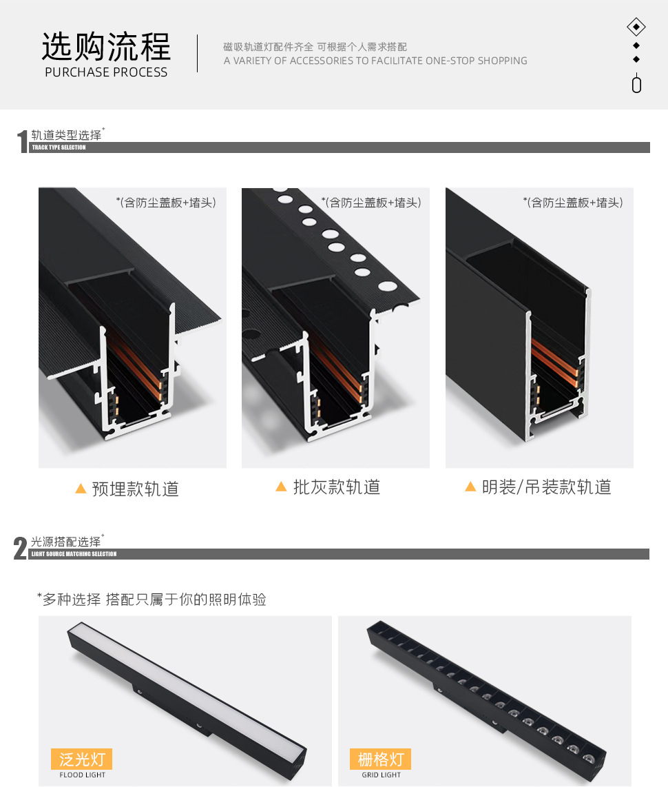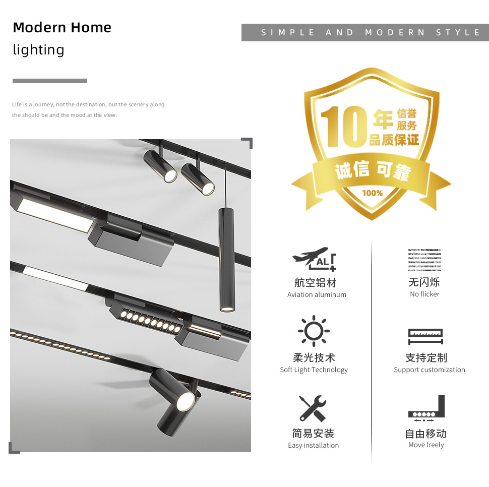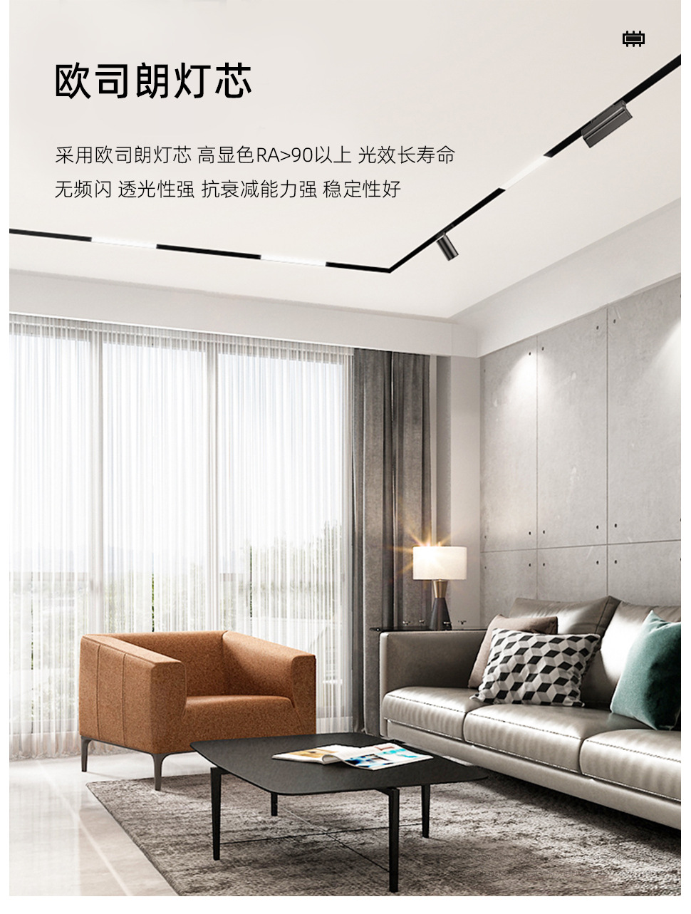 led磁吸轨道灯嵌入式明装吊灯48v智能家用客厅灯无主灯射灯轨道条