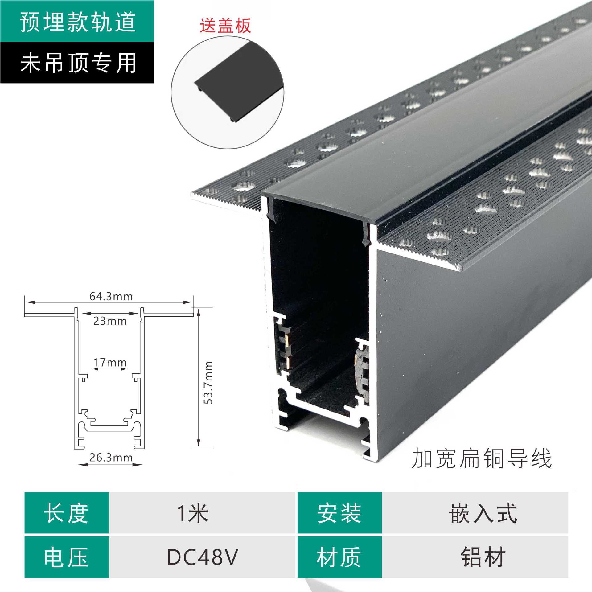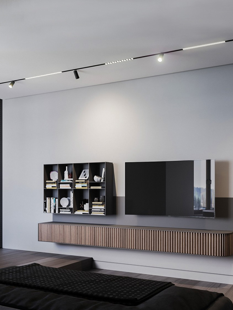 磁吸轨道灯led客厅家用无主灯嵌入式射灯无边框暗装明装线条射灯