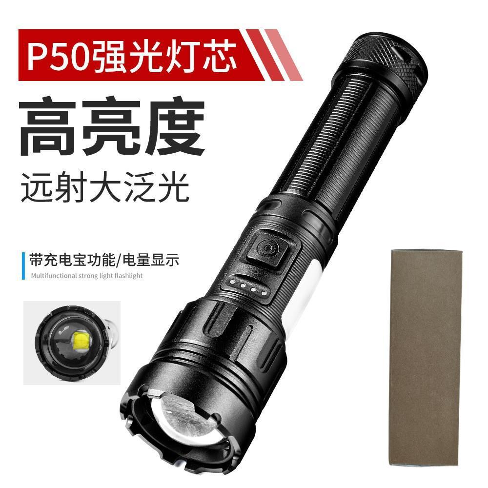 跨境P50强光手电筒Type-C充电户外变焦远射多功能LED长续航手电筒
