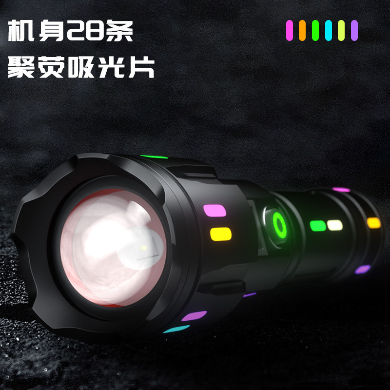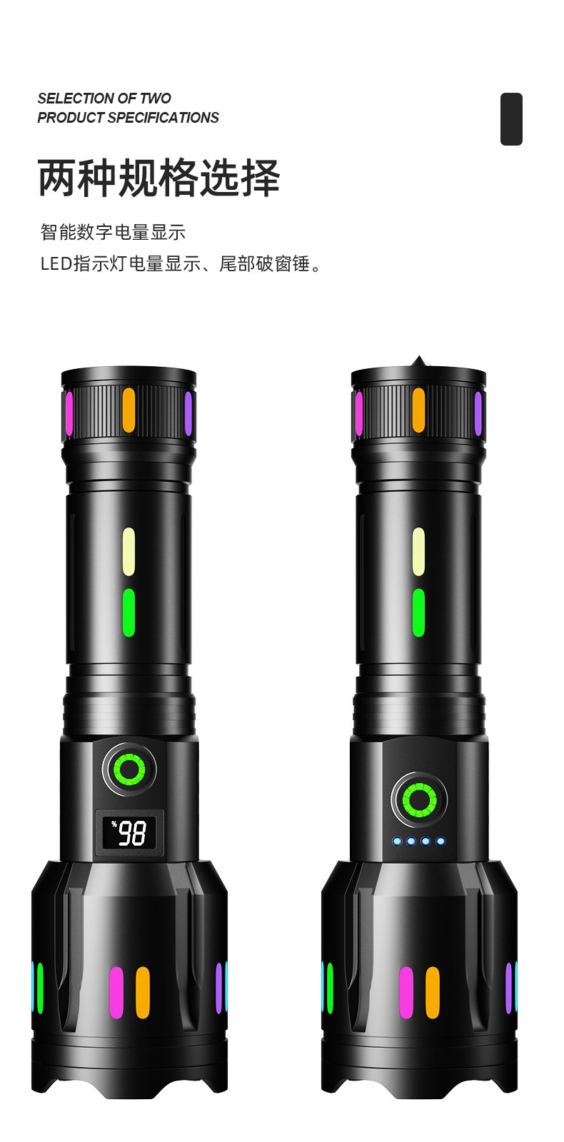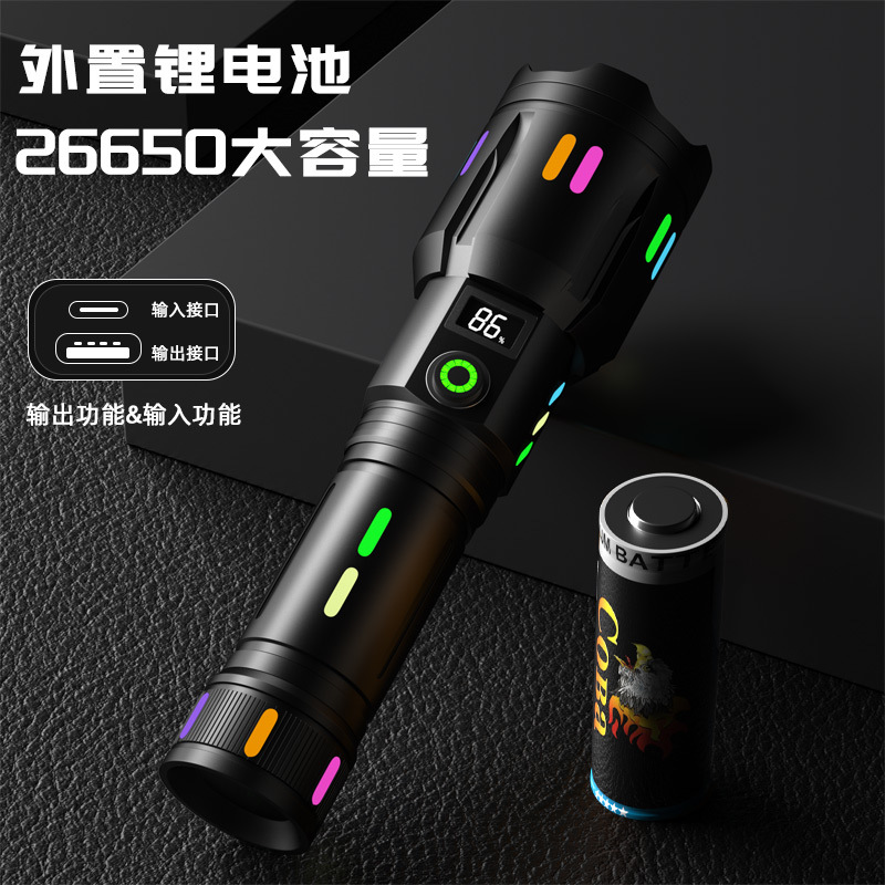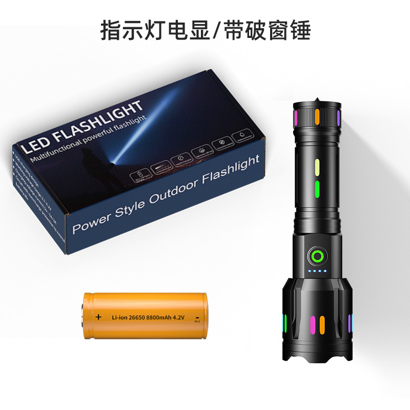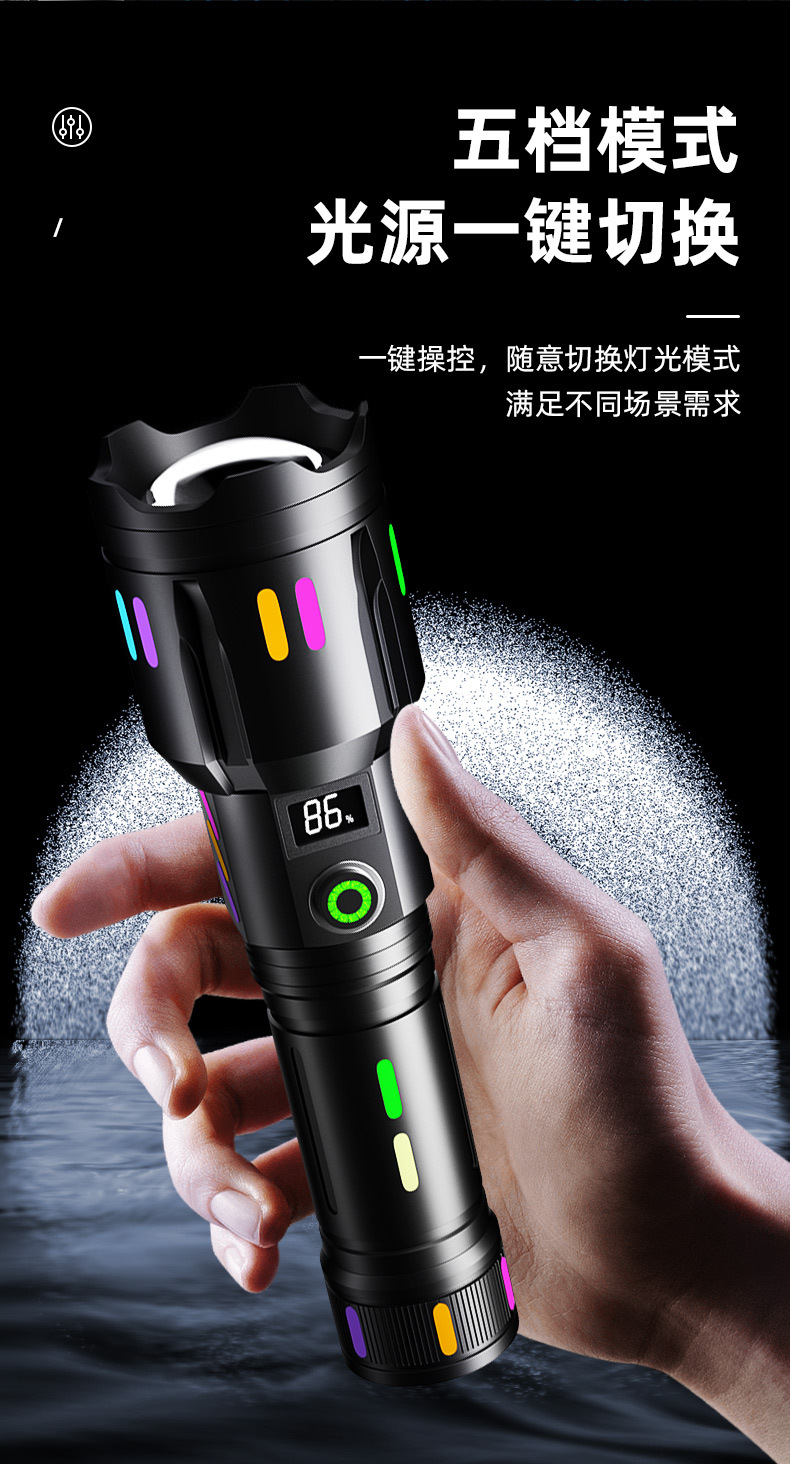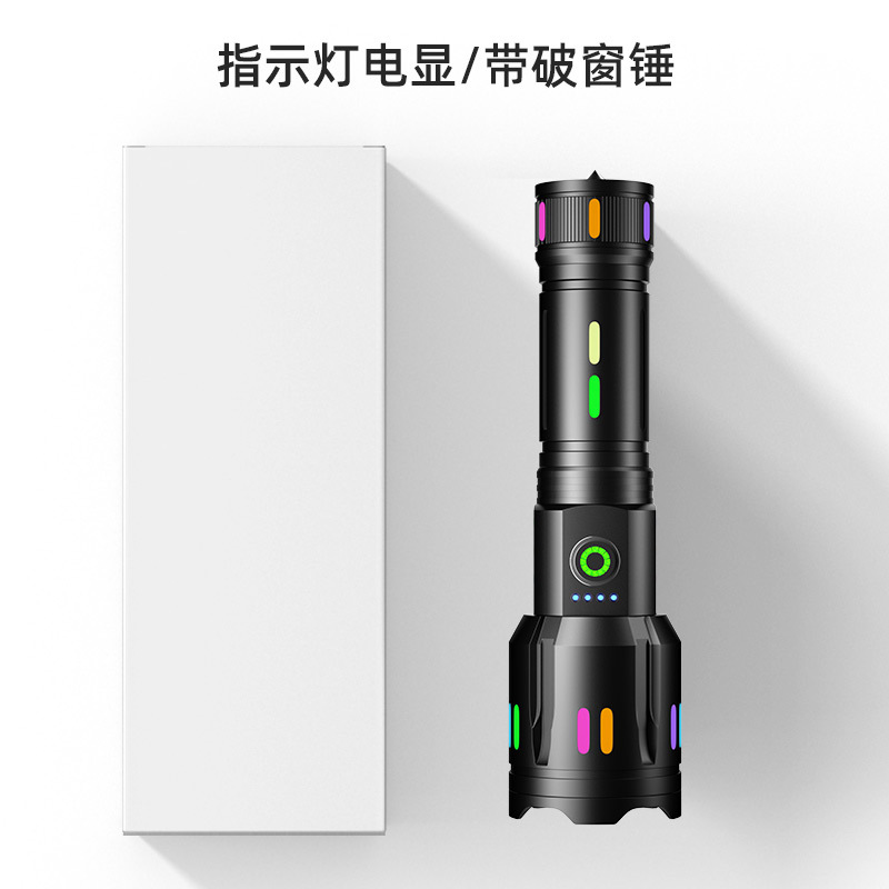 跨境户外强光远射手电筒充电数字电显荧光条尾锤变焦白激光手电