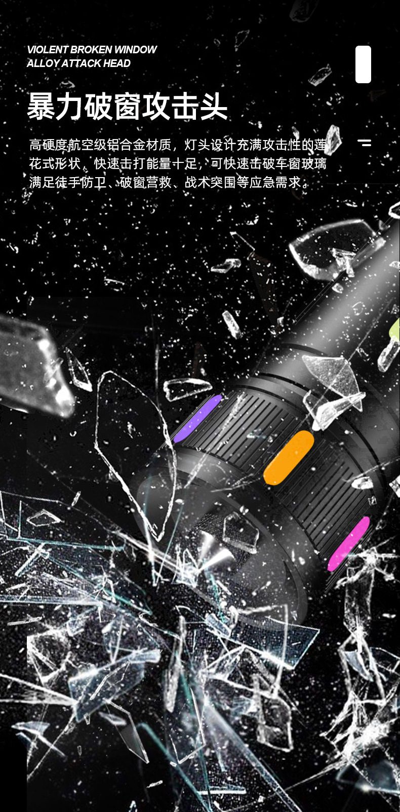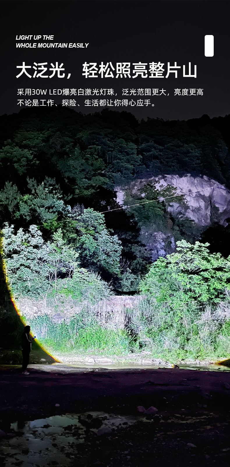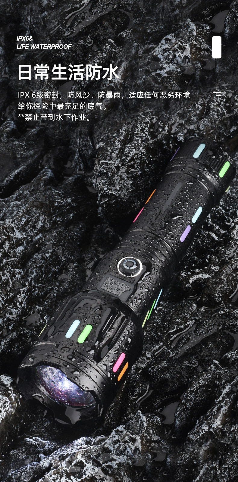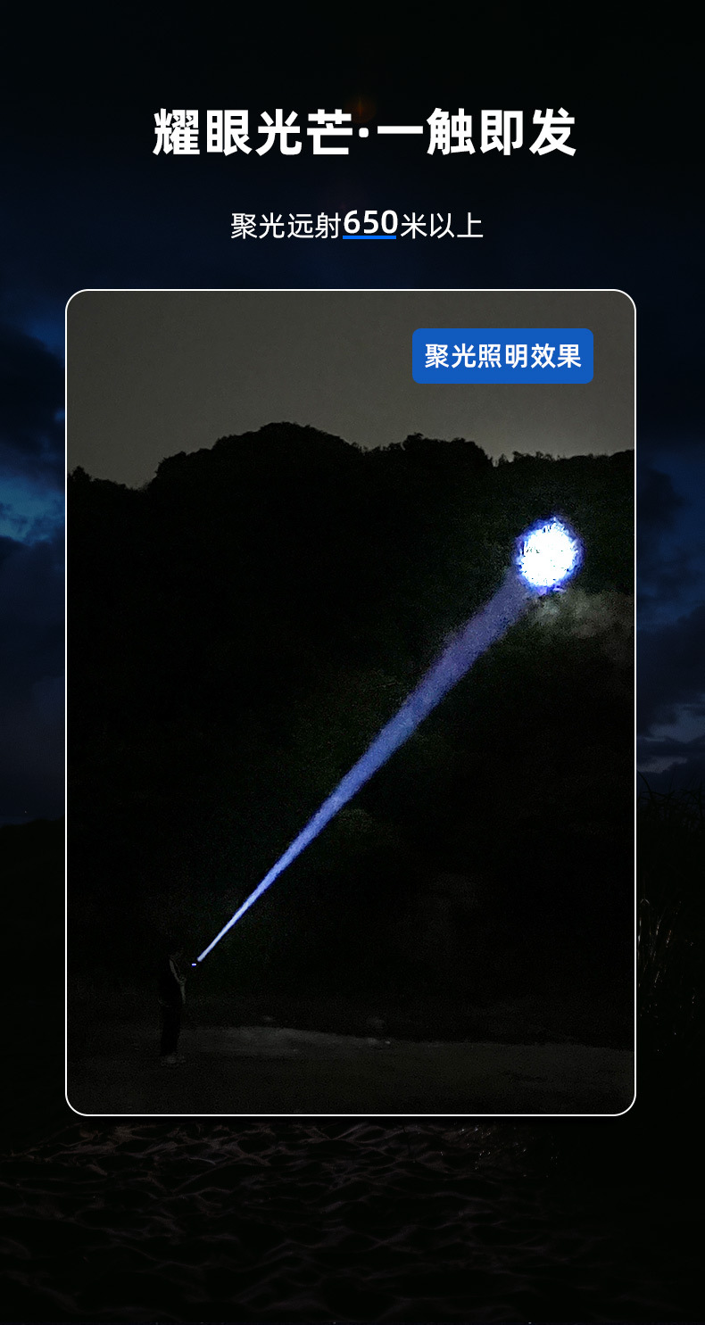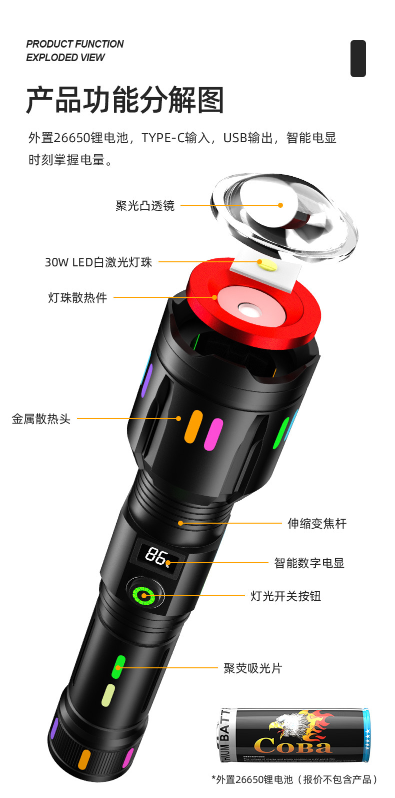 跨境户外强光远射手电筒充电数字电显荧光条尾锤变焦白激光手电