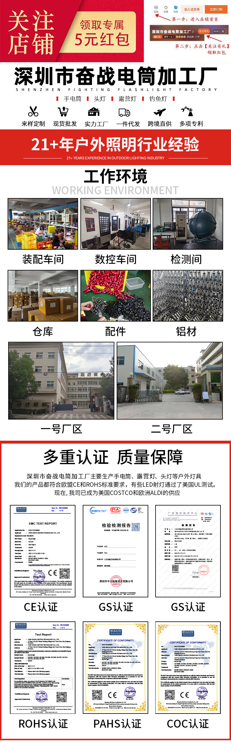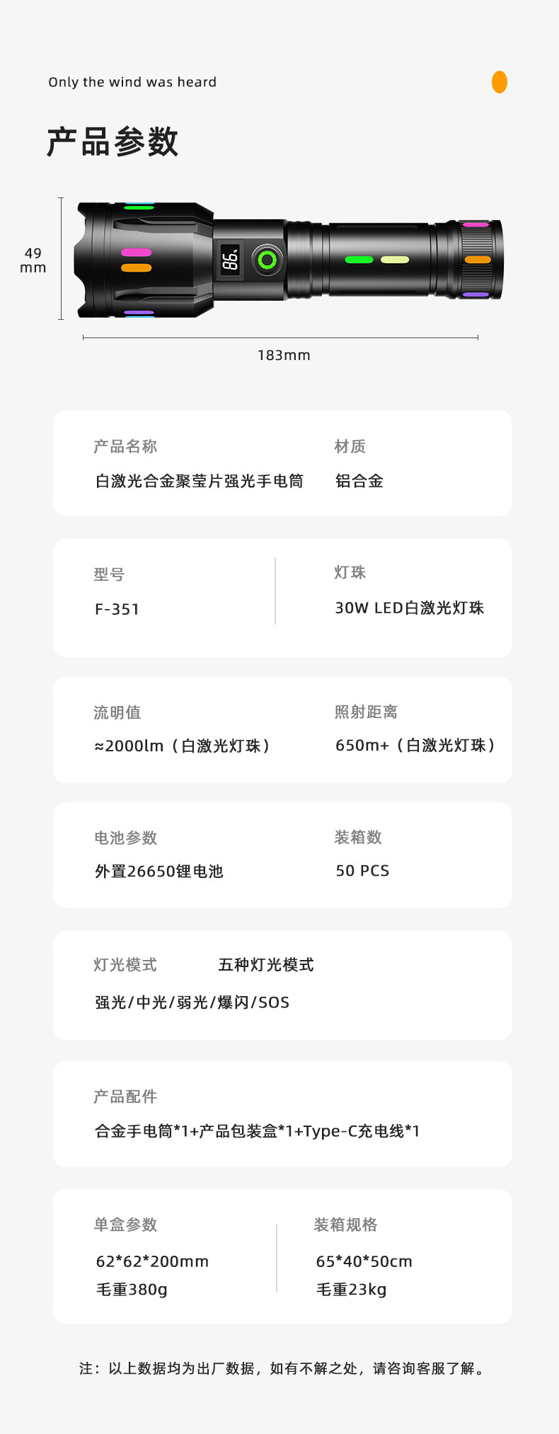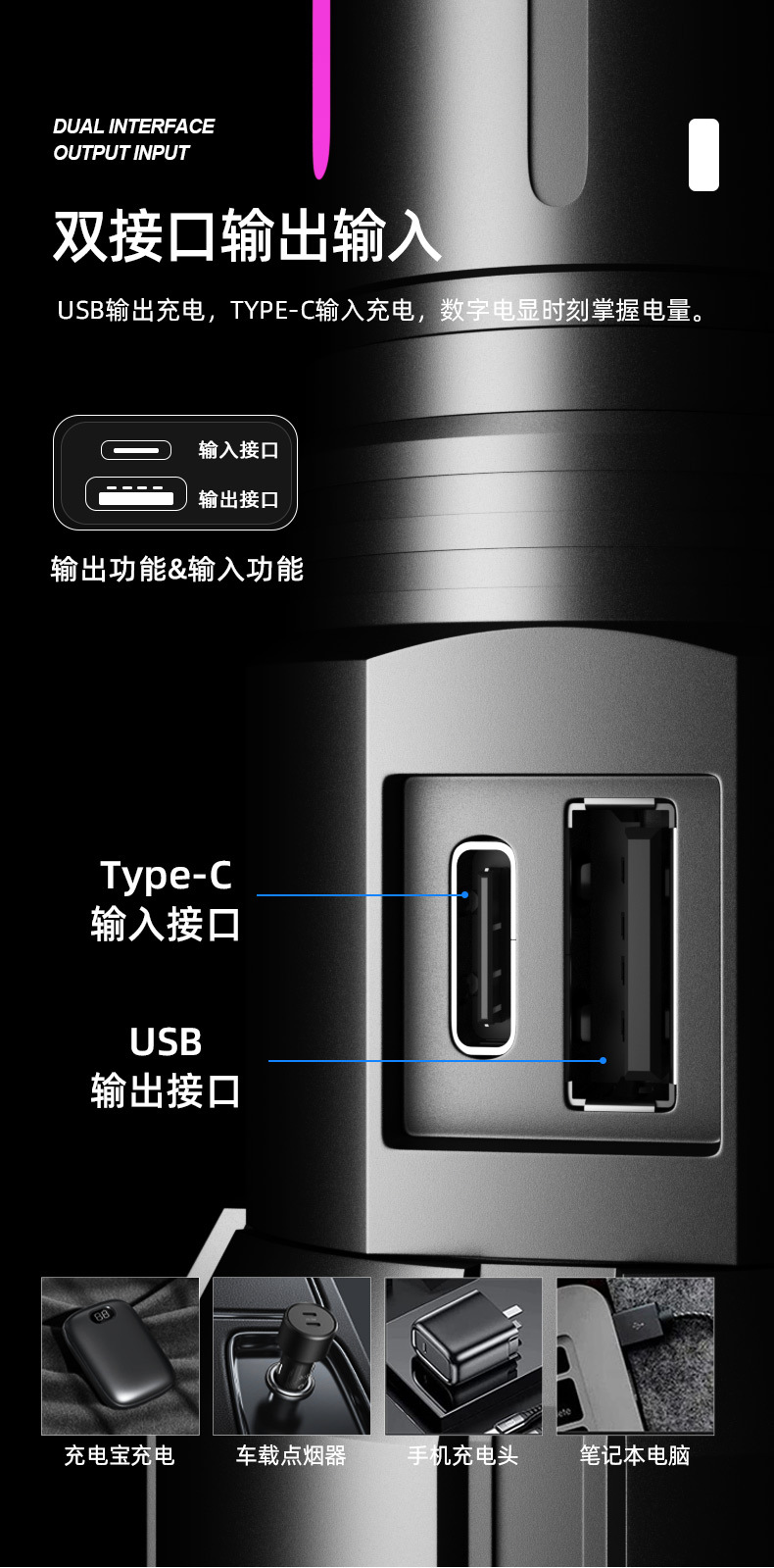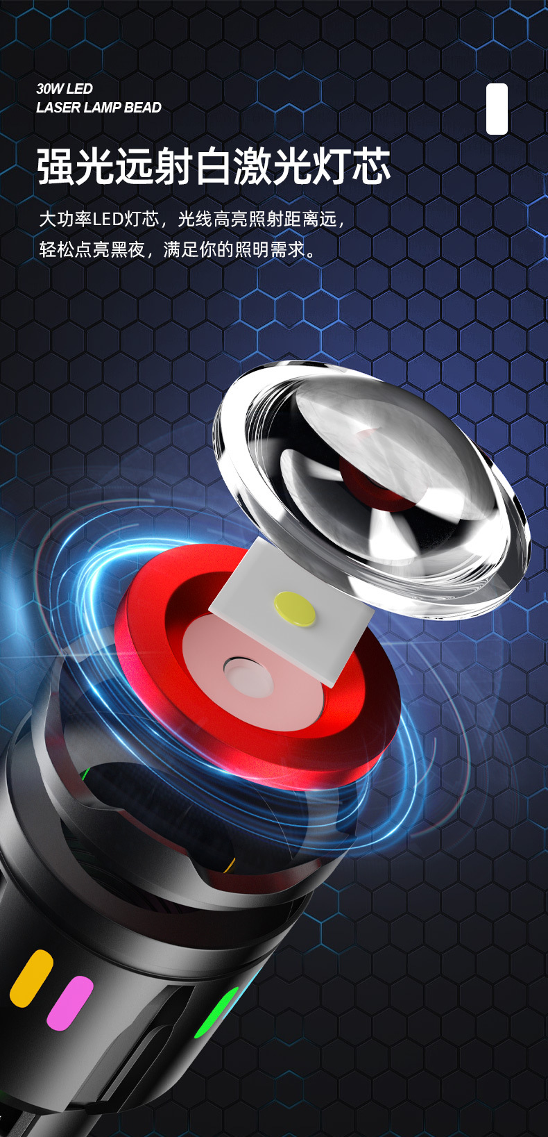跨境户外强光远射手电筒充电数字电显荧光条尾锤变焦白激光手电