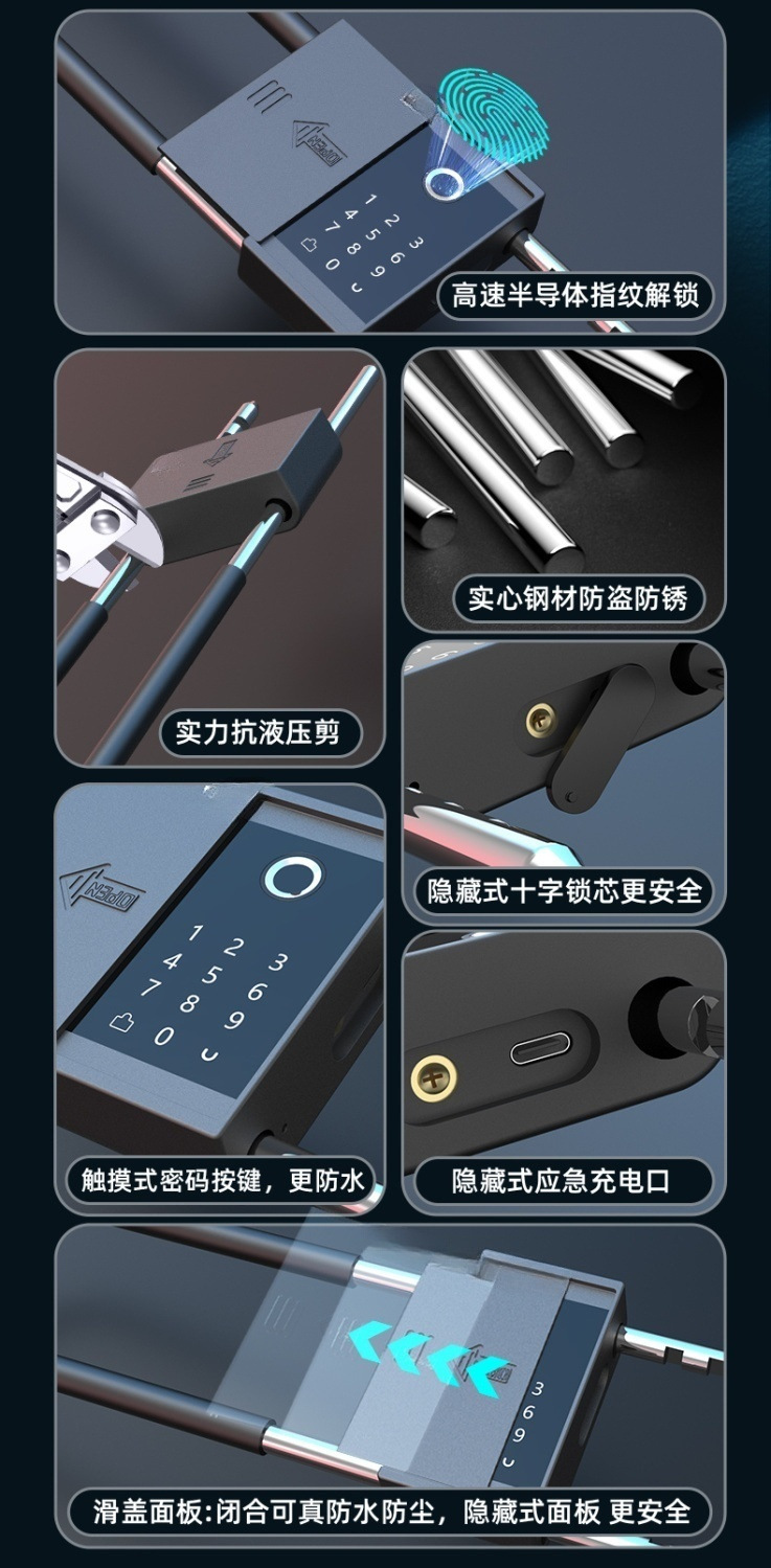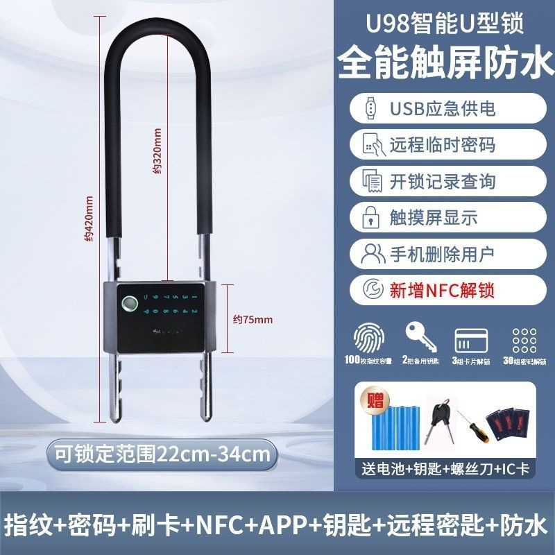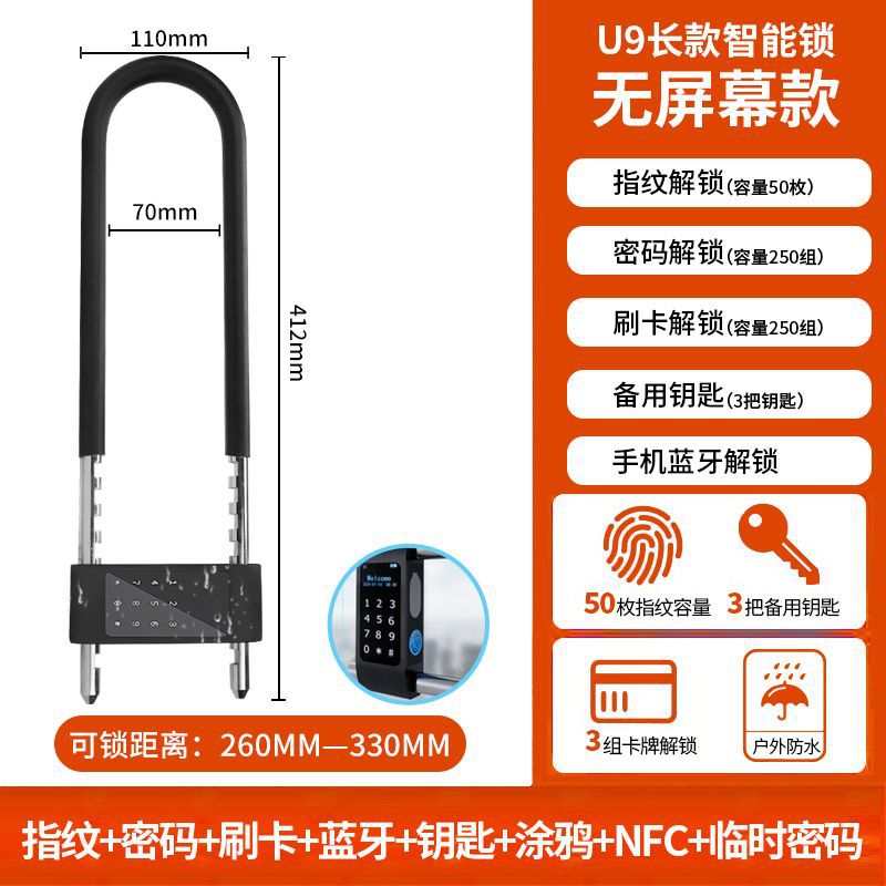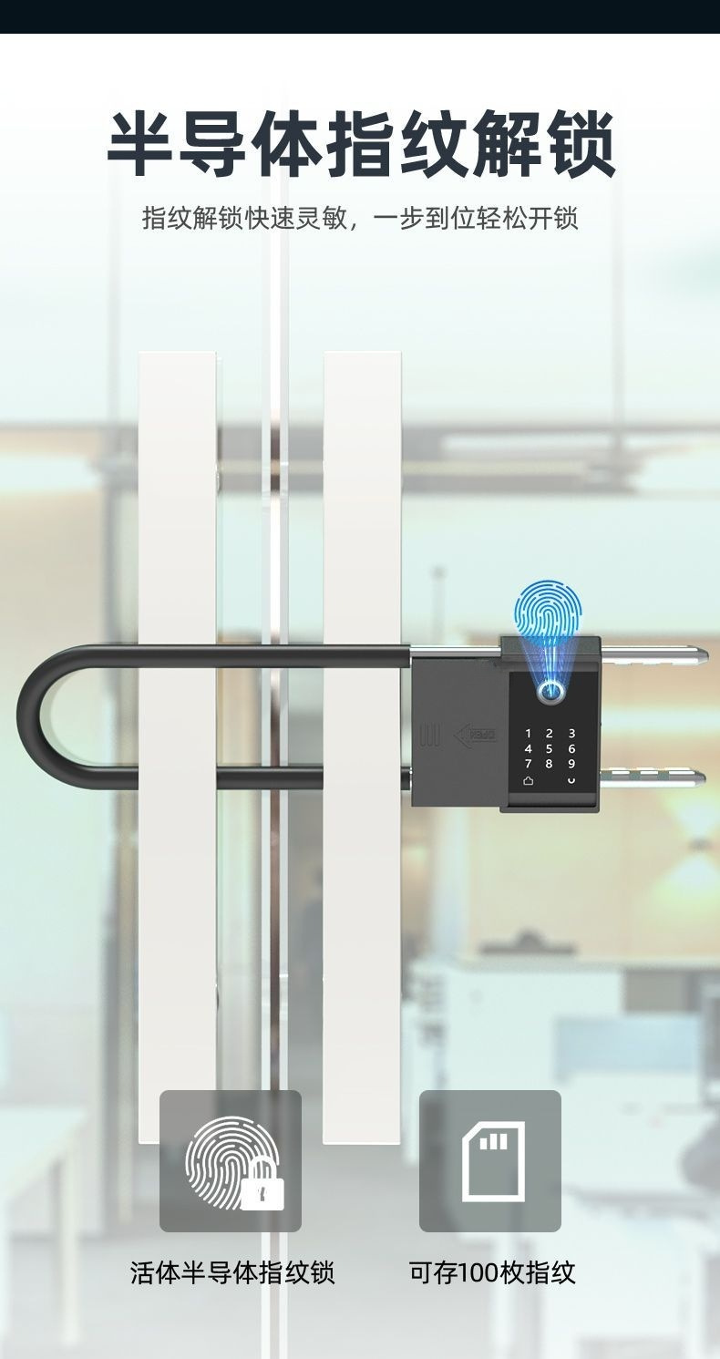 智能滑盖u型锁密码指纹防盗插锁锁具加长商铺门面玻璃门锁店铺u型