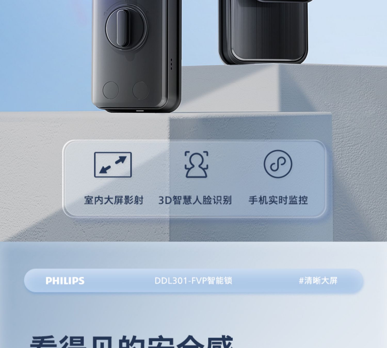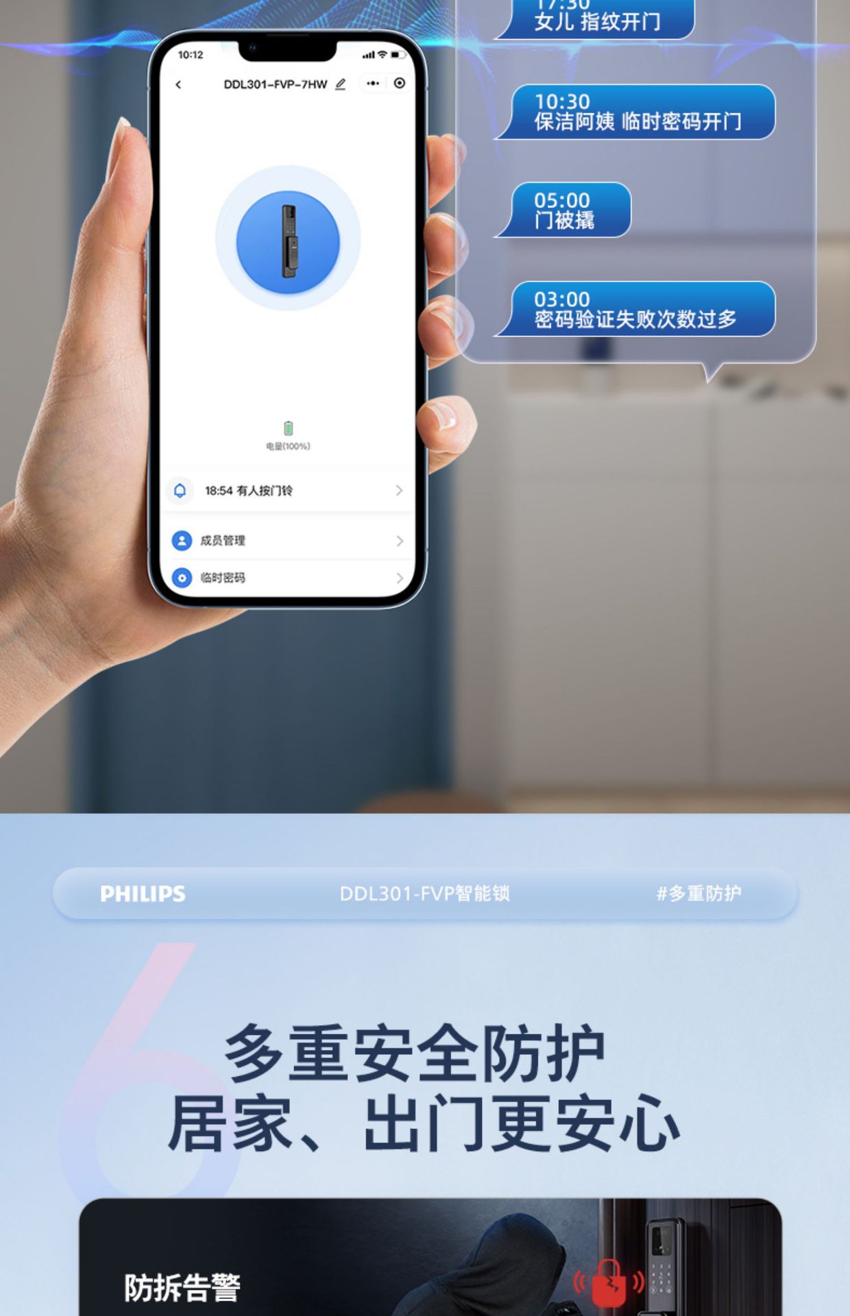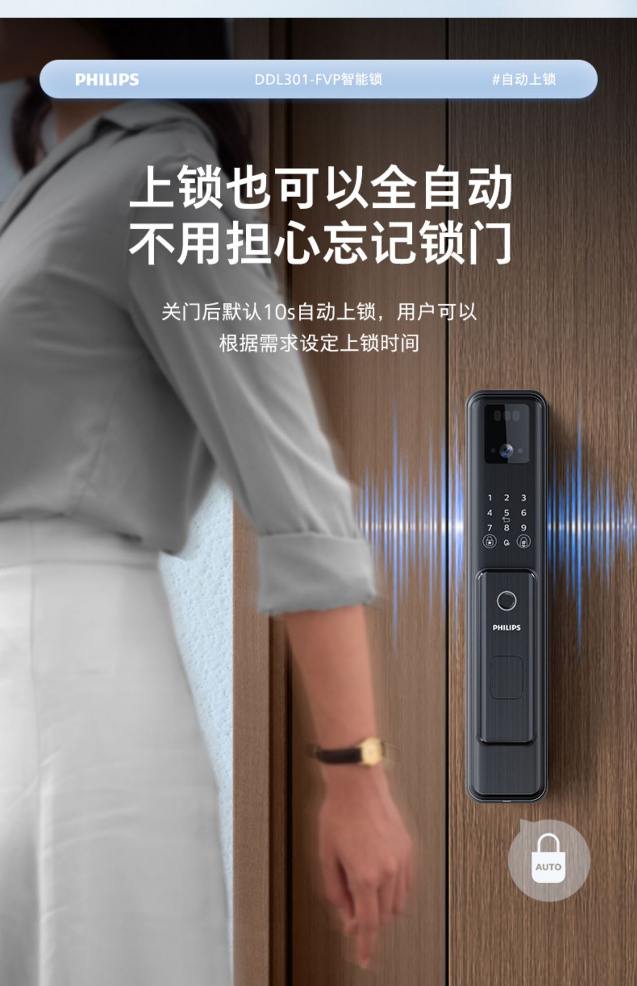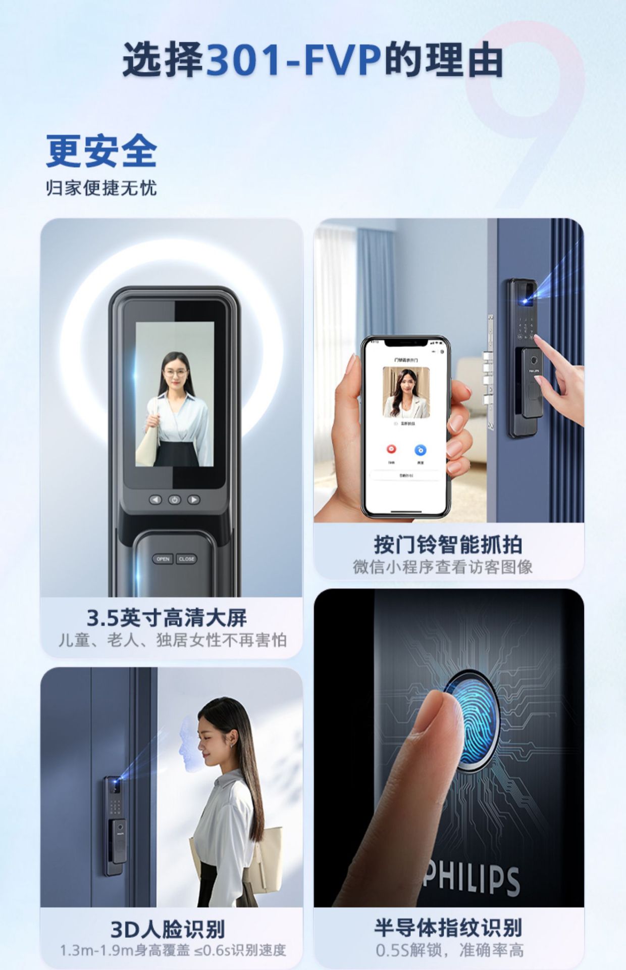 飞利浦指纹锁密码锁人脸识别WiFi可视猫眼大屏电子锁301FVP涂鸦