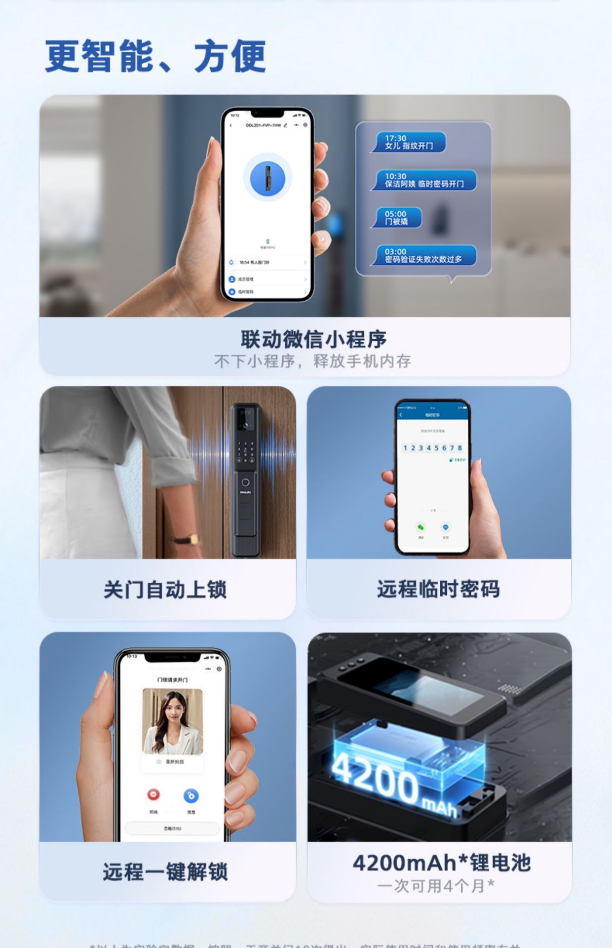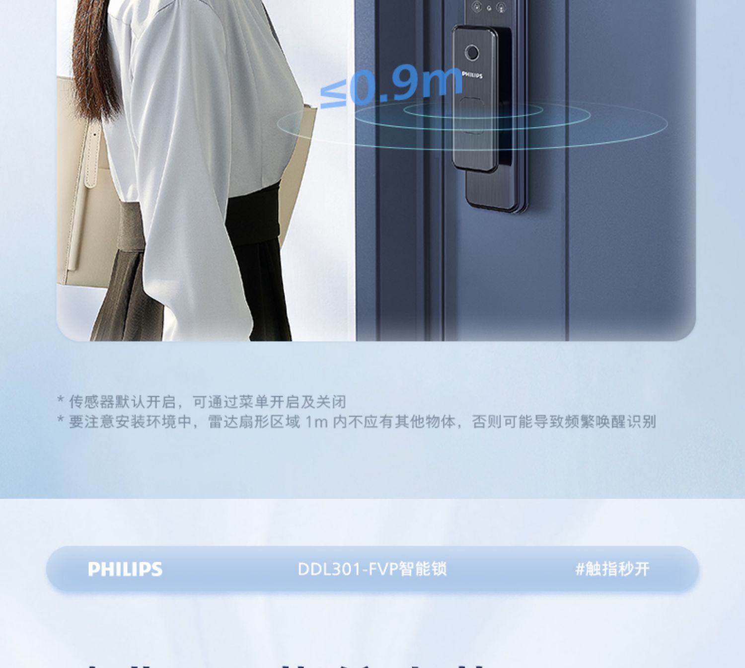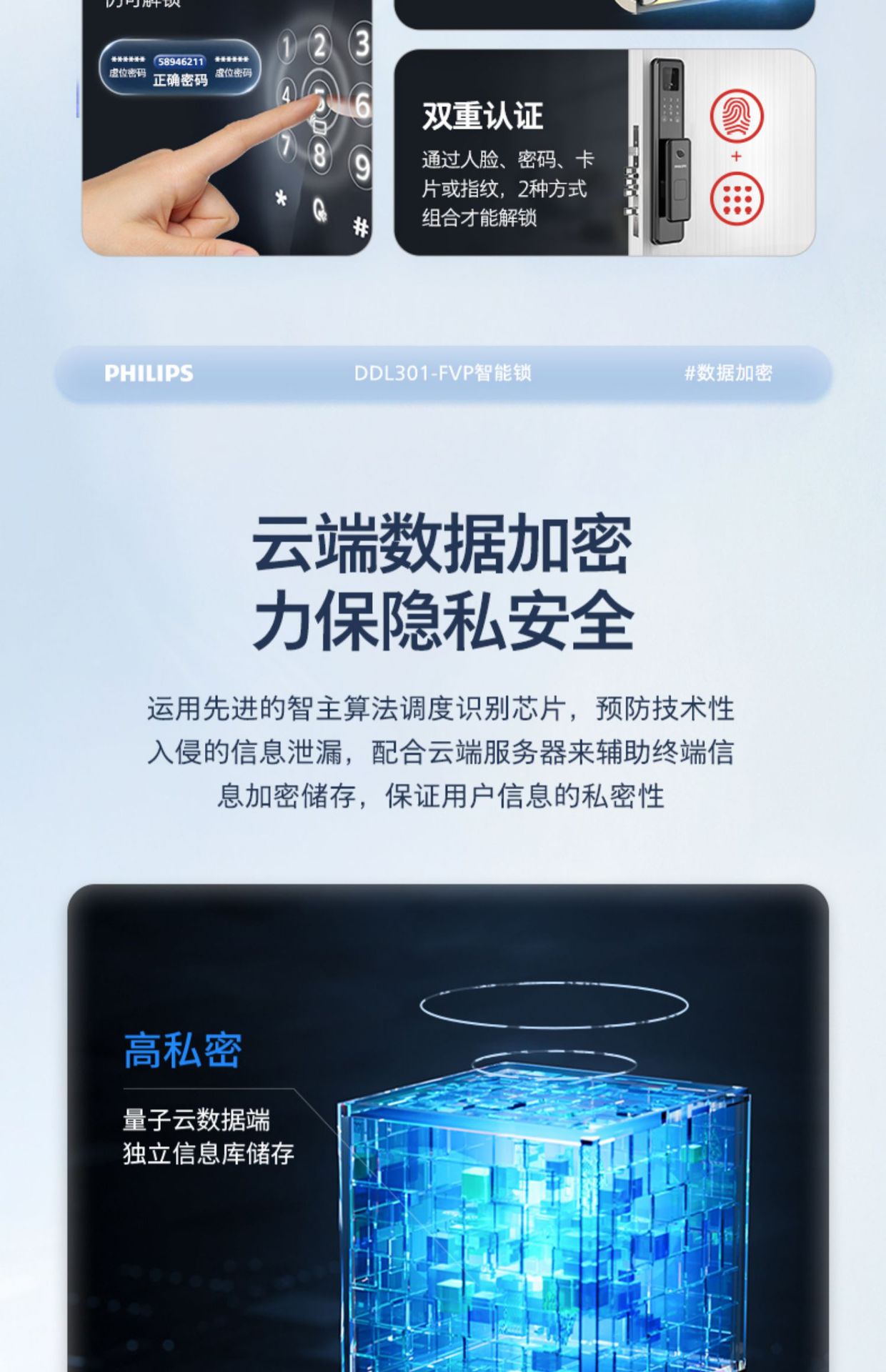飞利浦指纹锁密码锁人脸识别WiFi可视猫眼大屏电子锁301FVP涂鸦