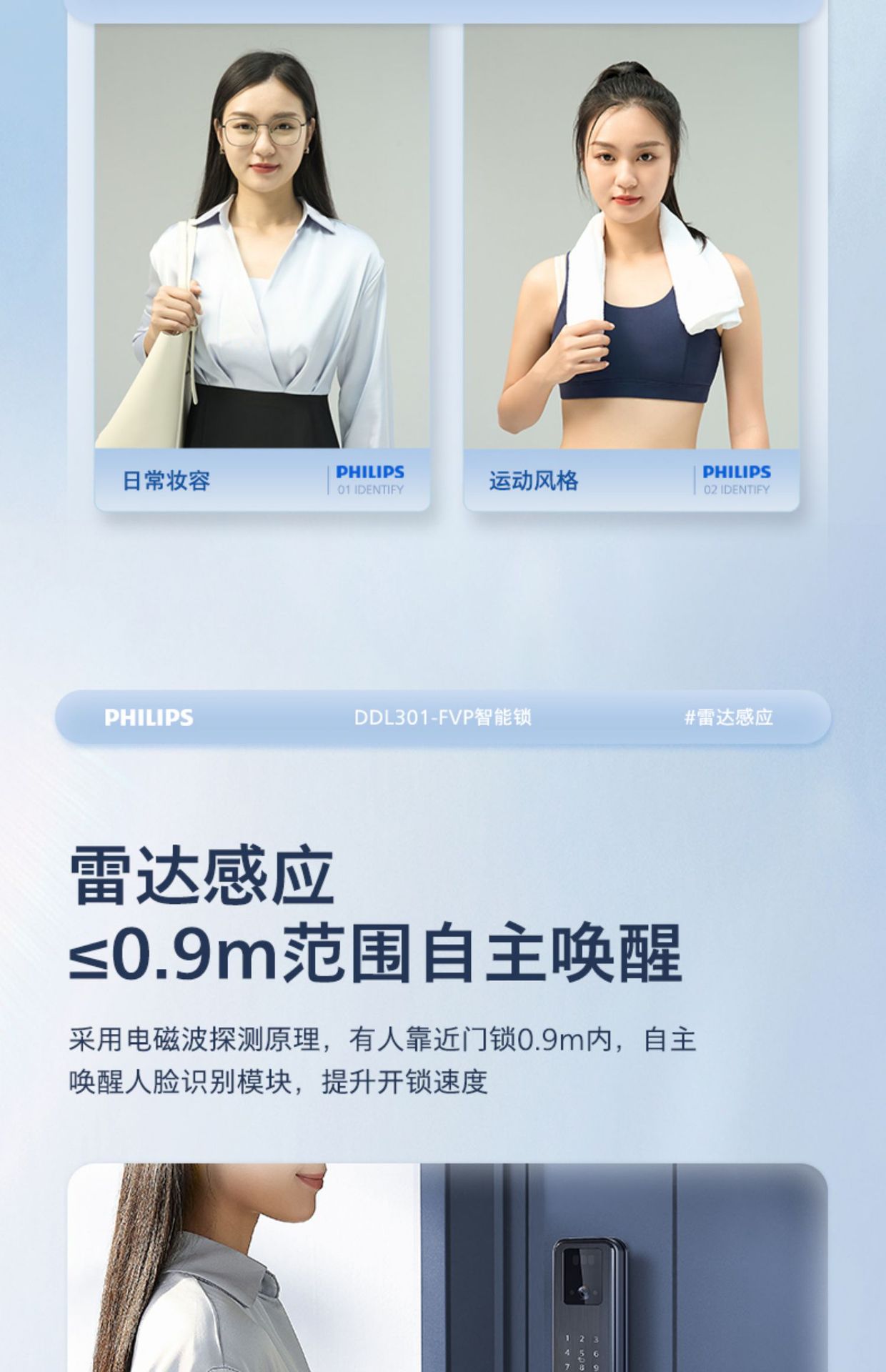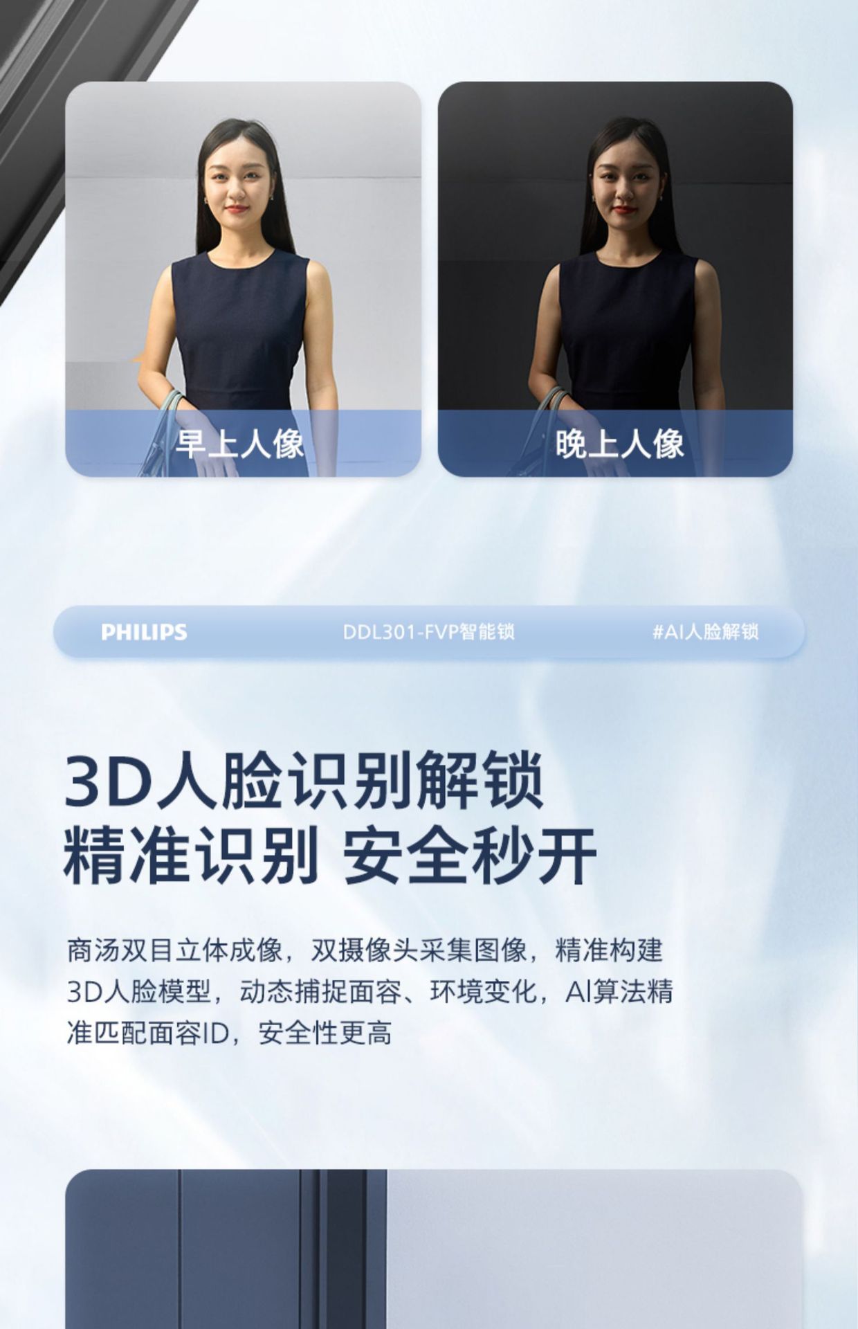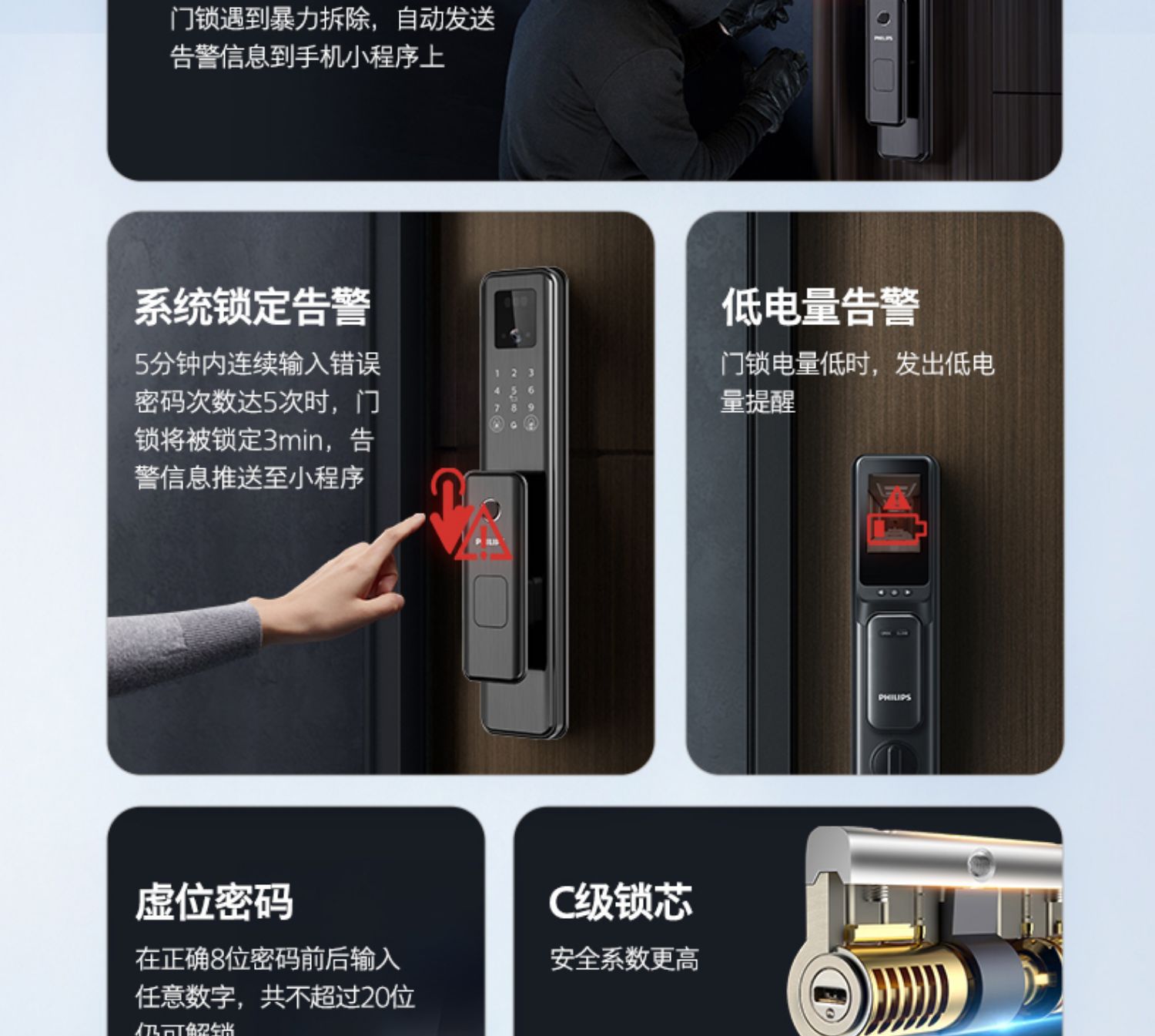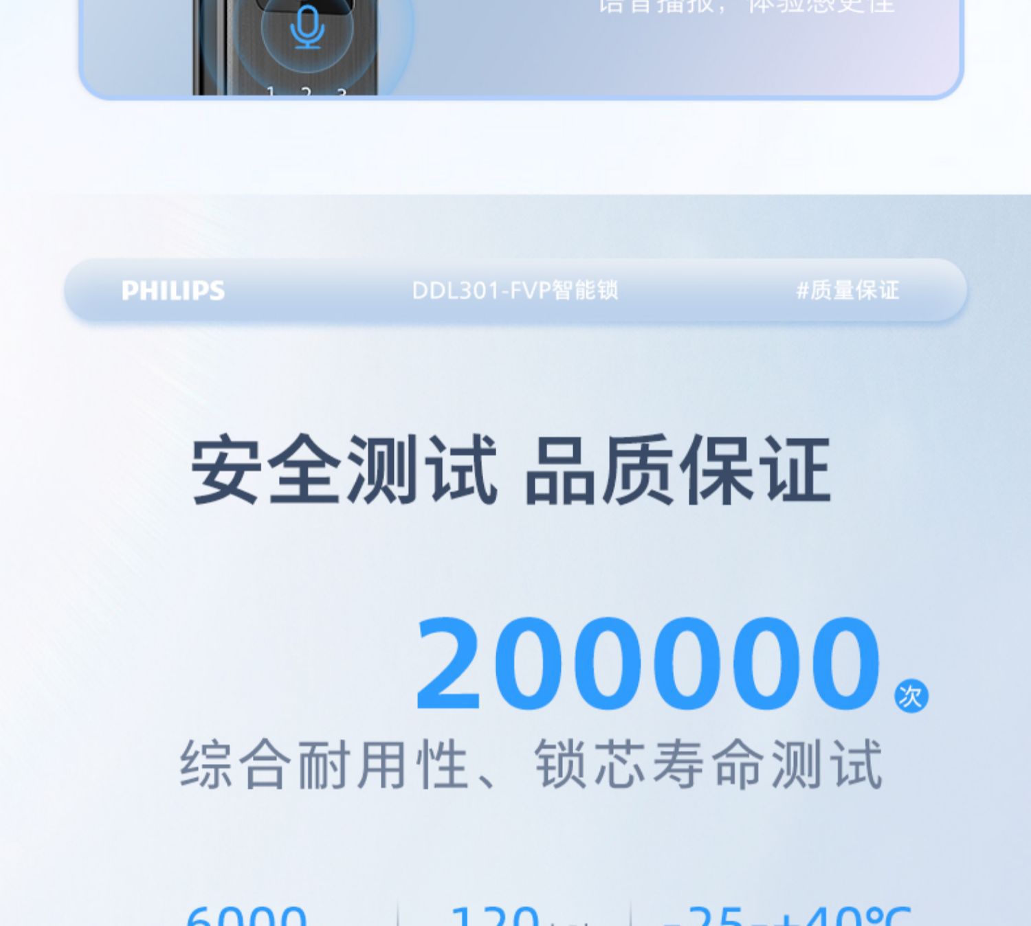 飞利浦指纹锁密码锁人脸识别WiFi可视猫眼大屏电子锁301FVP涂鸦