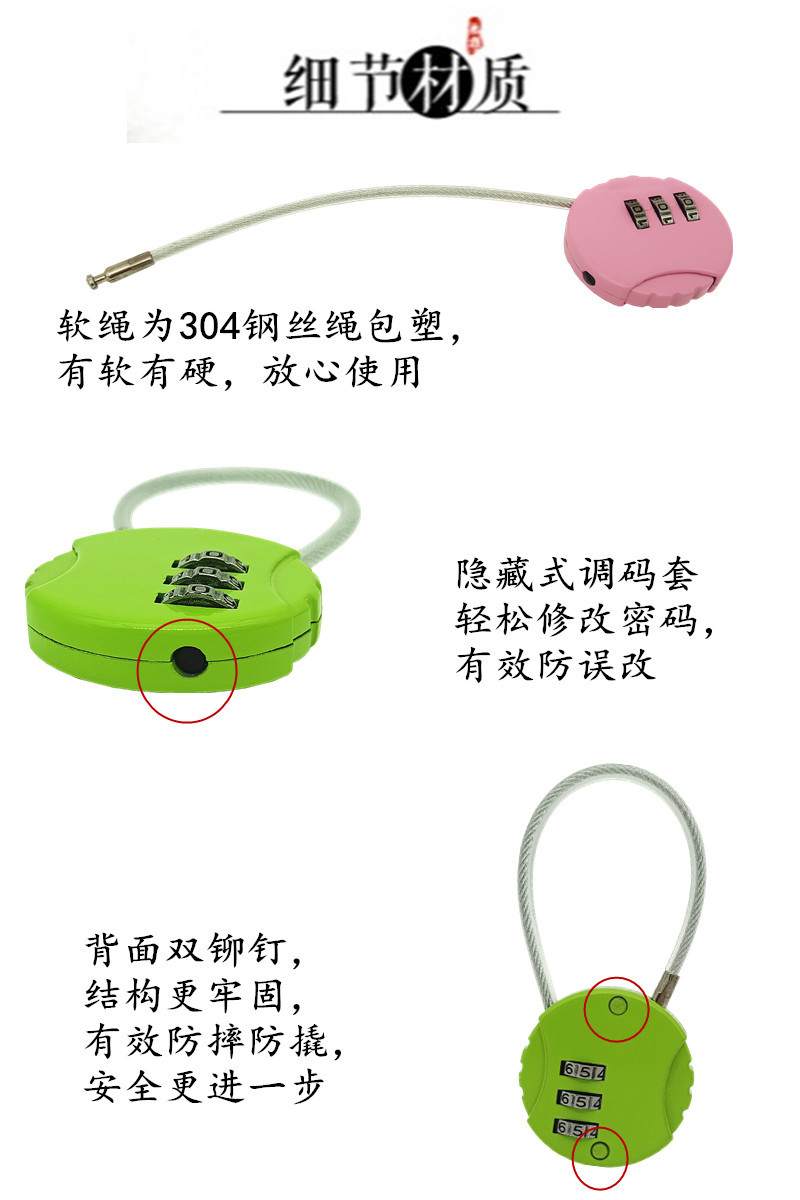 503B户外旅行防水防盗软钢丝金属小锁头健身房衣柜锁密码锁挂锁