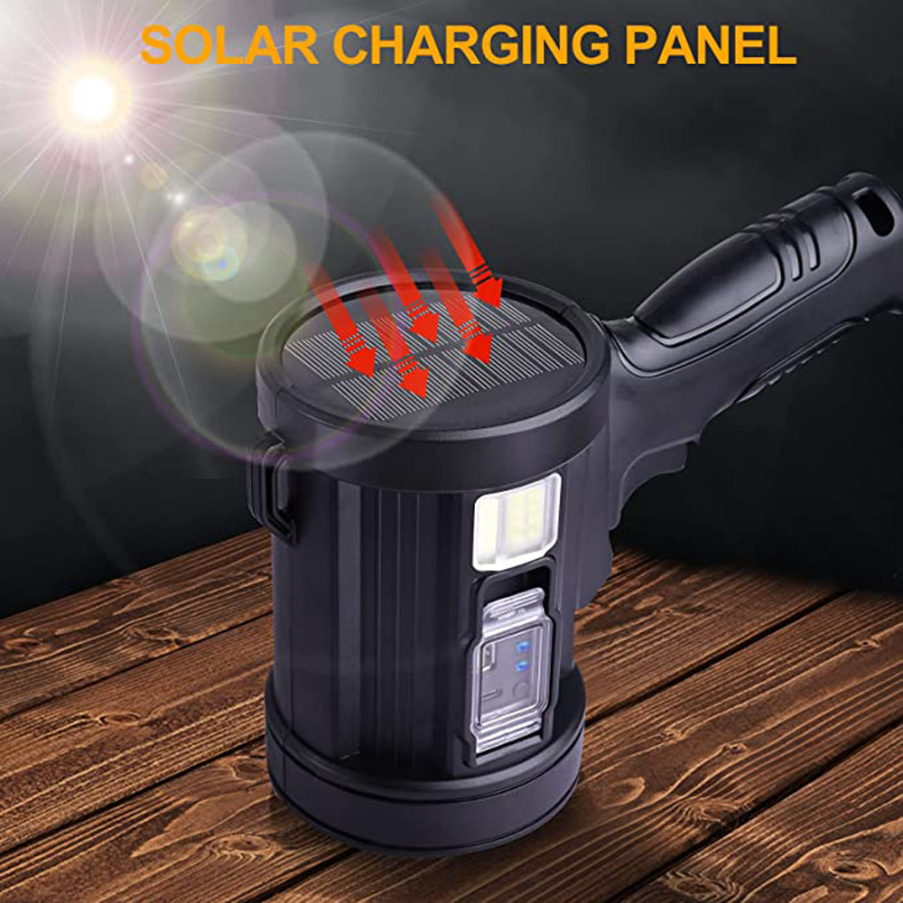跨境手持枪式多功能太阳能探照灯户外大泛光工作灯巡逻手电筒批发
