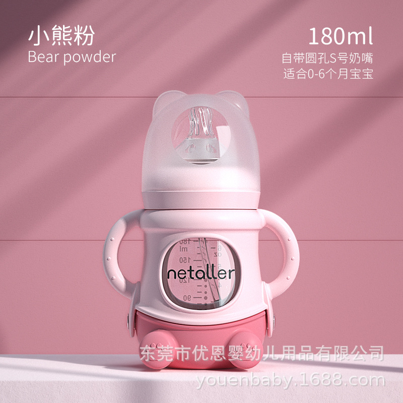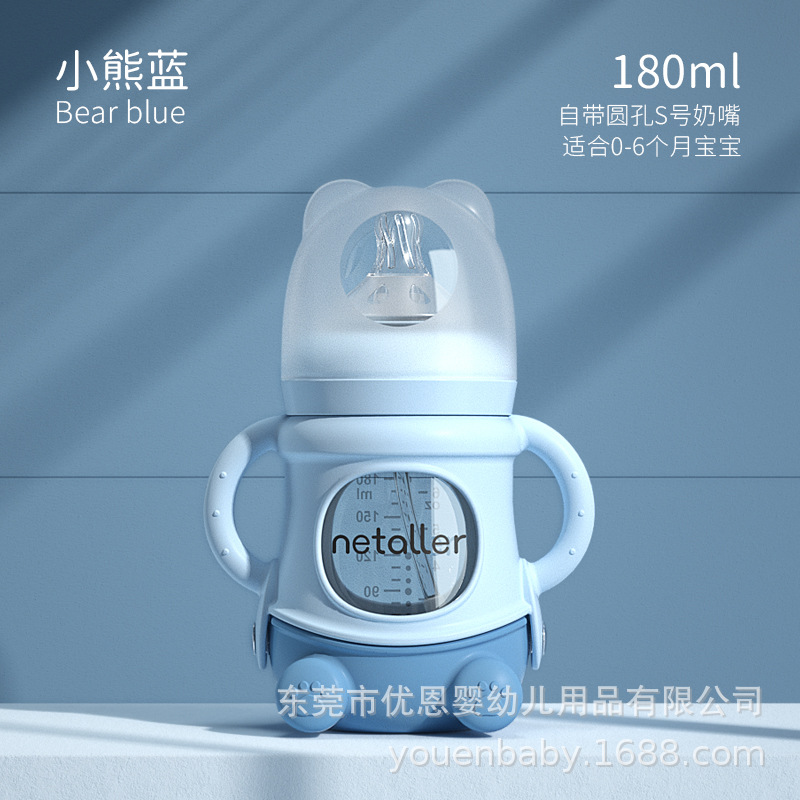婴儿玻璃奶瓶新生儿宽口径奶嘴带吸管硅胶防摔套宝宝喂奶断奶神器