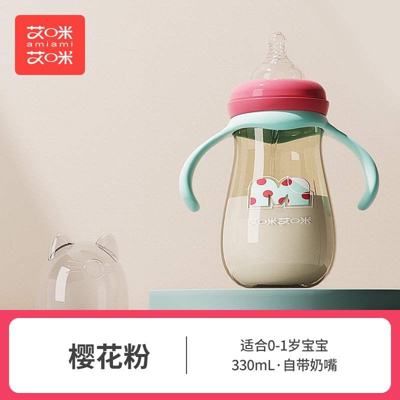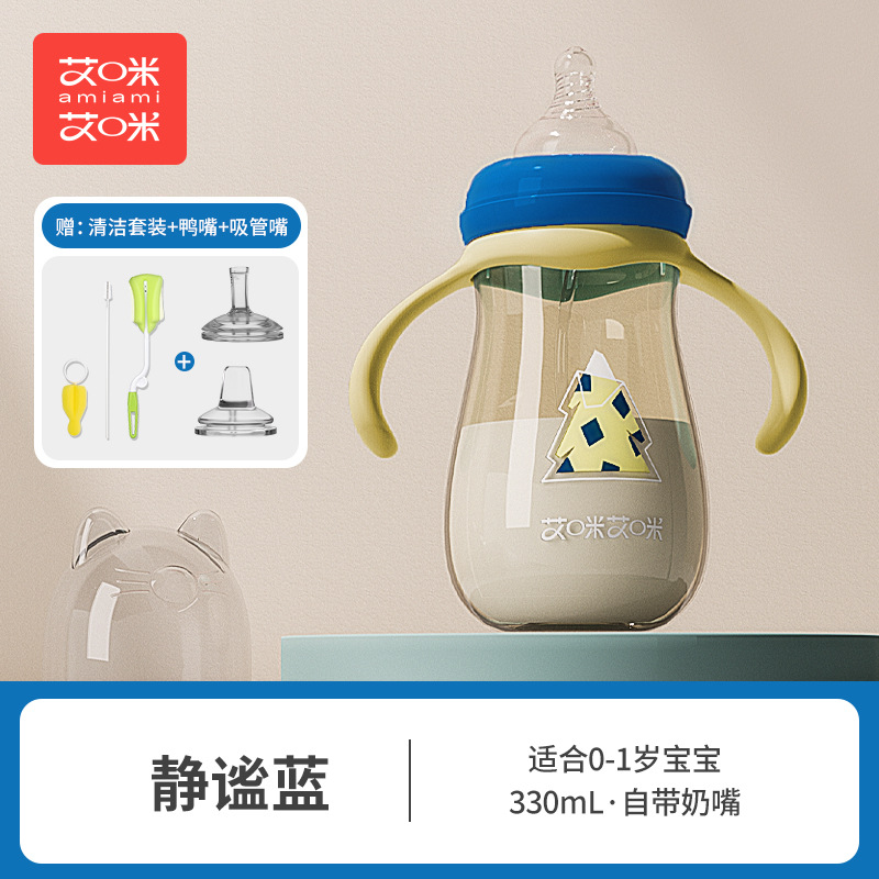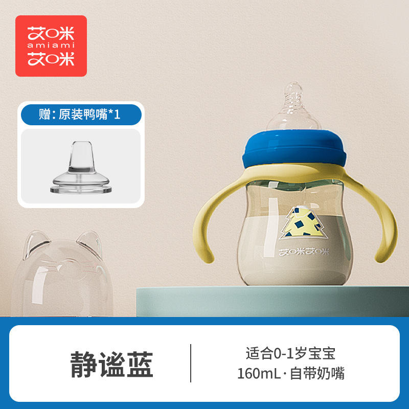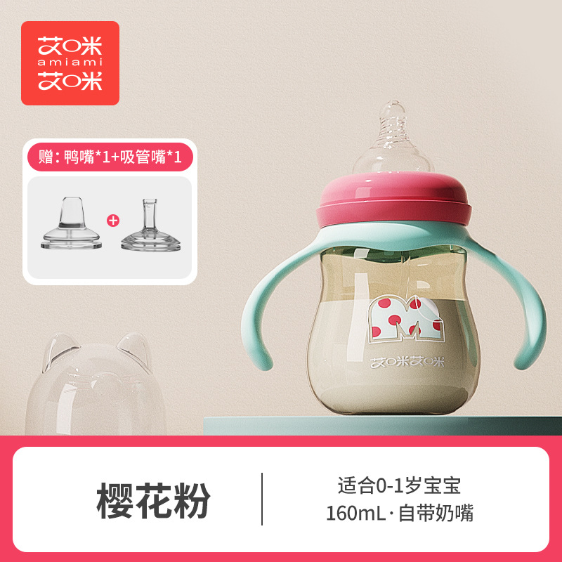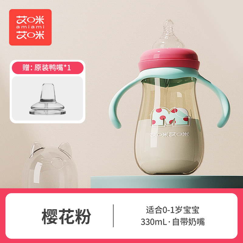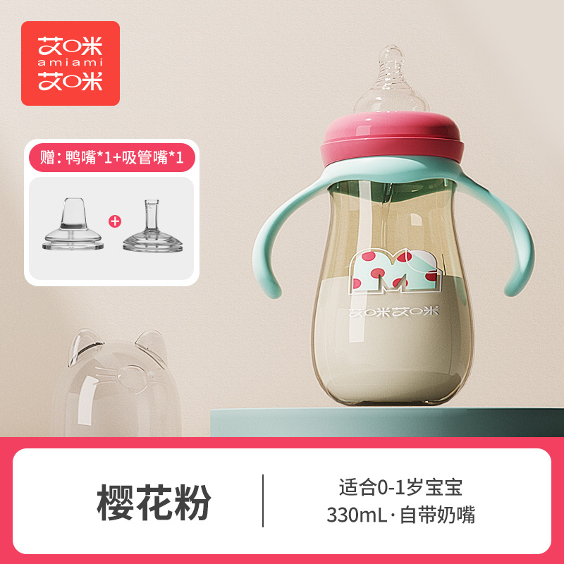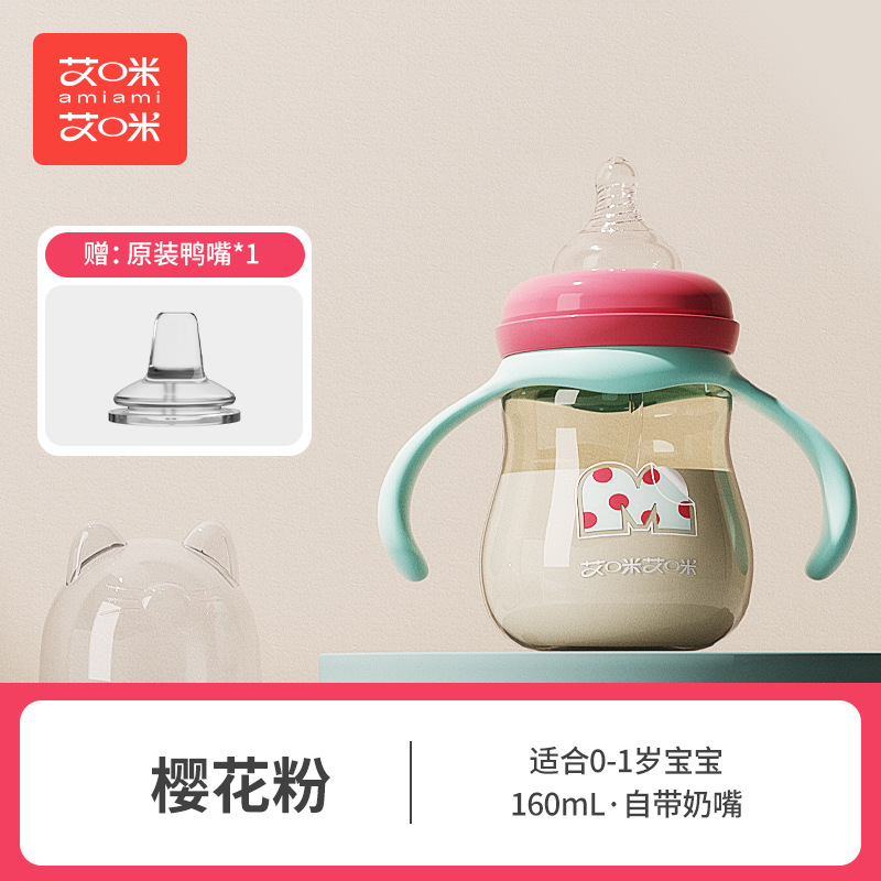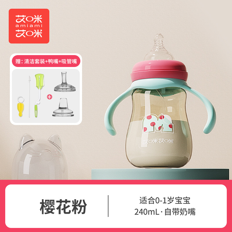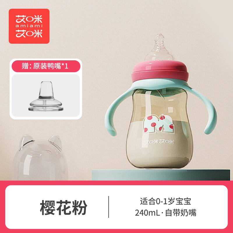 艾咪艾咪新生婴儿PP奶瓶宽口宝宝奶瓶防胀气防摔鸭嘴杯吸管杯奶瓶
