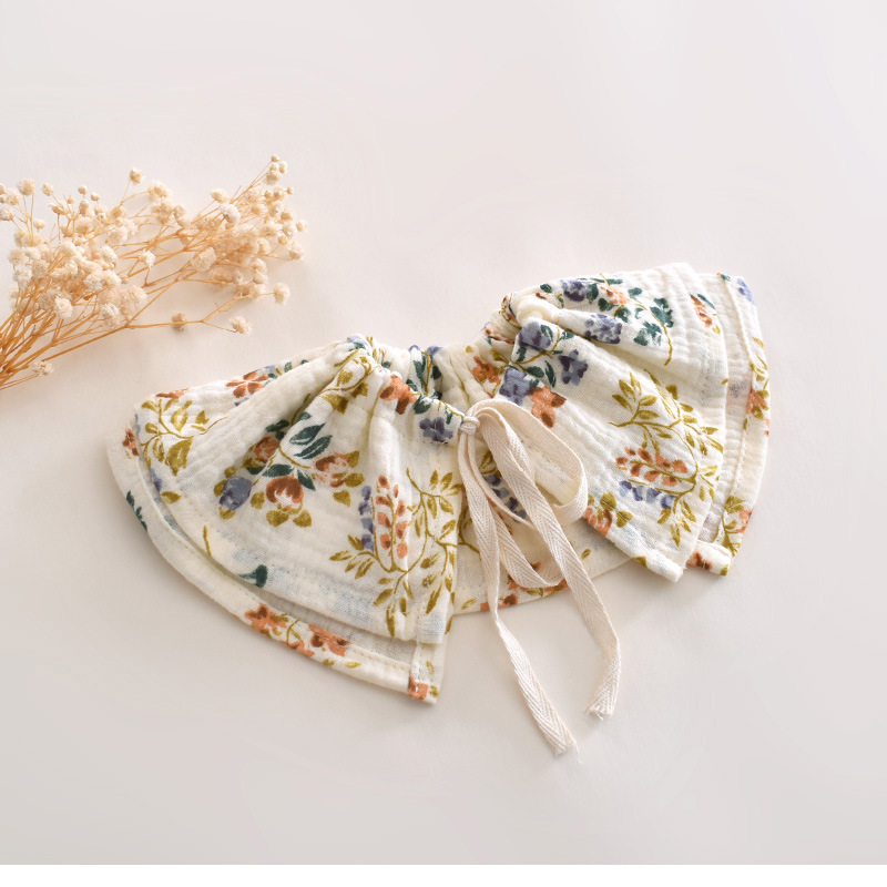 360度旋转男女宝宝围嘴婴幼儿童口水巾纯棉绉纱布吐奶巾围兜碎花