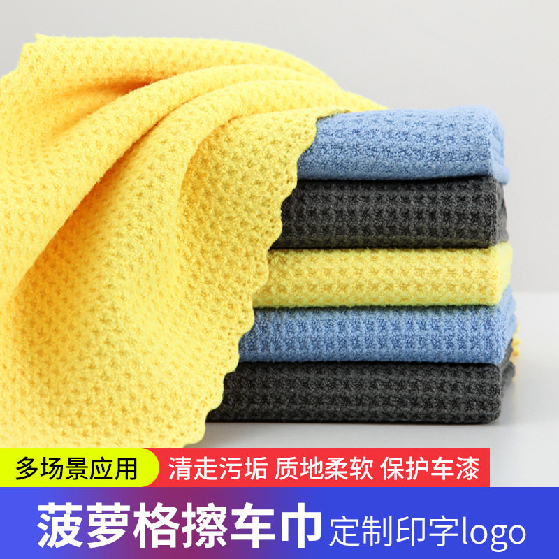 菠萝格花边擦车巾吸水清洁细纤维华夫格洗车毛巾蜂窝抹布百洁方巾