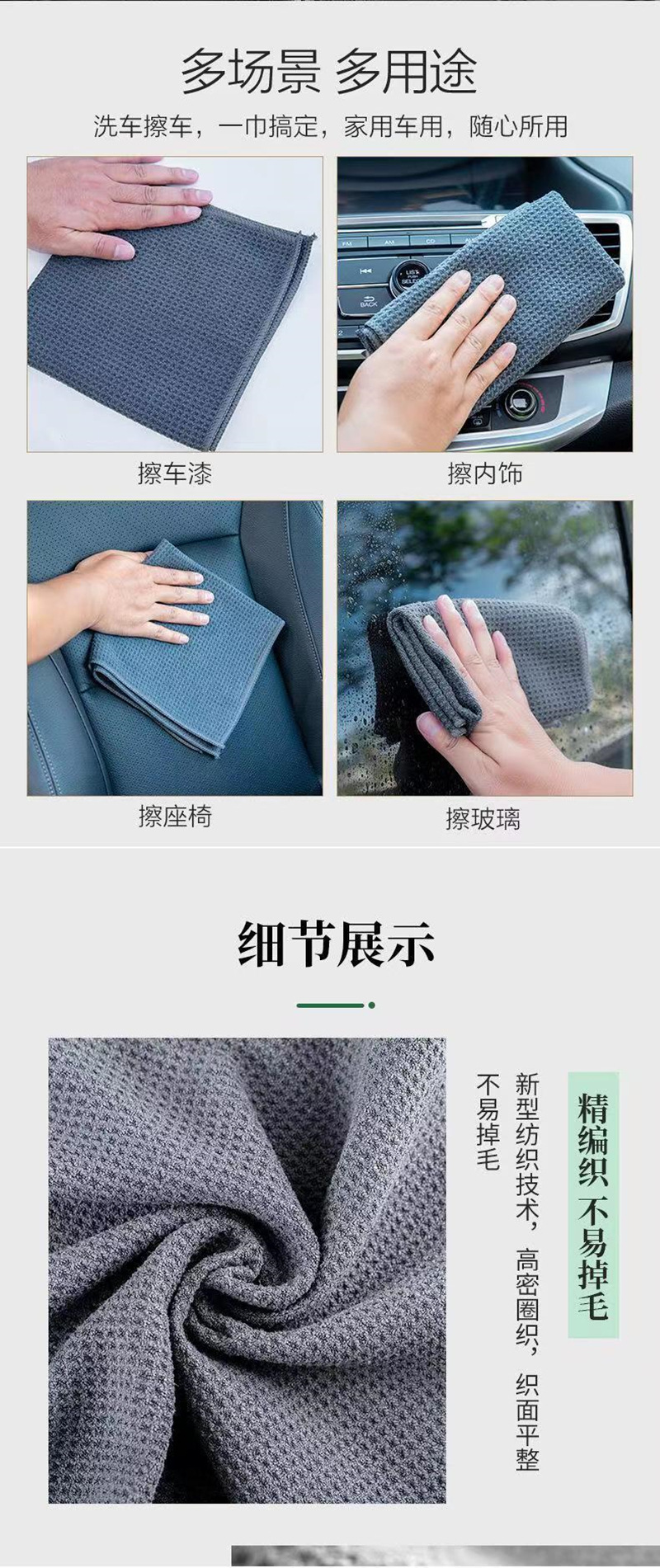 菠萝格擦车巾汽车玻璃巾蜂窝超细纤维华夫格洗车毛巾抹布百洁方巾