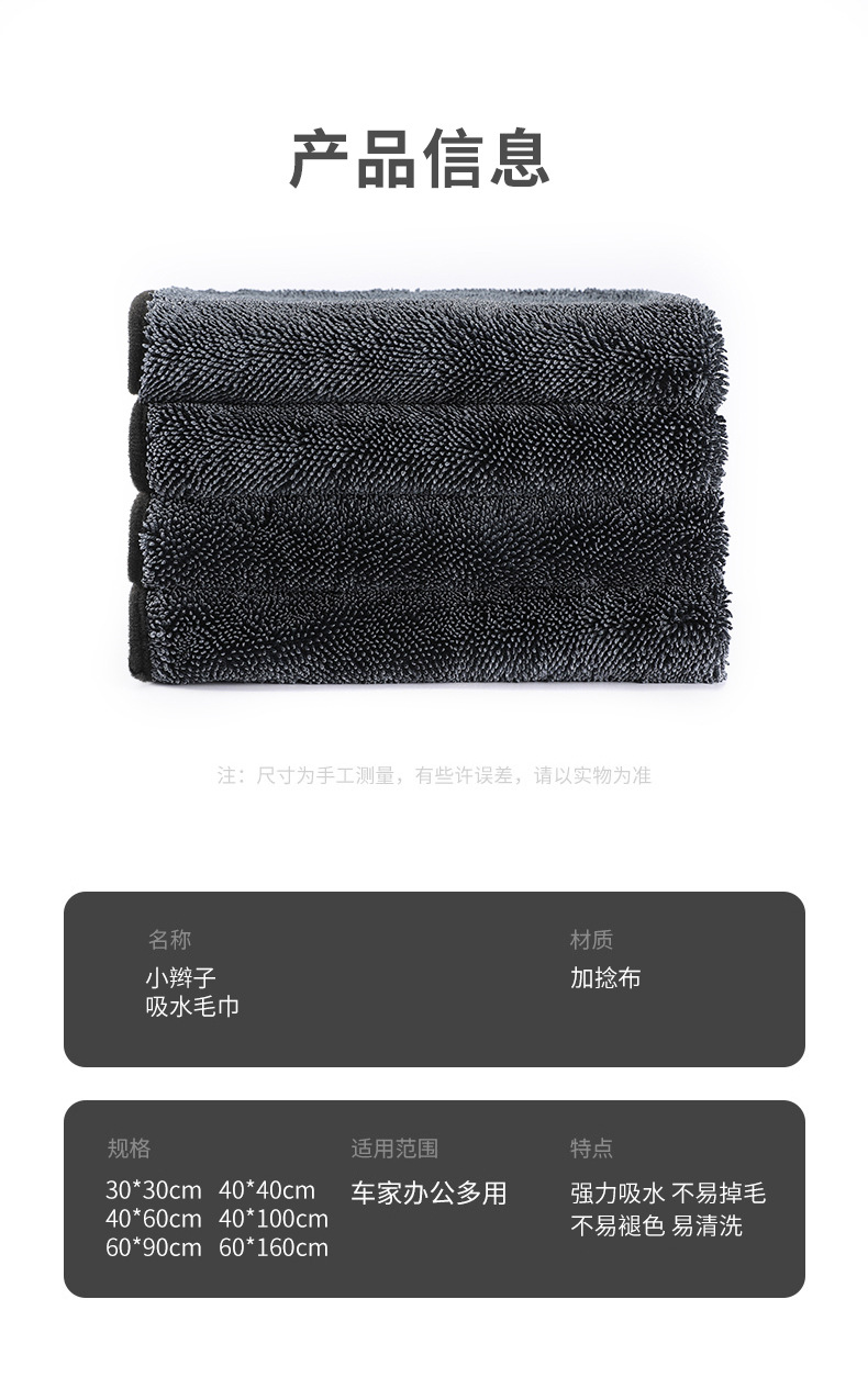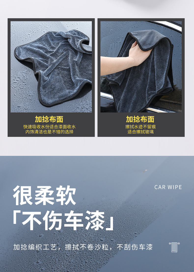 超细纤维加厚吸水加捻洗车抹布汽车用品擦车巾跨境清洁用品外贸