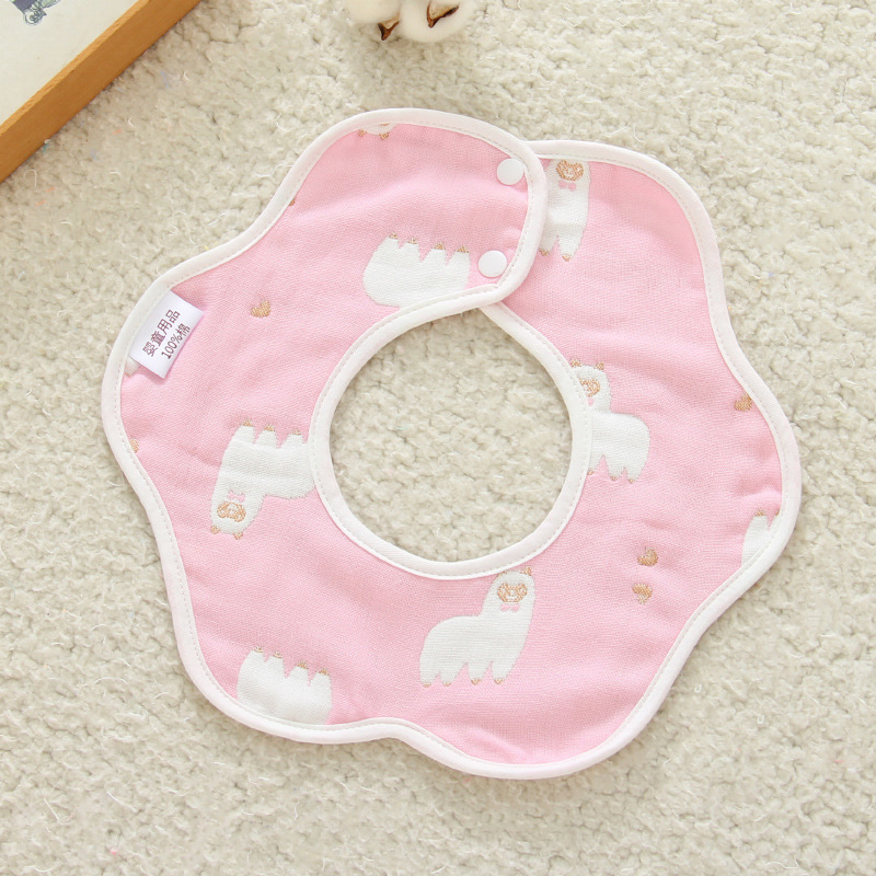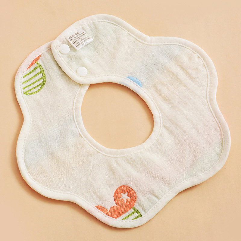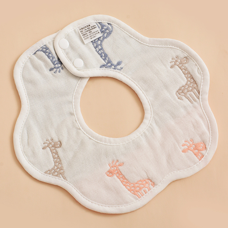 花瓣围嘴全棉厂家直销批发360八角六层纱布纯棉梅花瓣围嘴