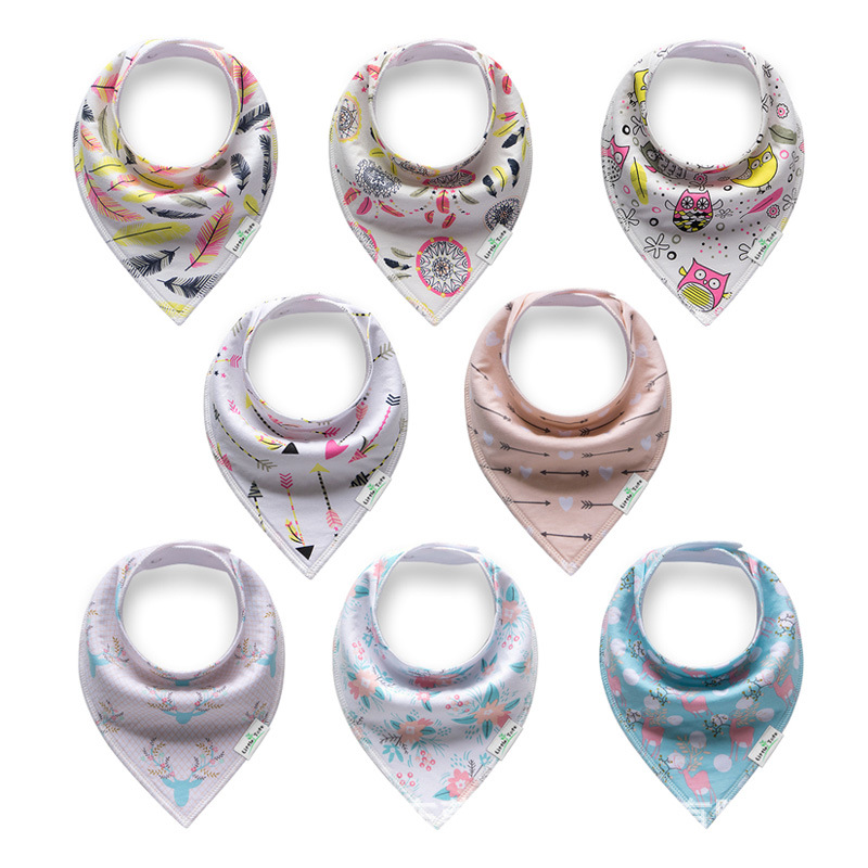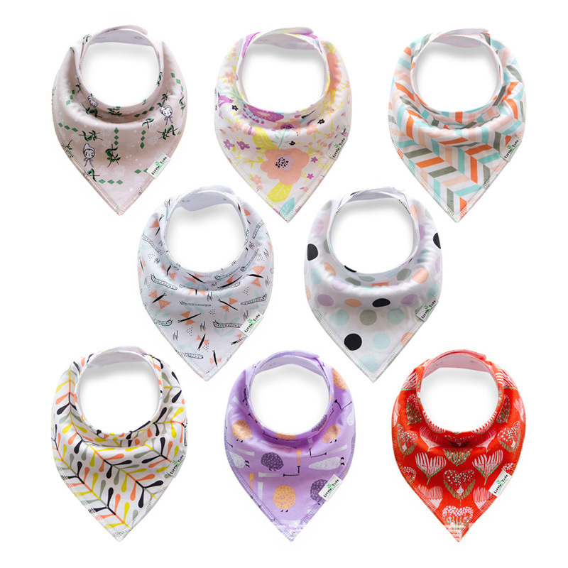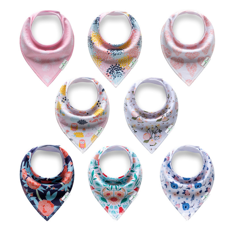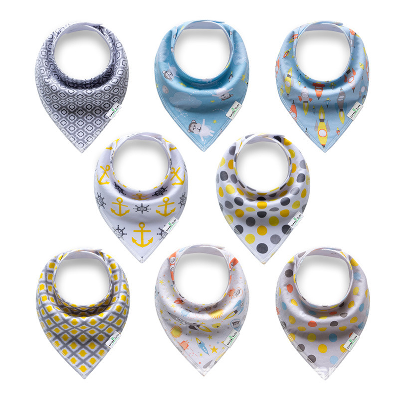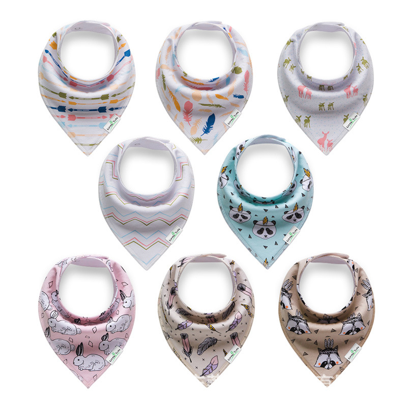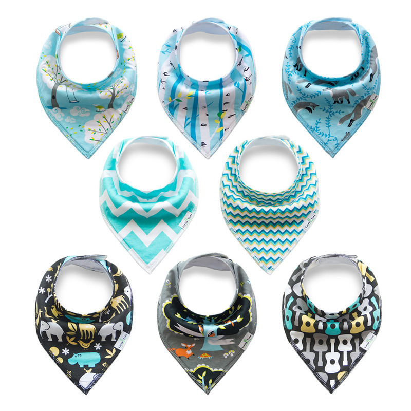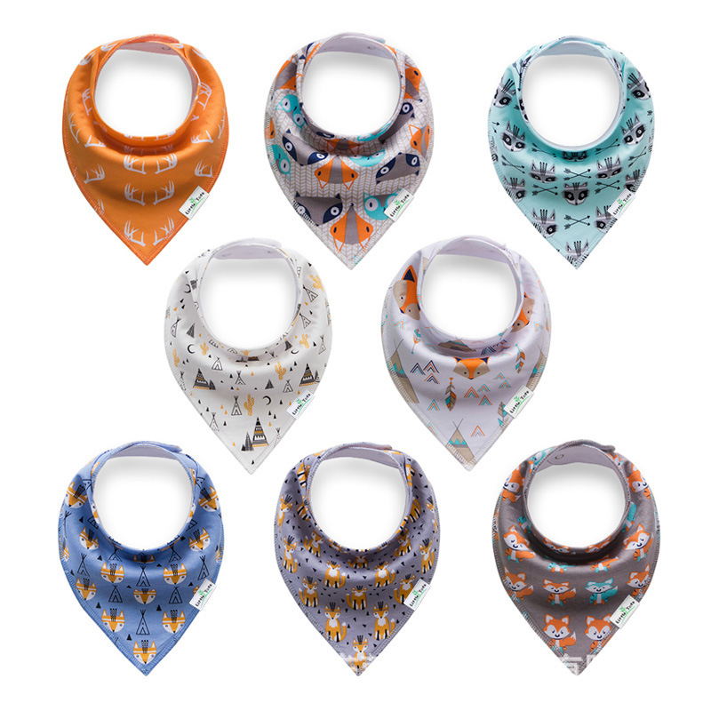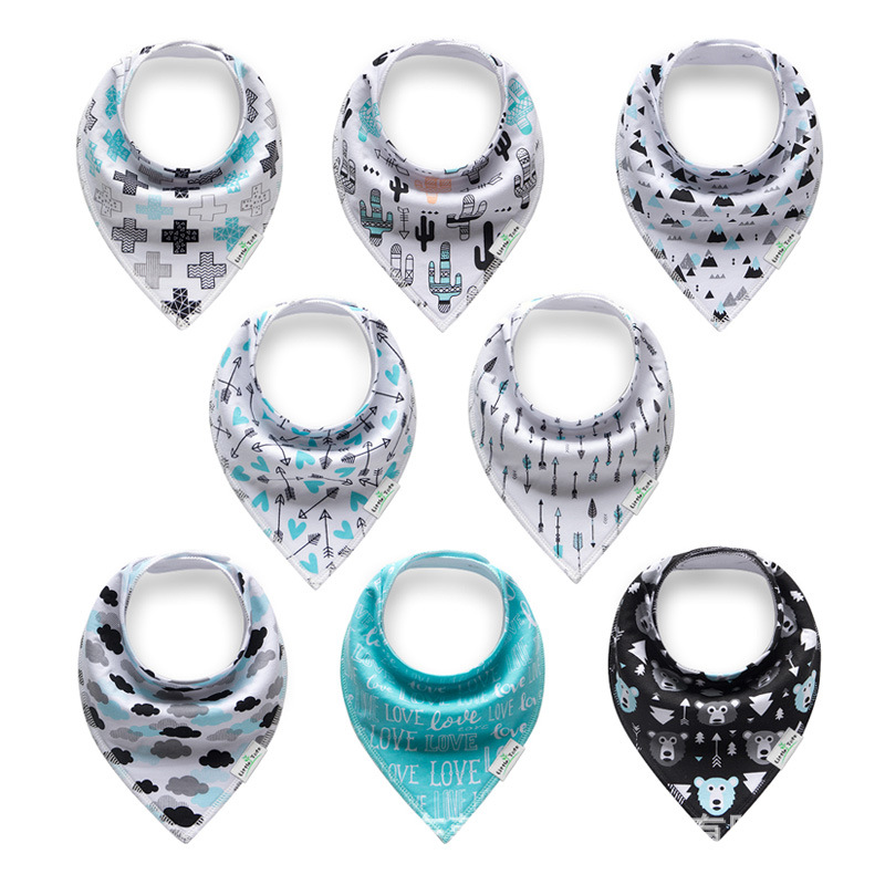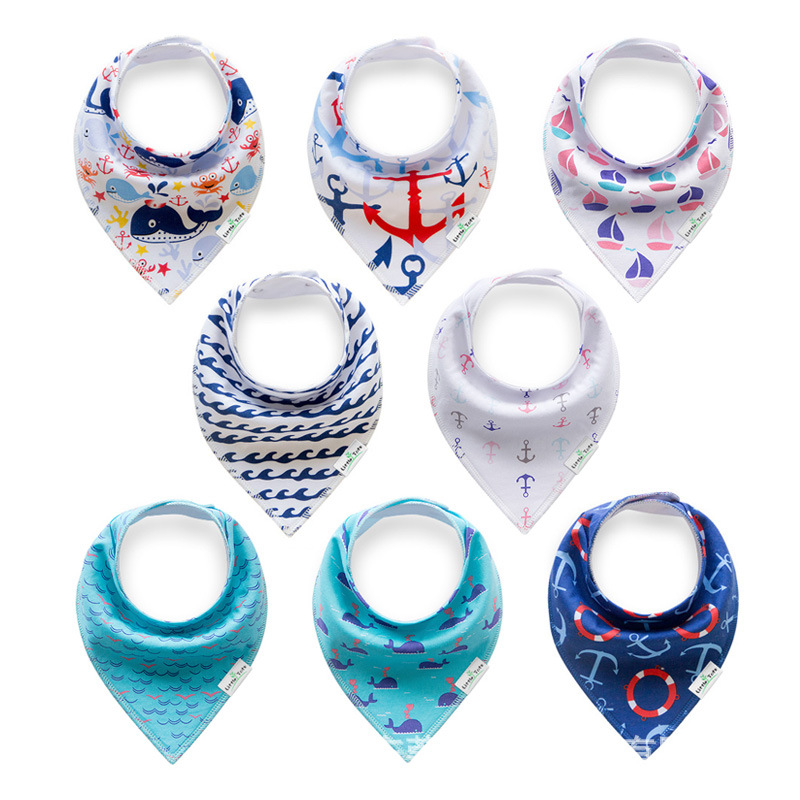 亚马逊婴儿三角巾 纯棉双层口水巾围嘴8件 宝宝围兜 母婴用品跨境