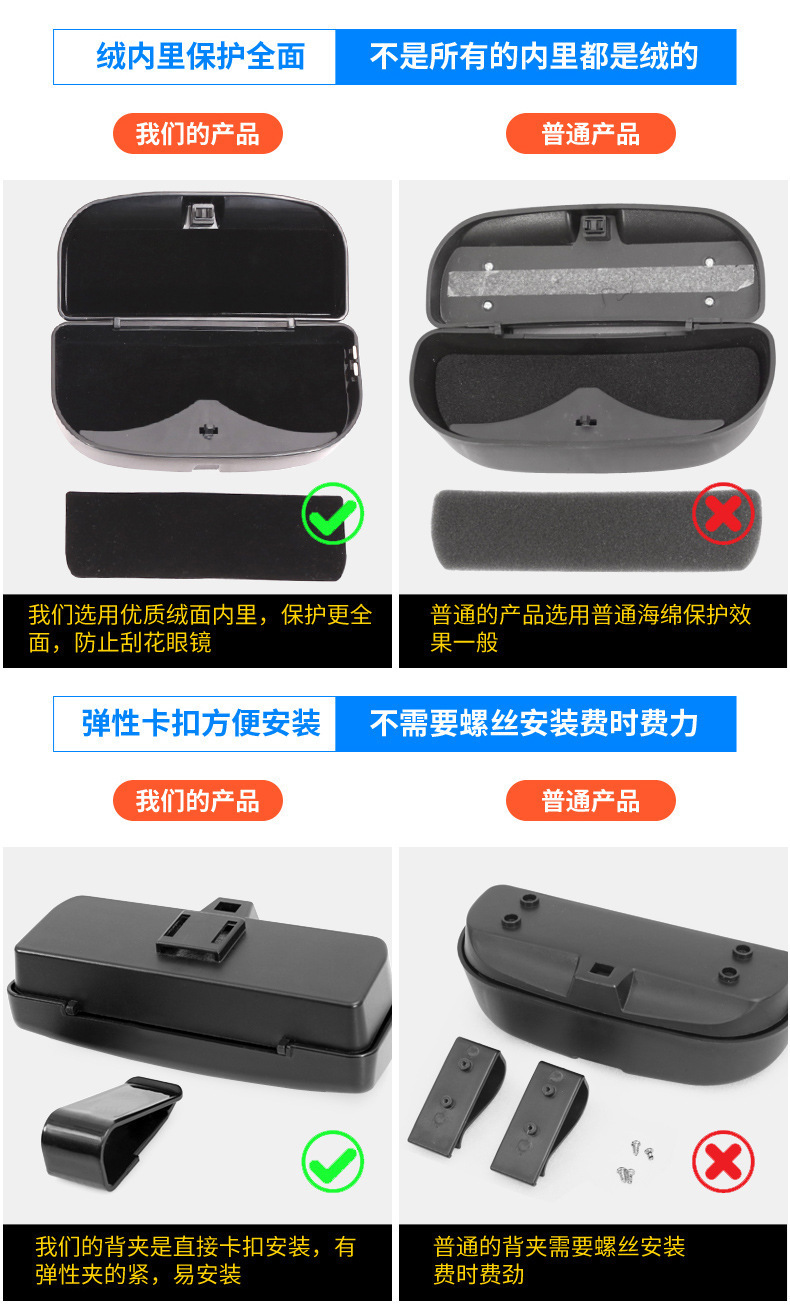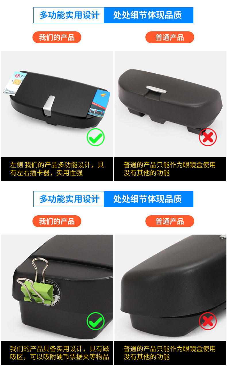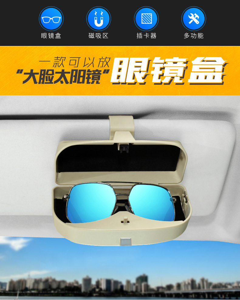 新款车载眼镜盒眼镜夹汽车插卡器票据夹多功能车用太阳眼镜收纳盒