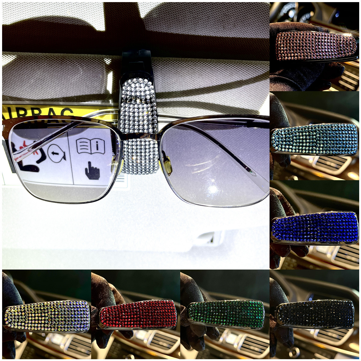 汽车遮阳板多功能镶钻眼镜夹票据夹 车载创意烫钻眼镜夹 车用品女