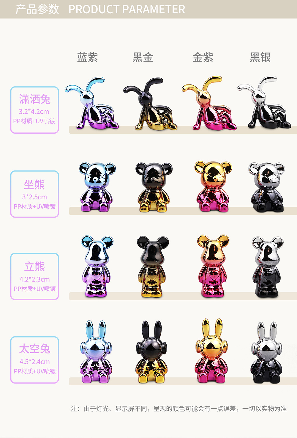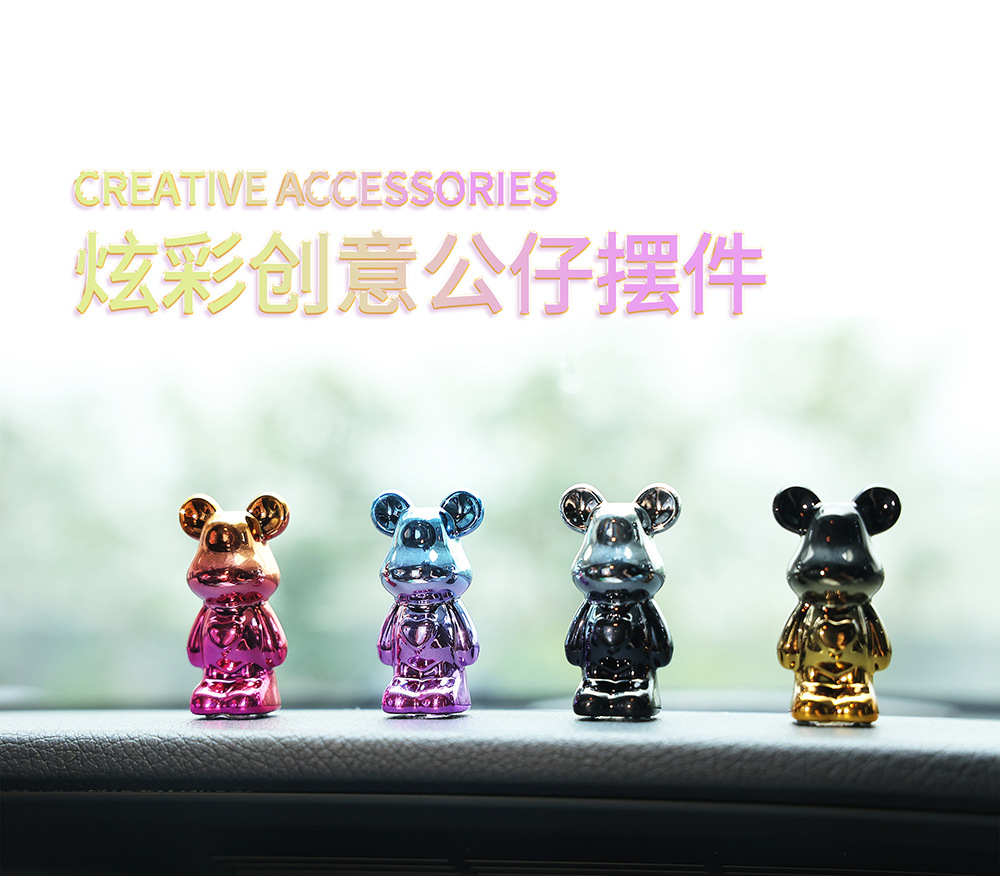 L暴力熊车载小熊摆件 轻奢卡通汽车装饰品办公室桌面摆件新年礼品