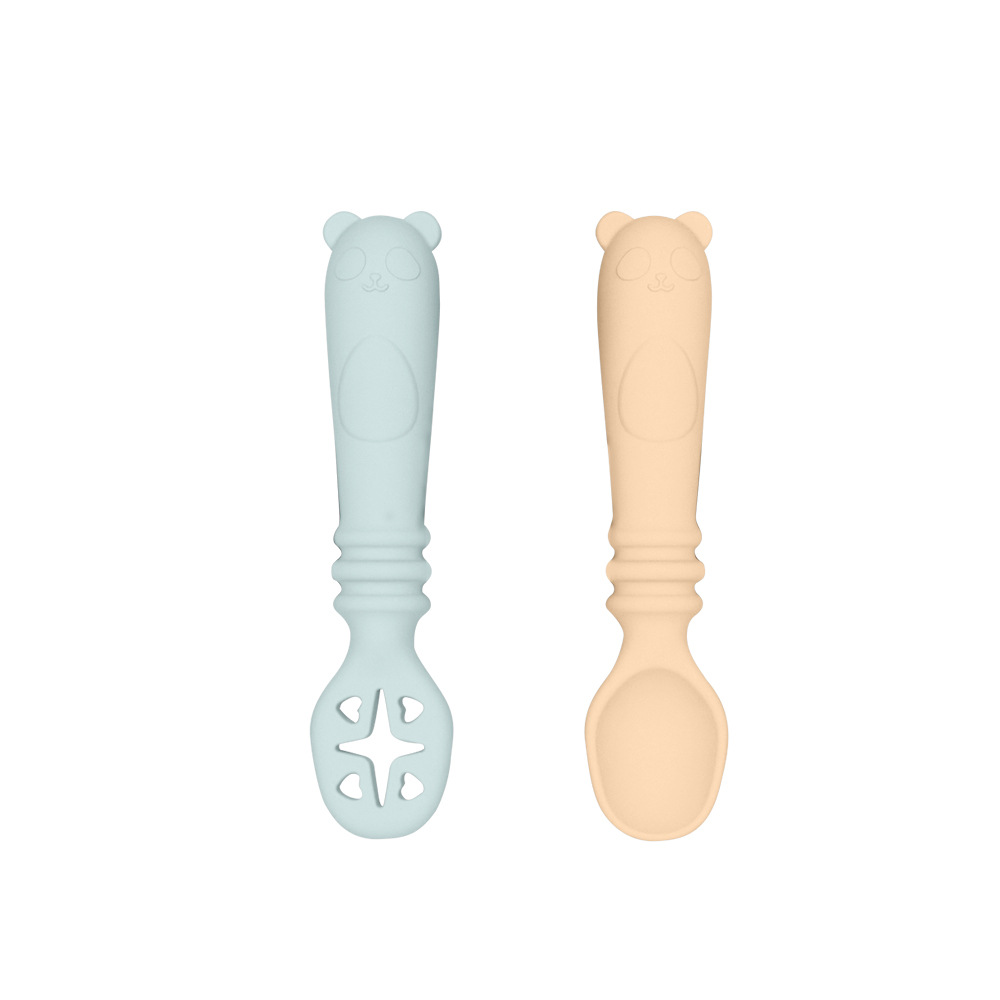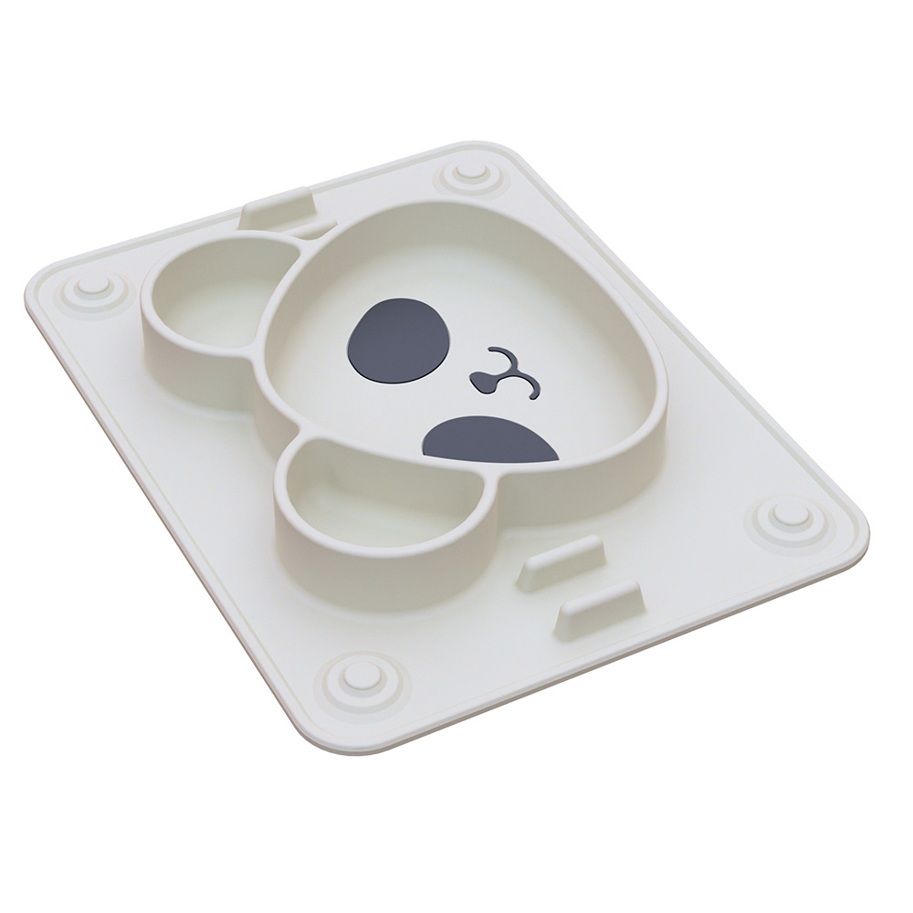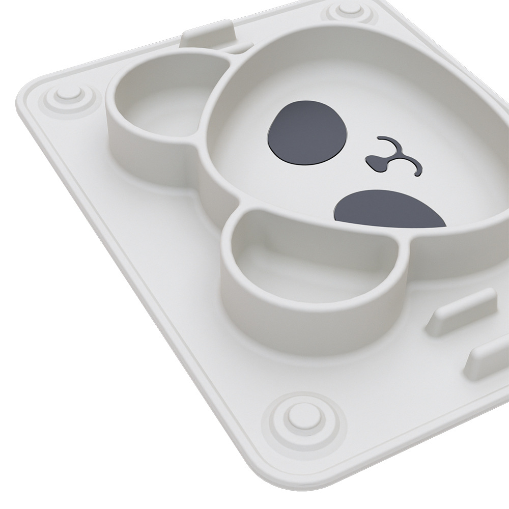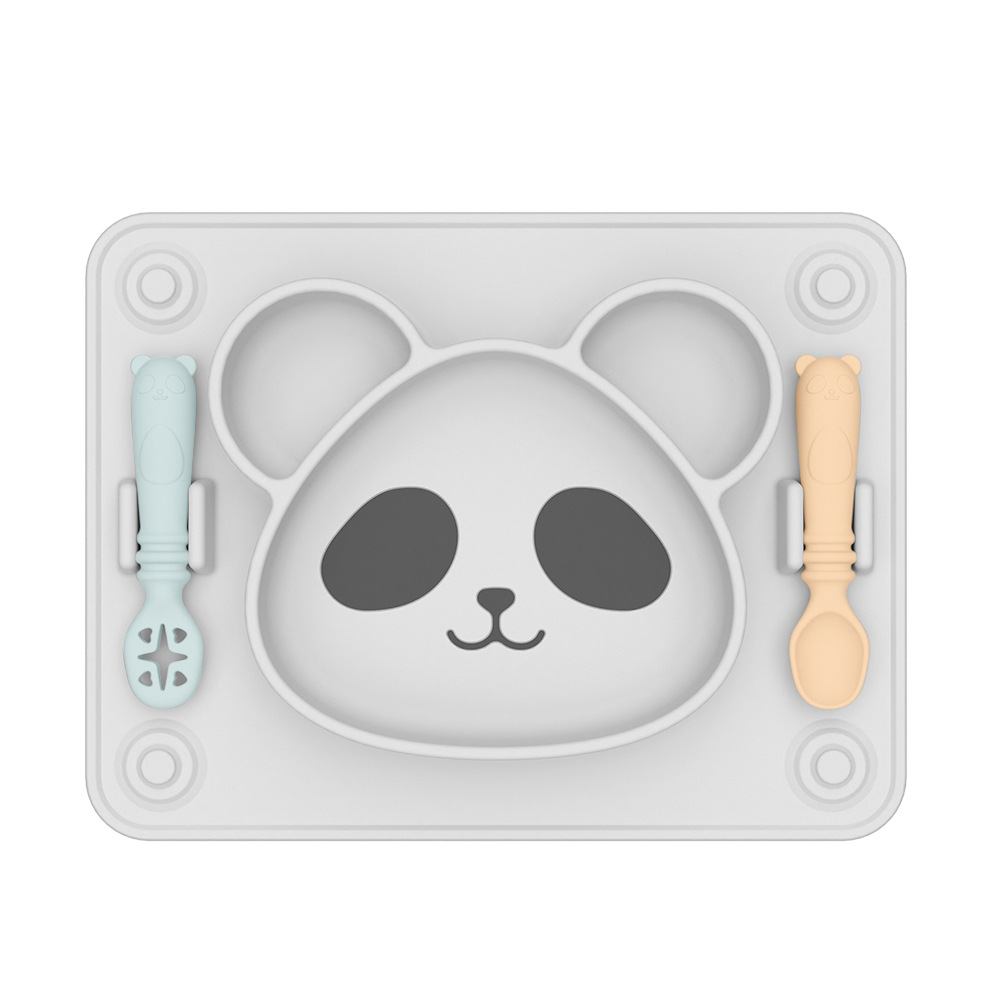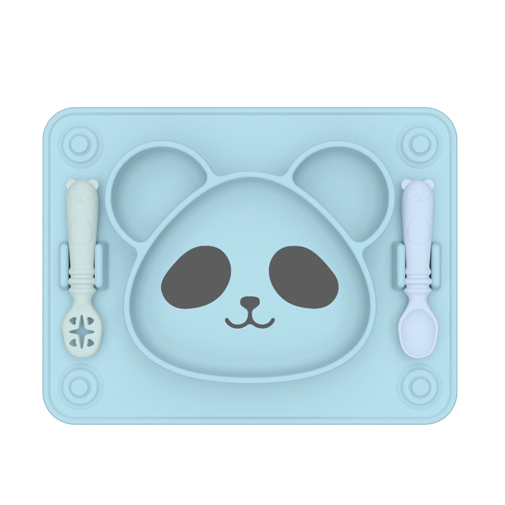 宝宝一体式吸盘分格辅食盘叉勺喂养餐具套装儿童熊猫硅胶餐盘婴儿