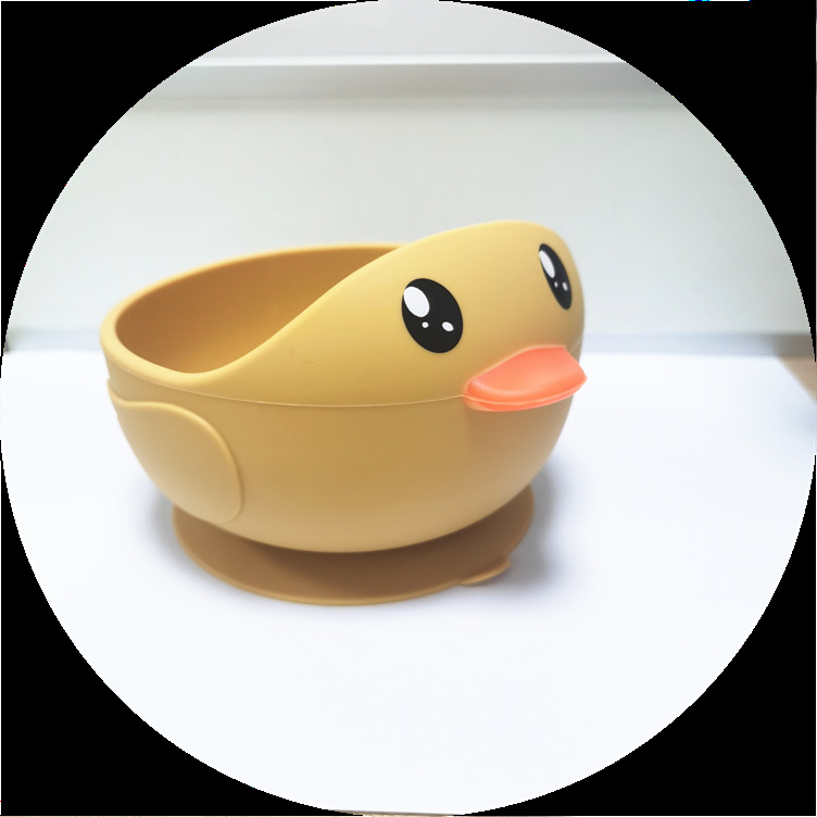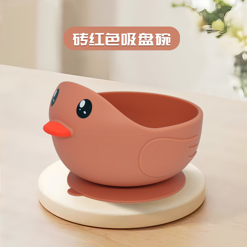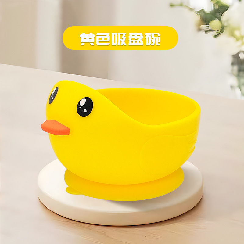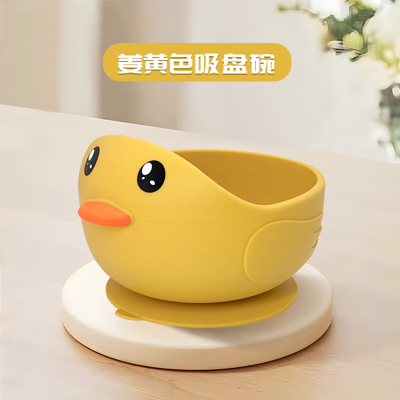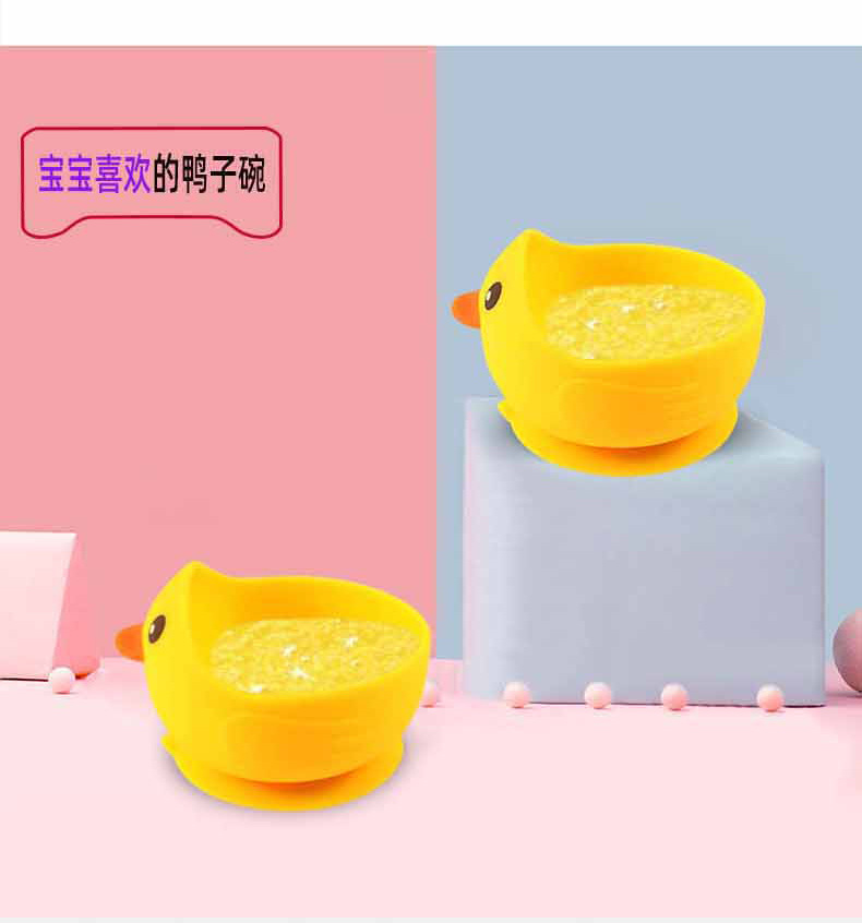 新款儿童碗硅胶碗 铺食碗吸盘碗婴儿碗宝宝卡通碗鸭子大量现货