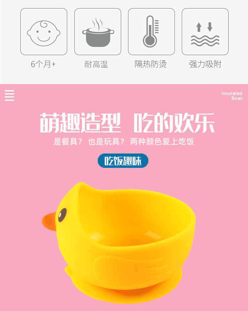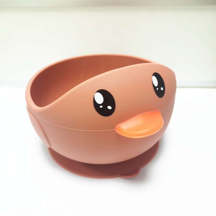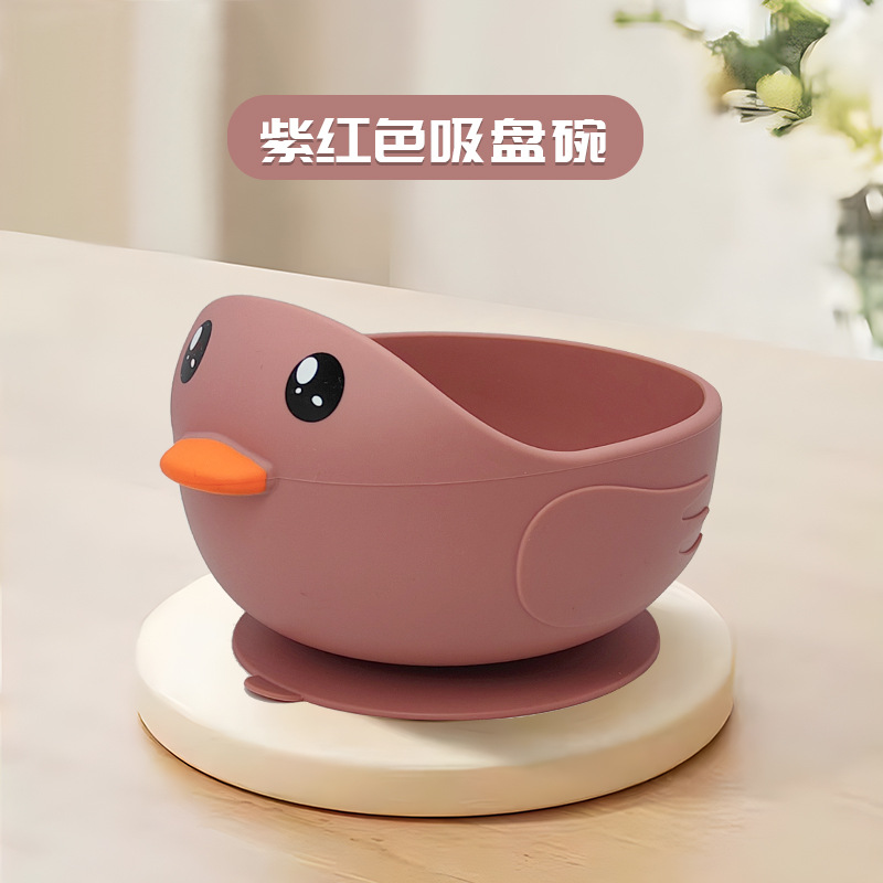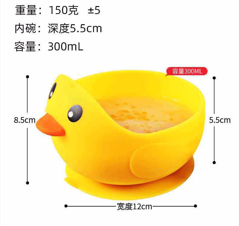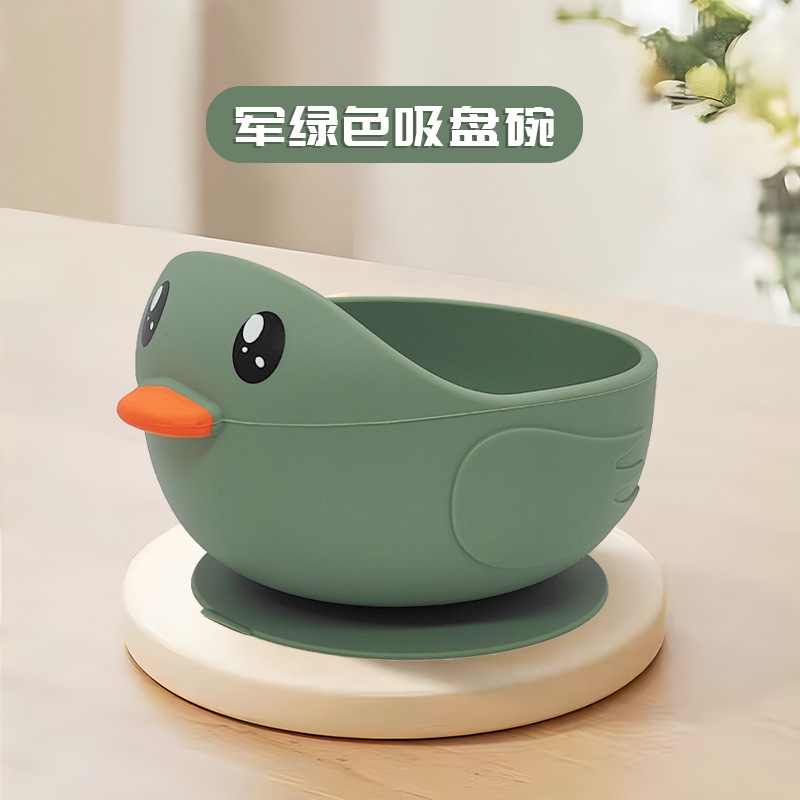 新款儿童碗硅胶碗 铺食碗吸盘碗婴儿碗宝宝卡通碗鸭子大量现货