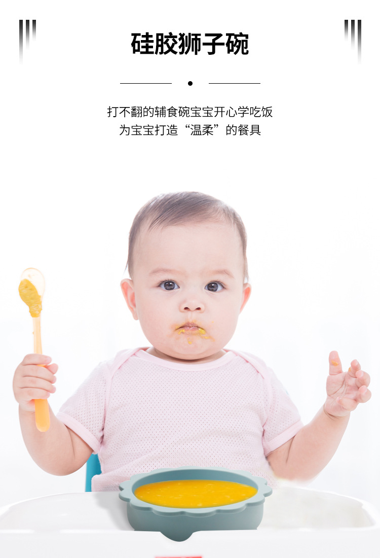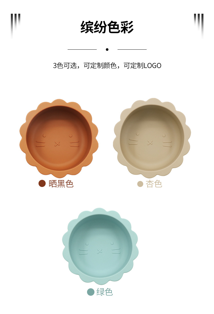 宝宝硅胶餐盘儿童进食碗带吸盘防摔狮子卡通宝宝婴儿辅食碗食品级