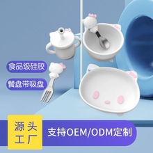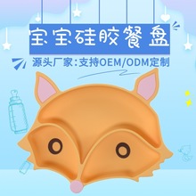跨境爆款宝宝餐盘硅胶吸盘一体式婴儿学吃饭餐具儿童分格椭圆盘