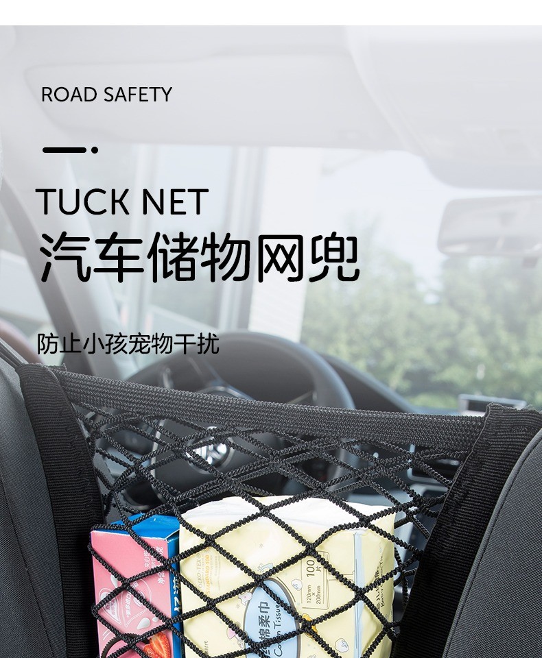 汽车座椅间储物网兜车载置物袋收纳箱防护网防儿童隔挡小孩弹力网