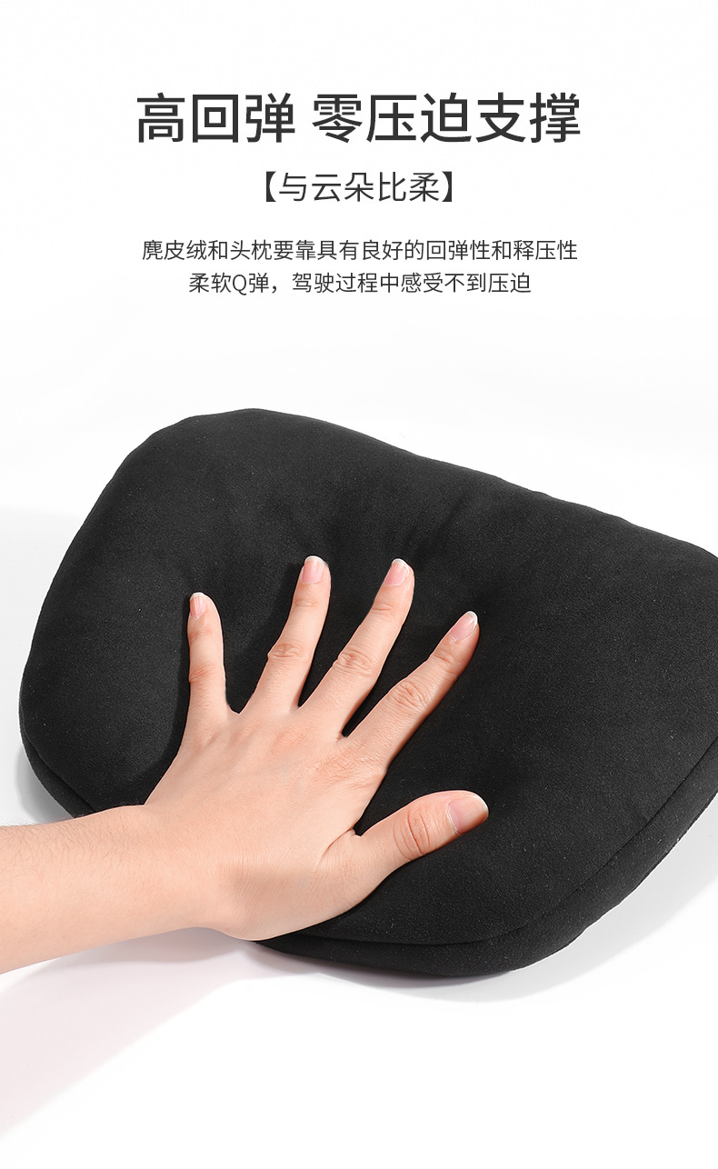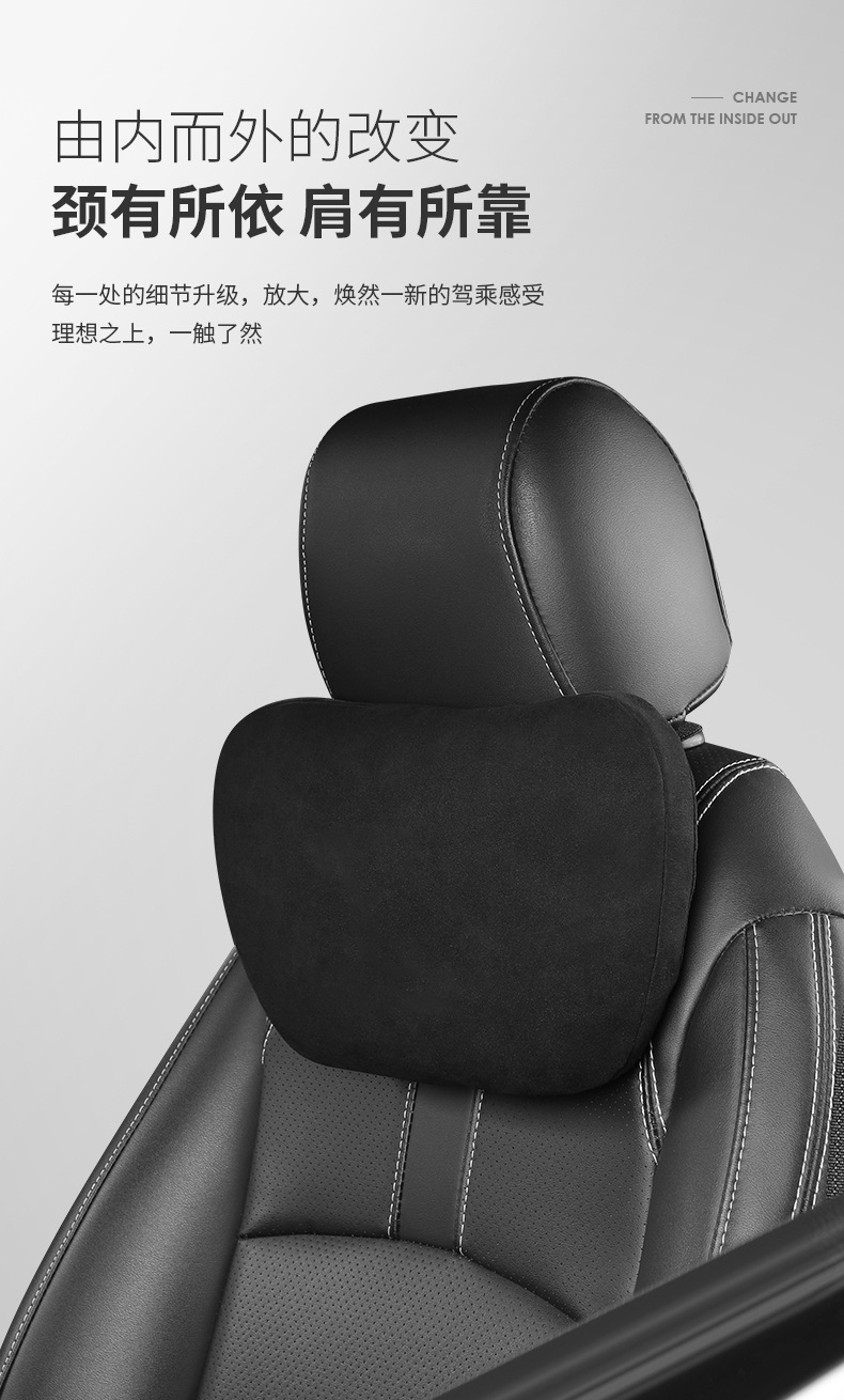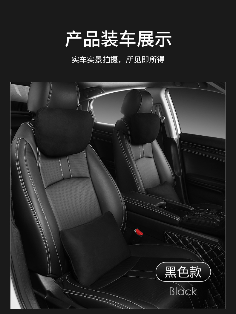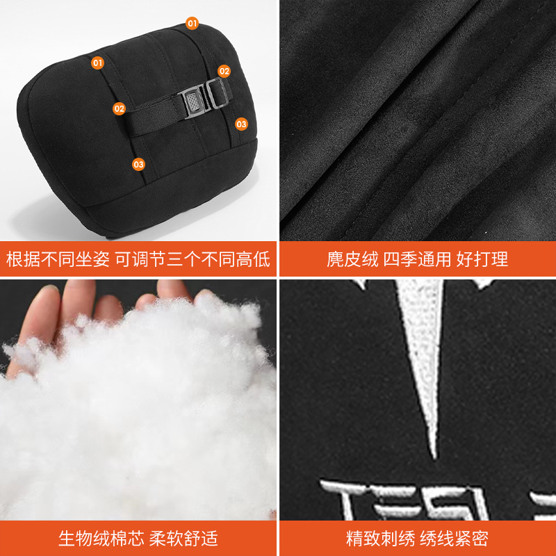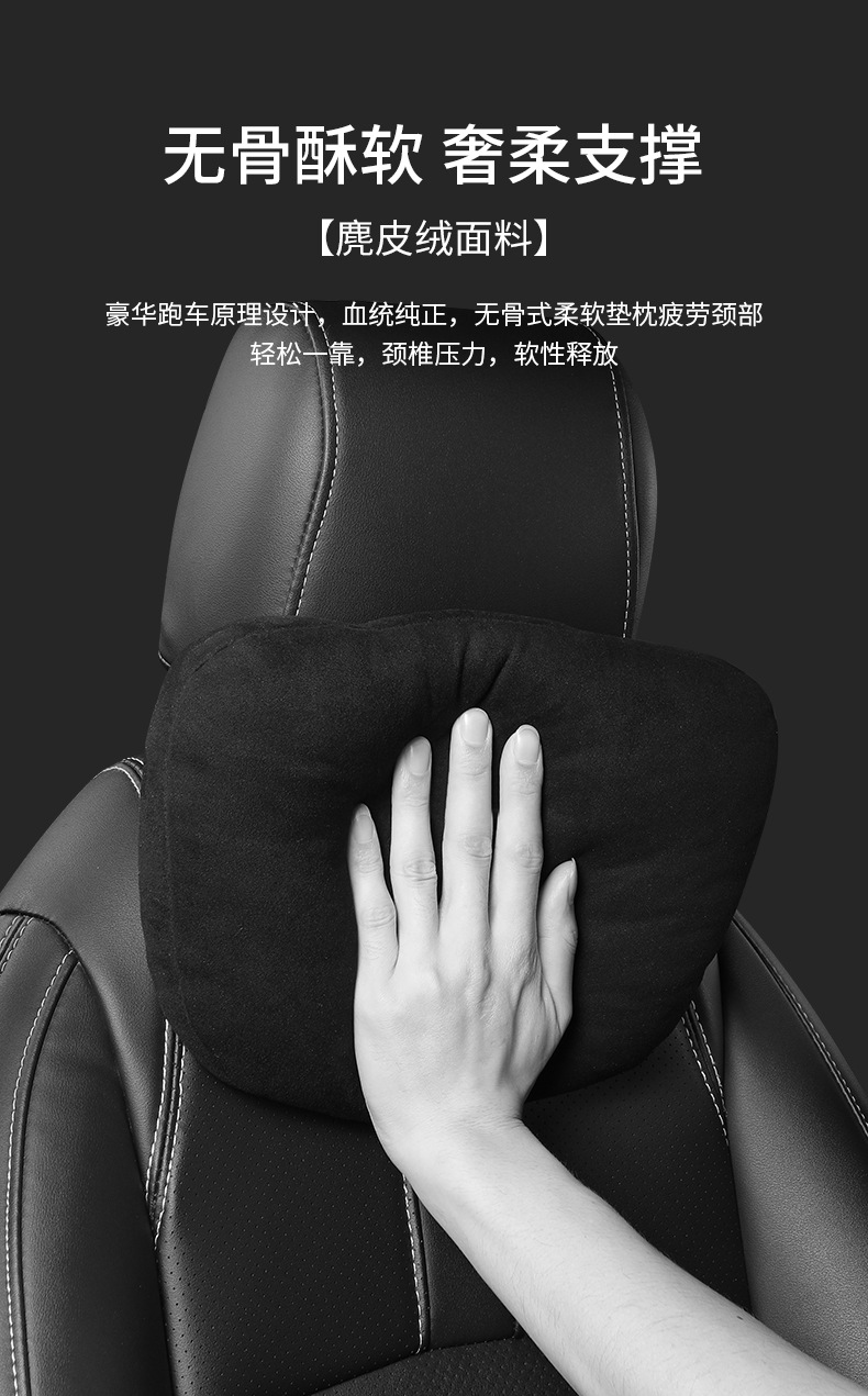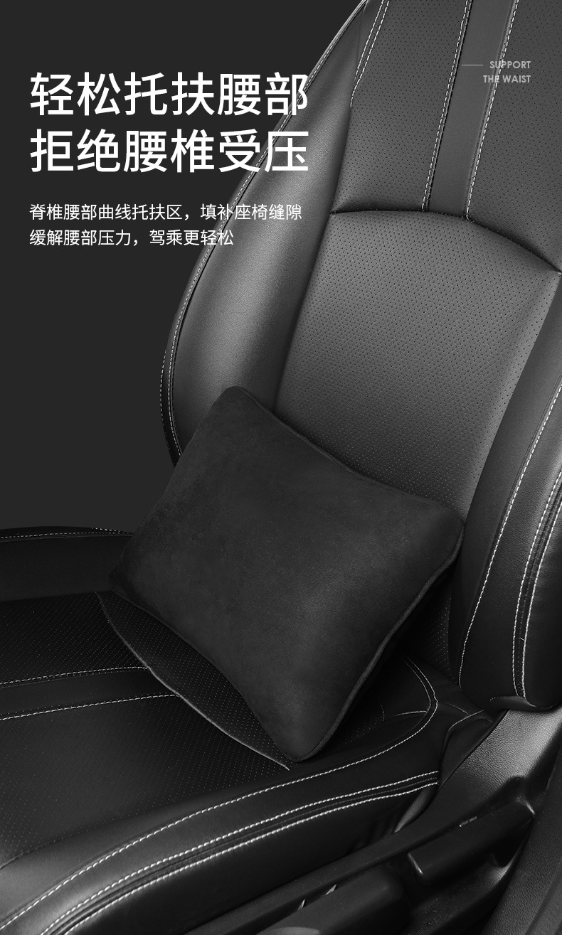 麂皮绒腰靠护颈枕适用特斯拉头枕 车用绣花靠垫背靠枕汽车头枕