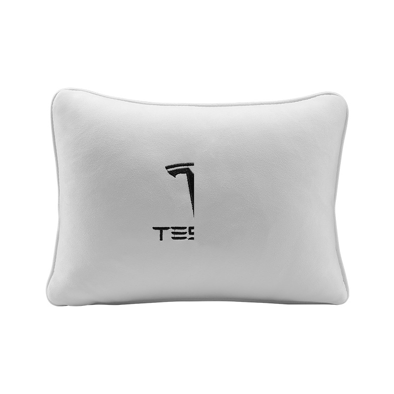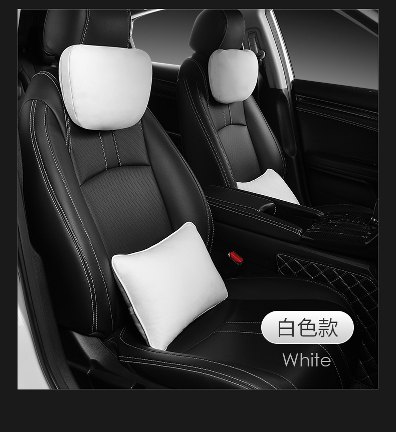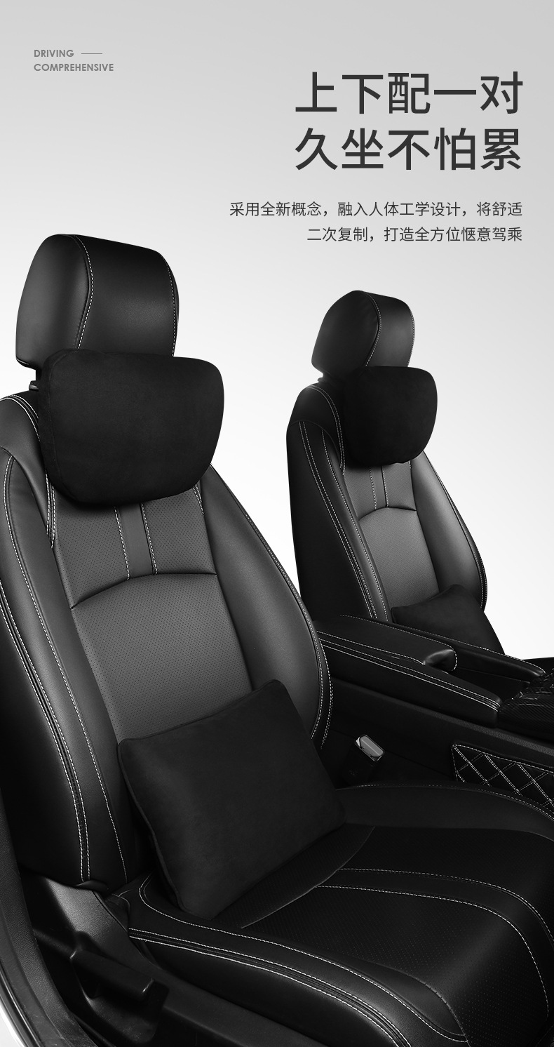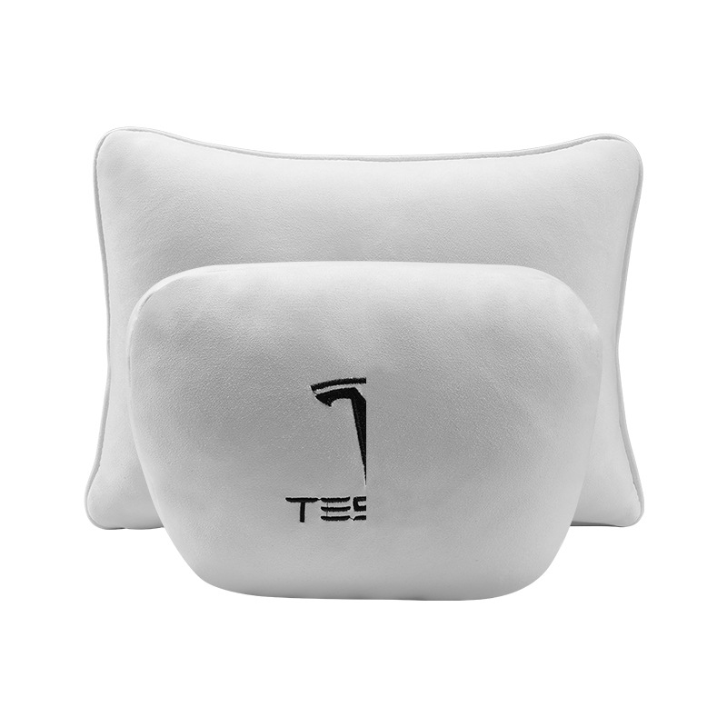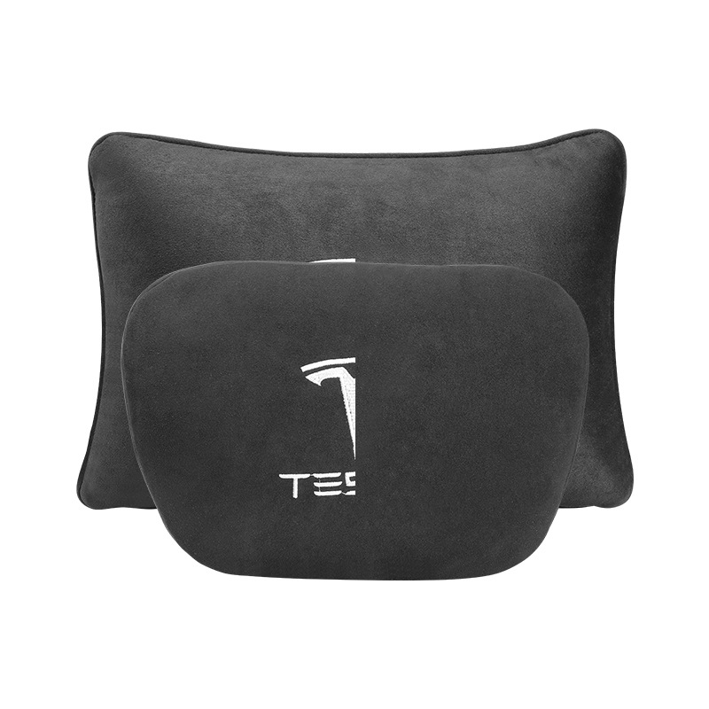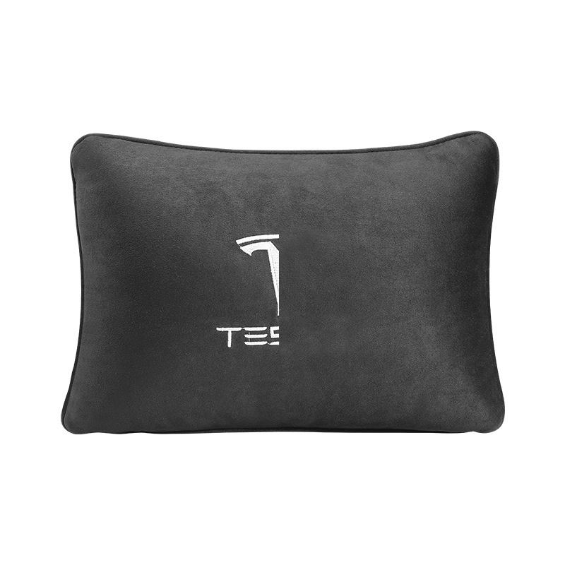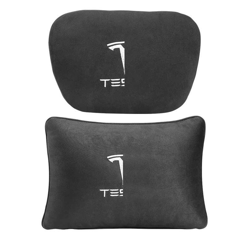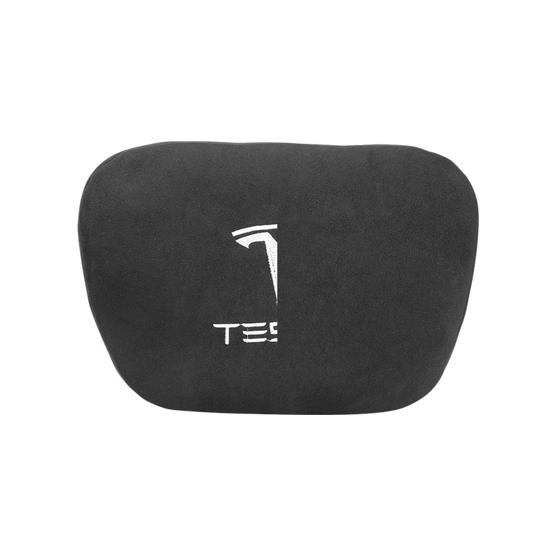 麂皮绒腰靠护颈枕适用特斯拉头枕 车用绣花靠垫背靠枕汽车头枕