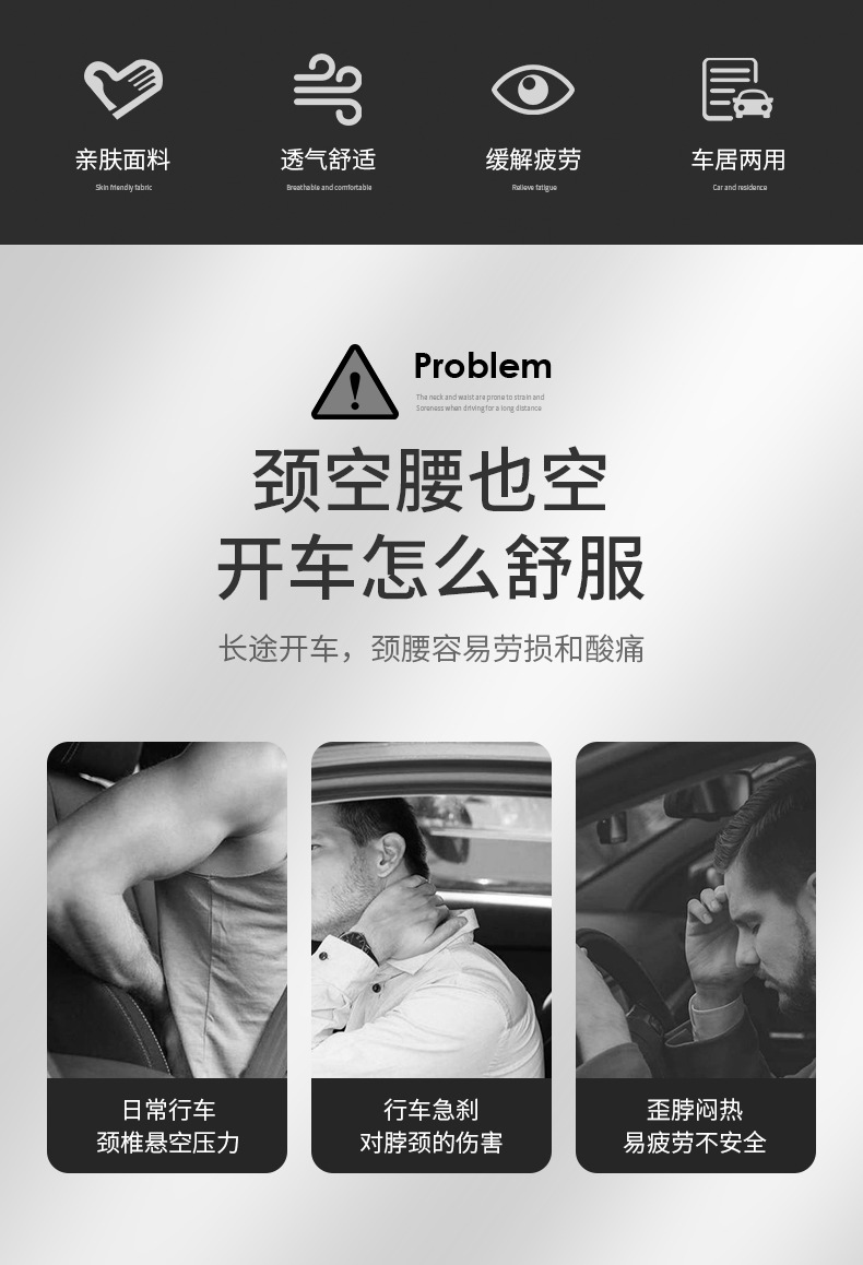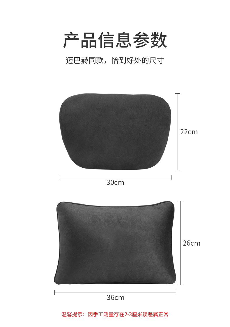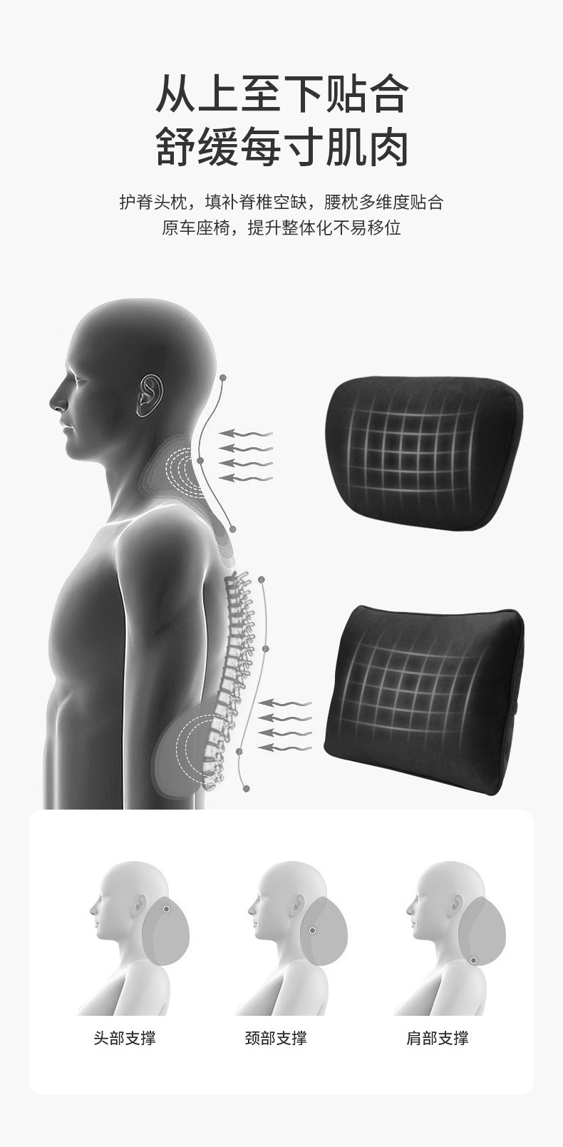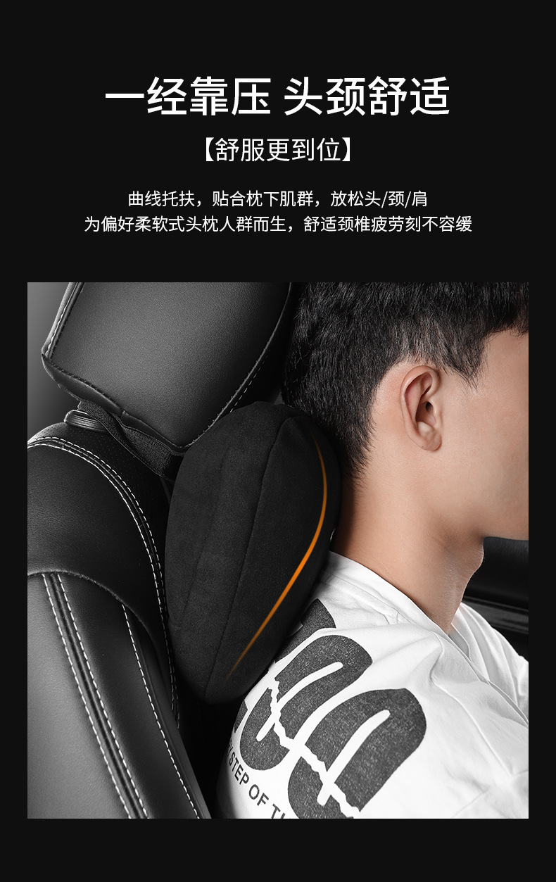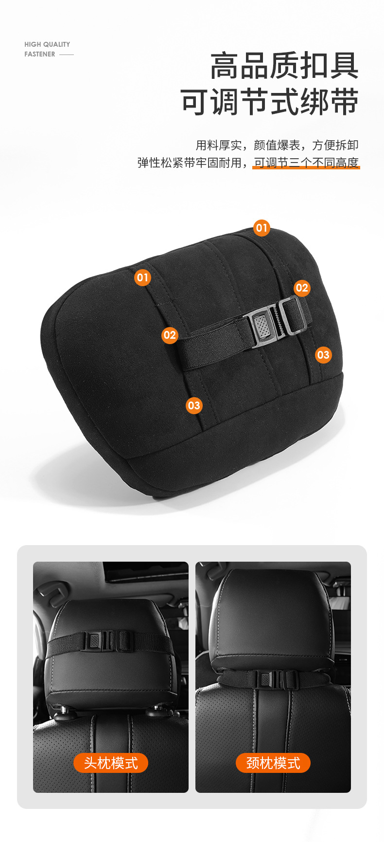 麂皮绒腰靠护颈枕适用特斯拉头枕 车用绣花靠垫背靠枕汽车头枕