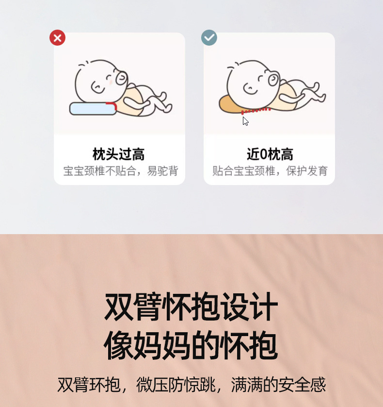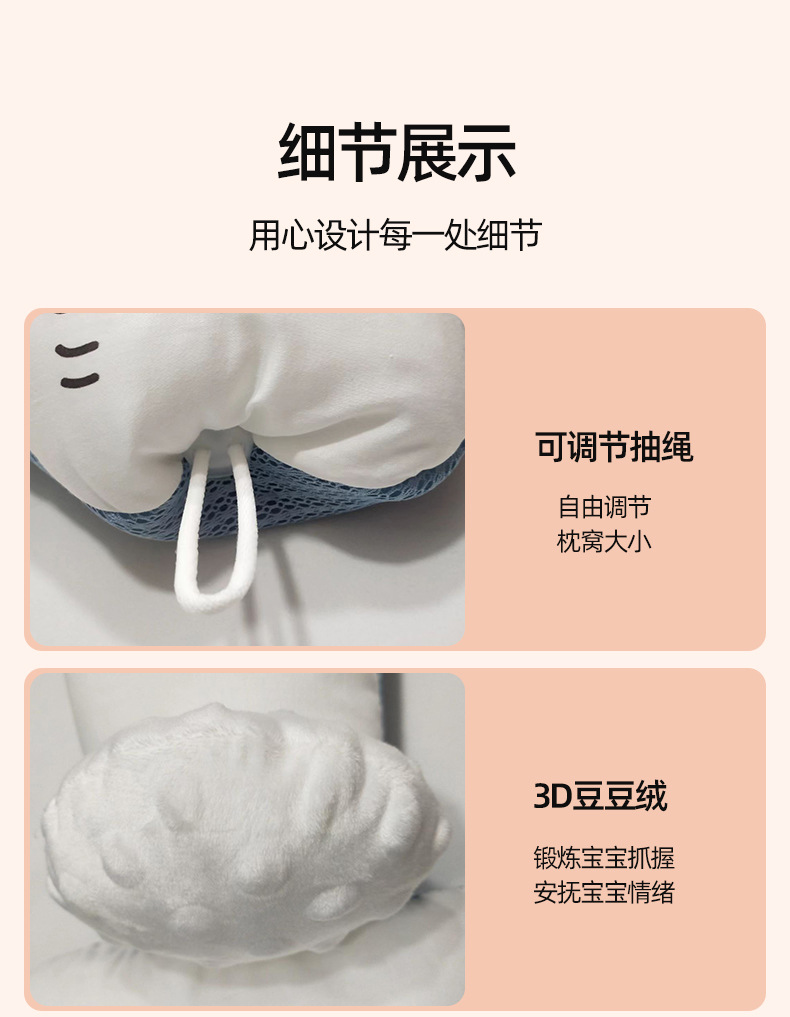 厂家直发婴儿定型枕新生儿宝宝多功能安抚枕头带抽绳四季双面可用