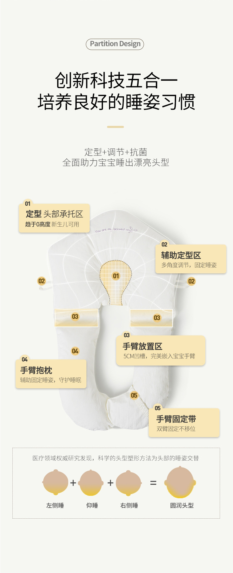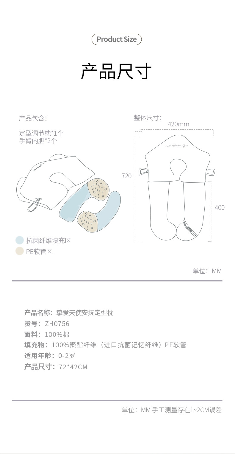 跨境专供婴儿定型枕安抚抱枕防惊跳新生儿宝宝防偏头头型矫正枕头