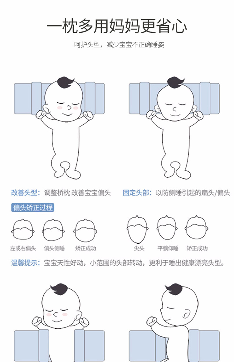 婴儿定型枕小米枕头新生儿可调节防偏头宝宝固定头型防侧睡枕套