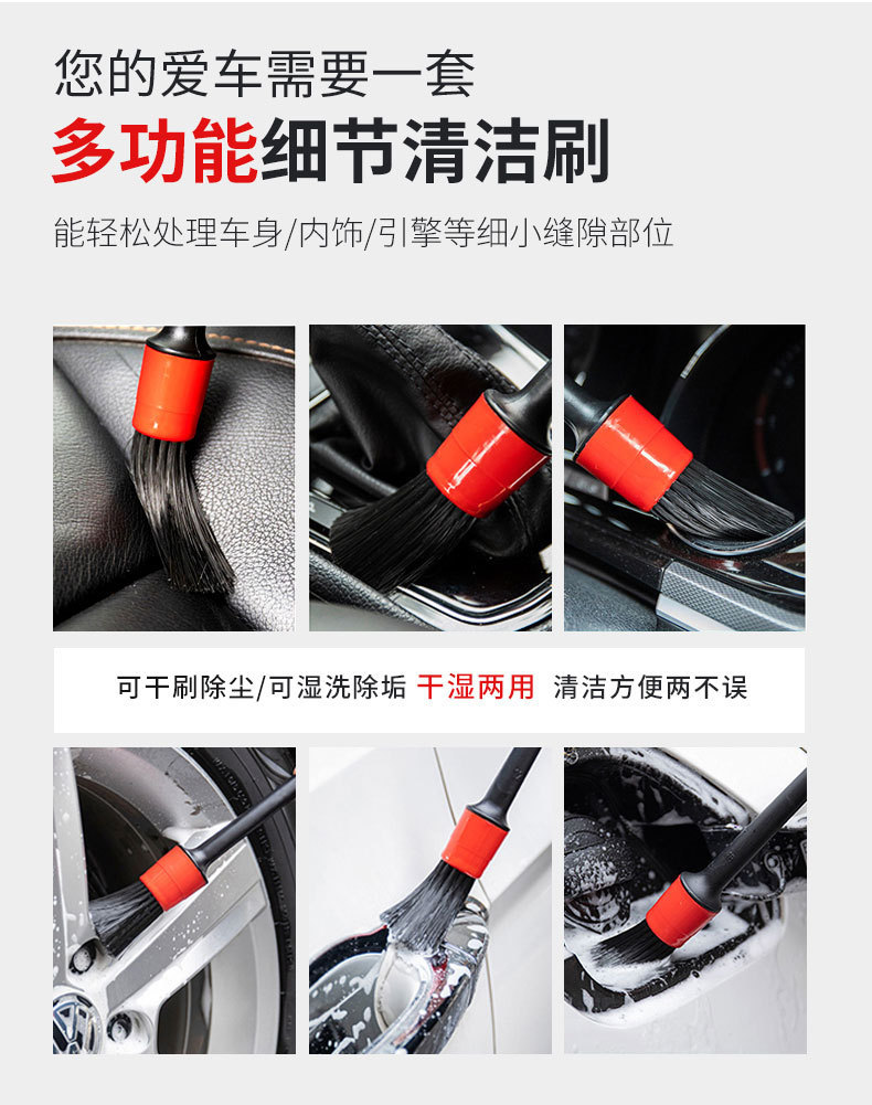 汽车内饰扫灰尘清洁刷 植毛洗车工具五件套 车内缝隙出风口细节刷